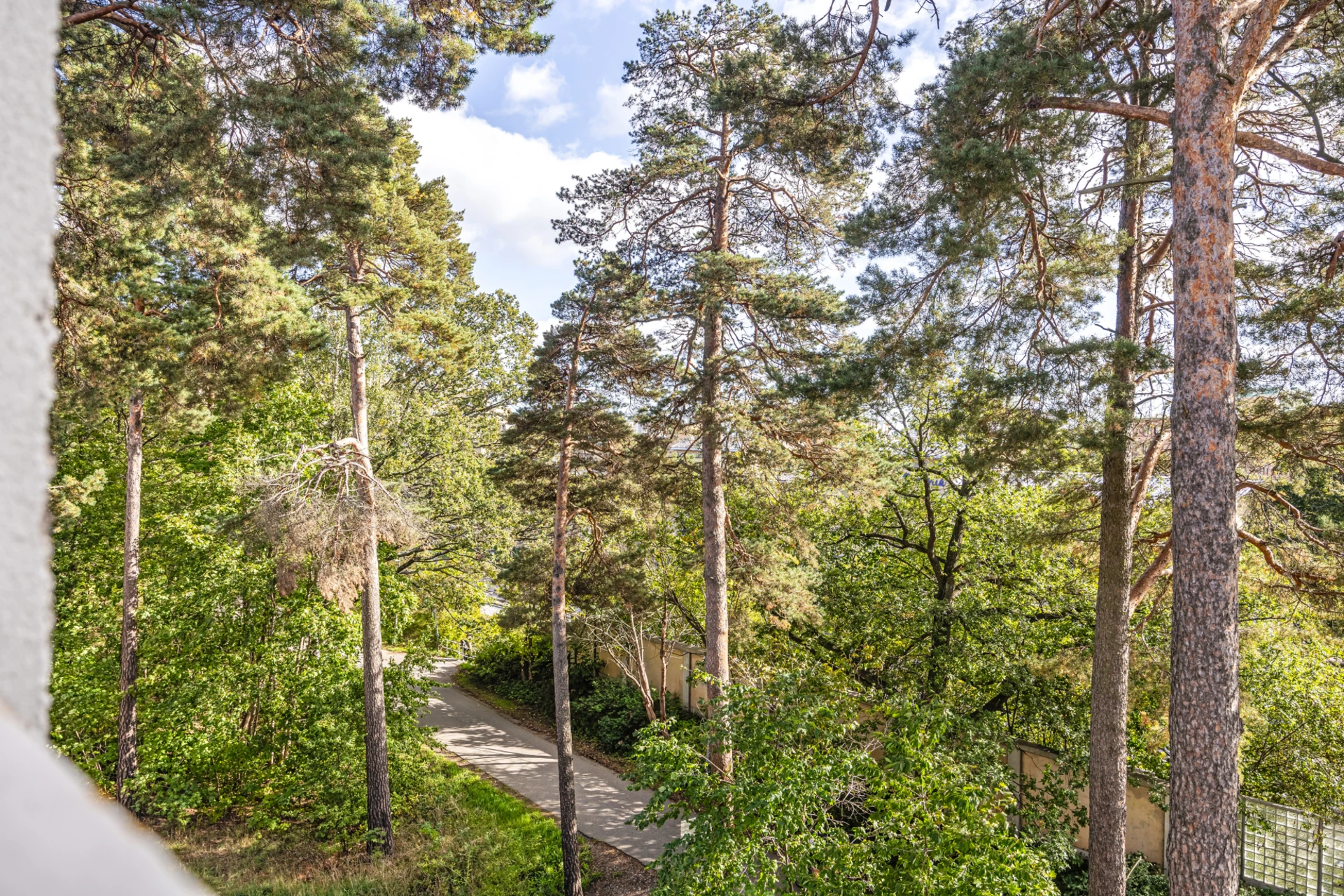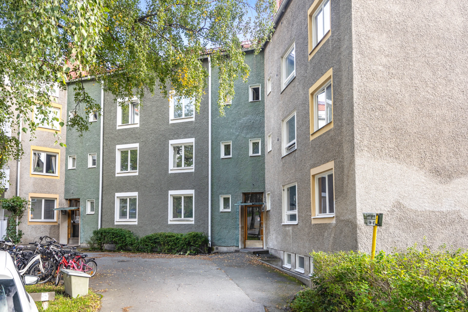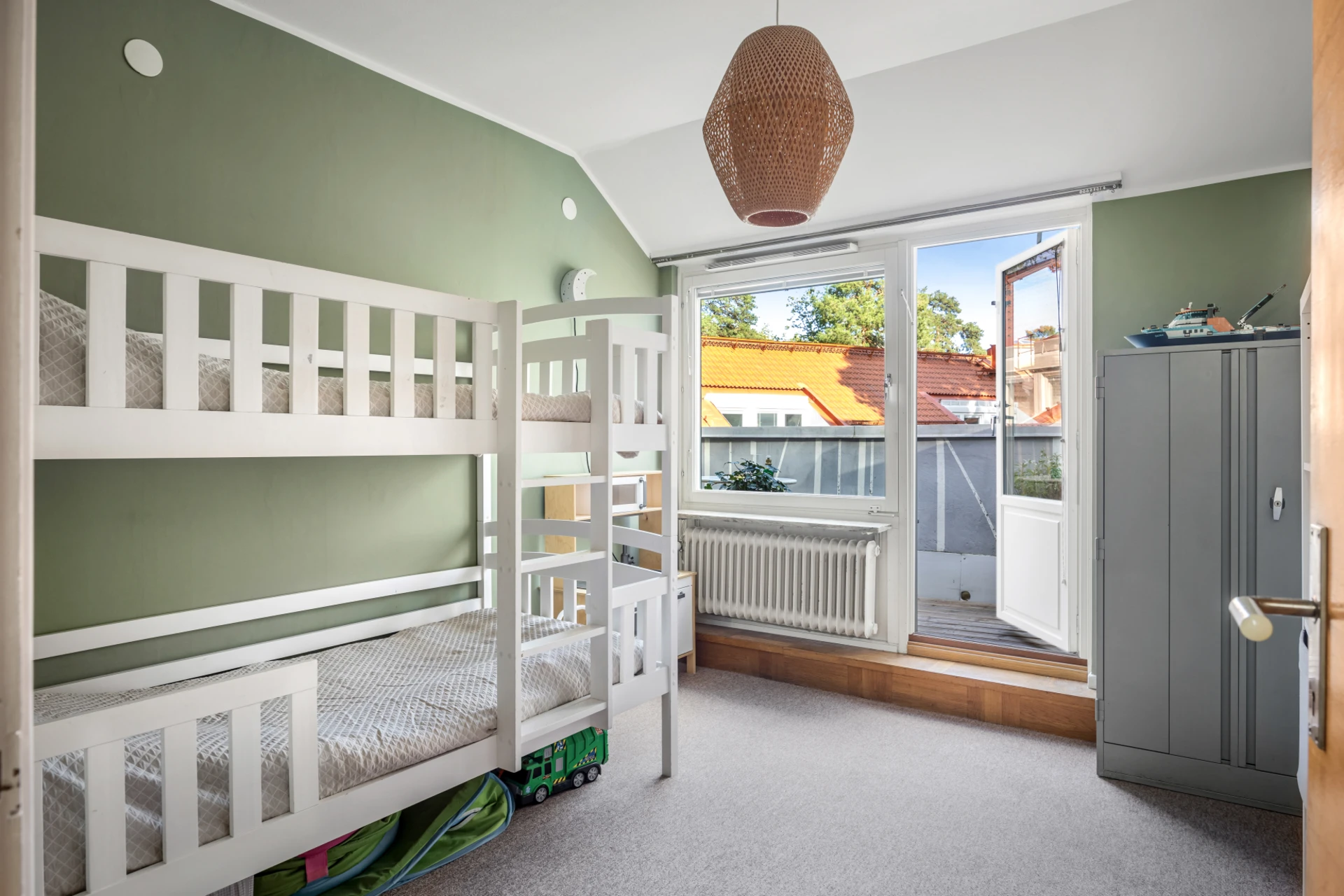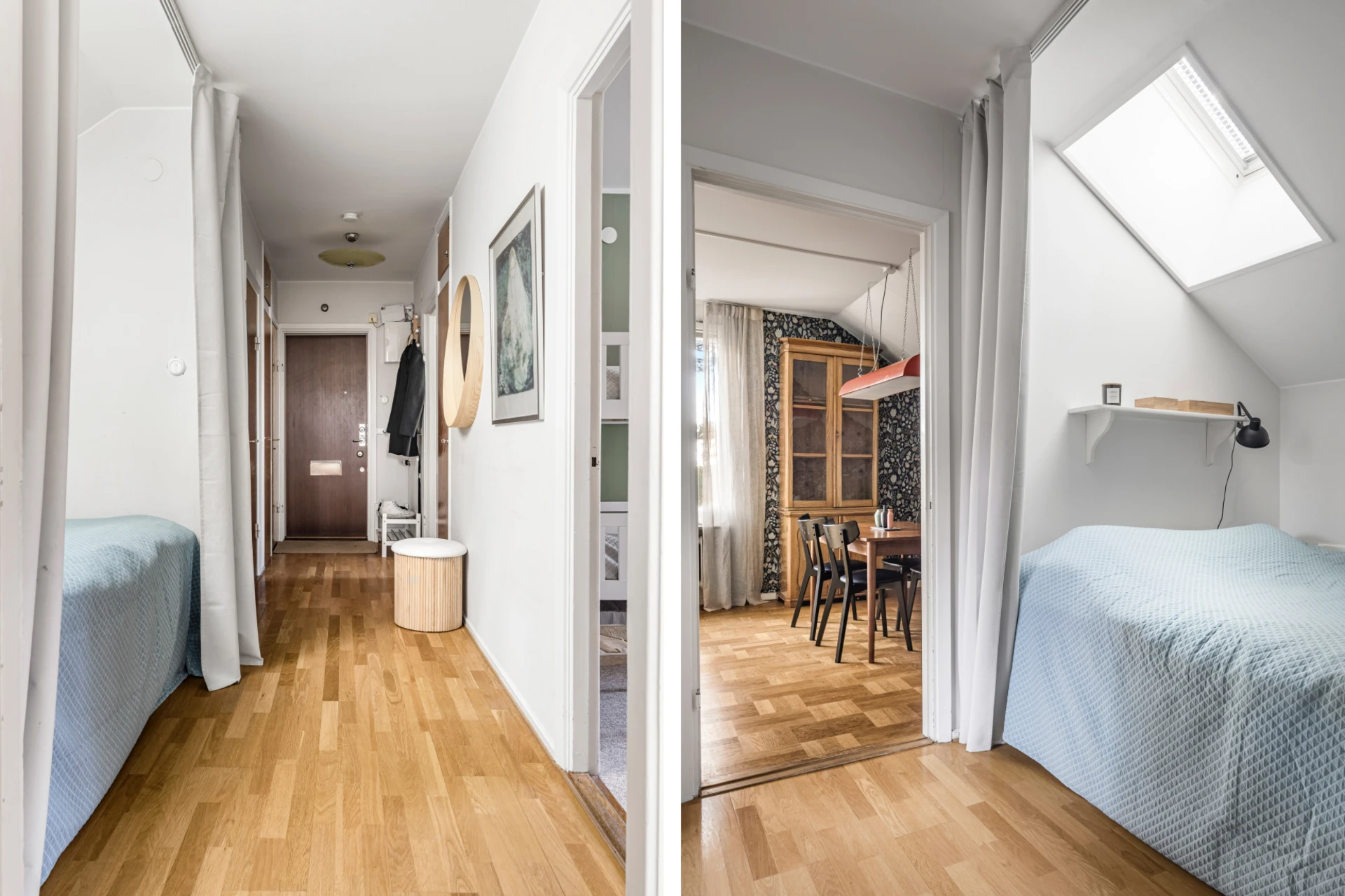 Välkommen till denna mysiga lägenhet högst upp i huset! En fantastisk terrass där du kan njuta av solen med ekorrar och fåglar som grannar bland de gamla tallarna intill. Stor innerhall som idag disponeras med en extra sovdel med takfönster. Samtliga fönster och takfönster (ej fönster vardagsrum) är renoverade och balkongdörr. Stambytt helkaklat badrum med golvvärme och tvättmaskin. Taken är omlagda i hela föreningen. Förvaringsmöjligheterna är goda med klädkammare och inbyggda garderober. Därtill finns två källarförråd.