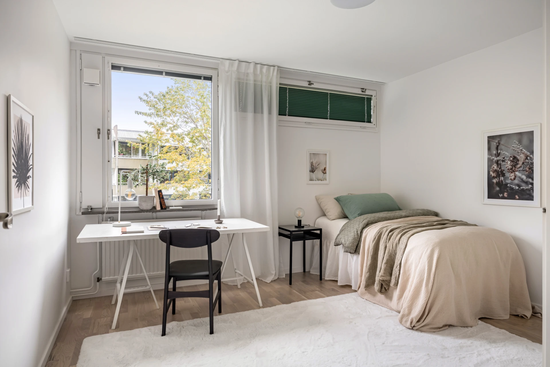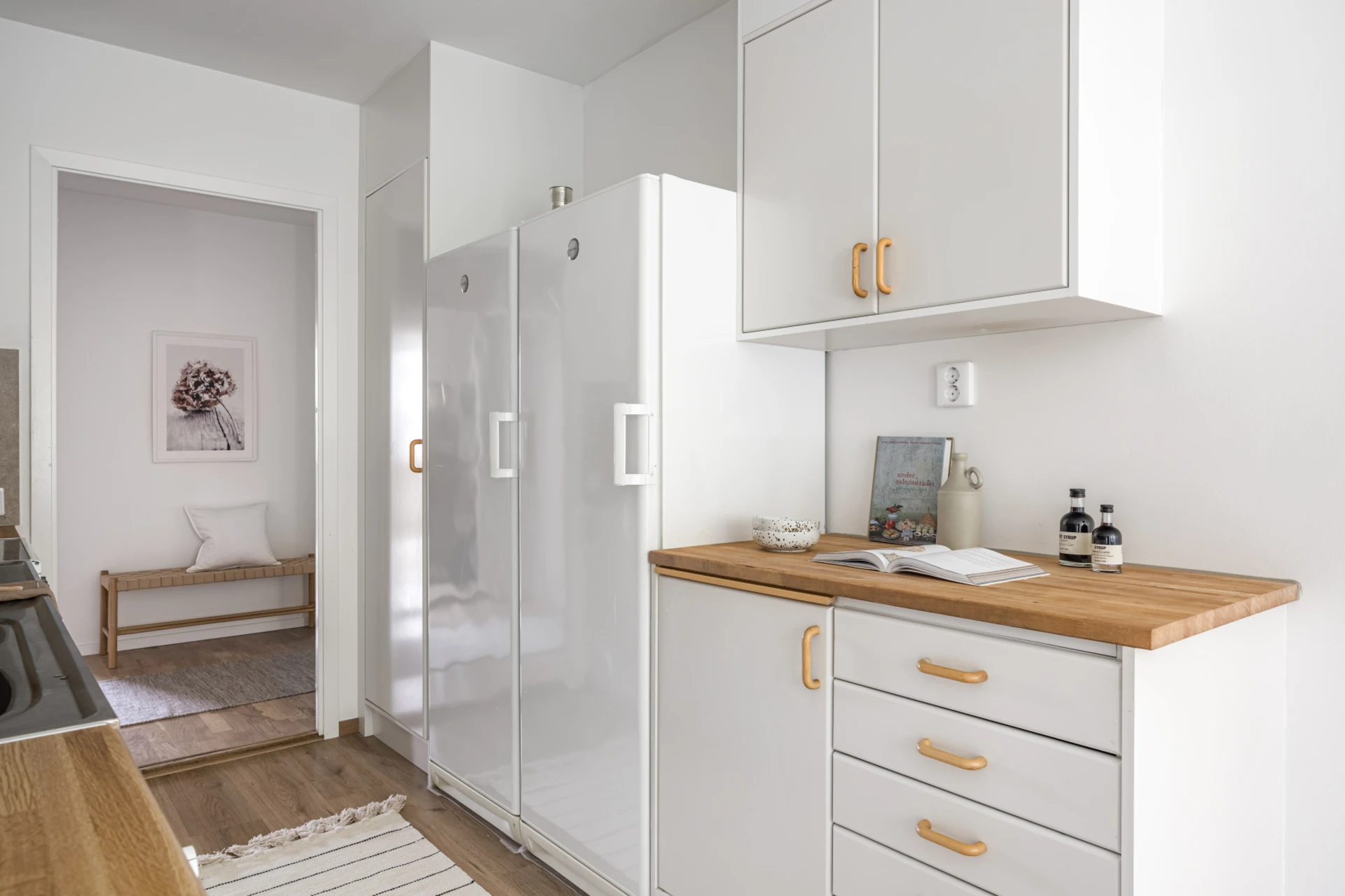 Från köket når du ett mindre rum med plats för säng, sängbord och byrå,