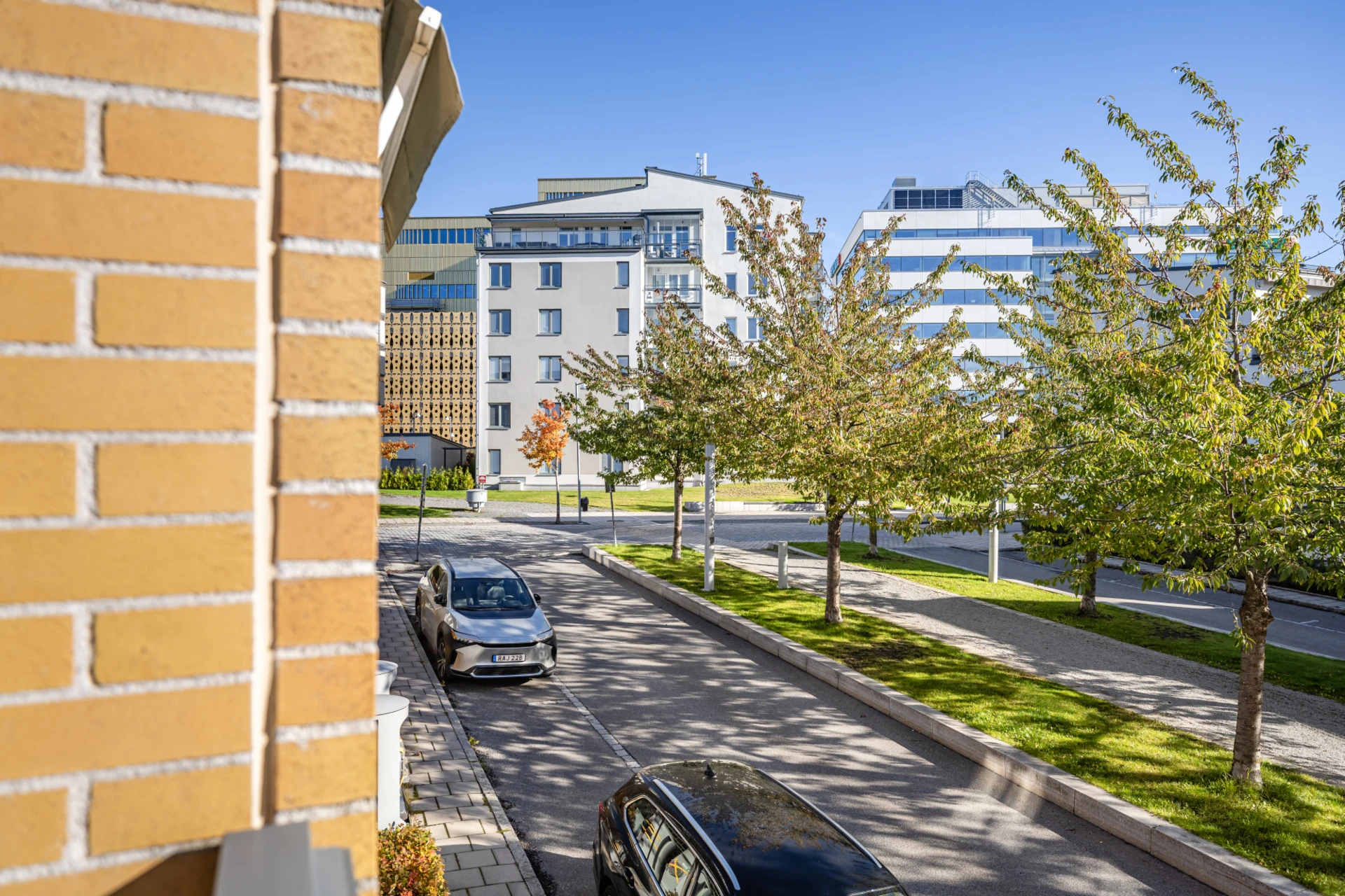 Med utgång från master bedroom, finns en balkong med plats för cafégrupp och växter.