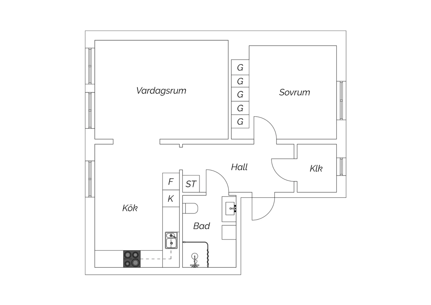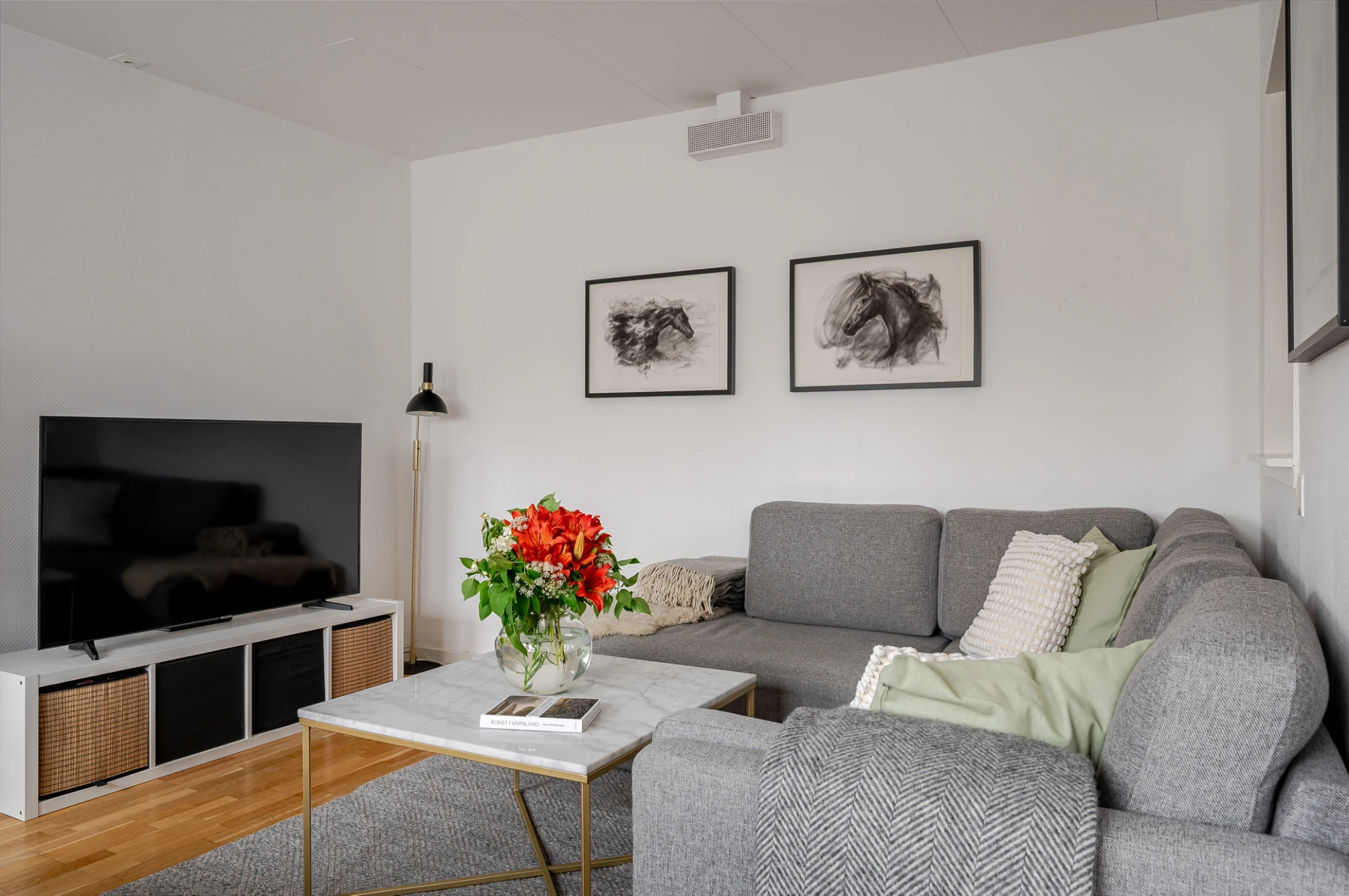 I månadsavgiften ingår värme, vatten och kabel-tv (Tele2 basutbud).