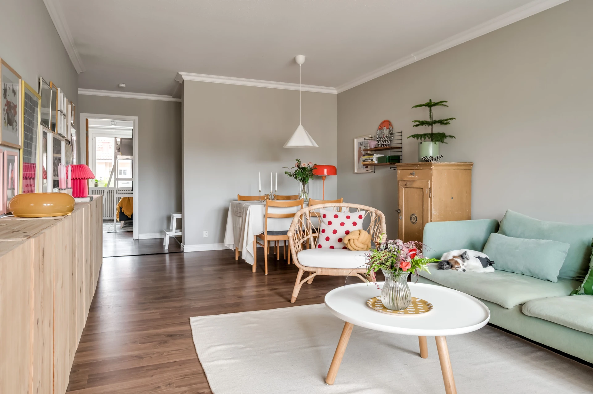 I avgiften ingår bostadsrättstillägg, värme och vatten. Obligatoriska tillägg för kabel-tv om 45 kr/mån samt trappstäd om 50 kr/mån tillkommer. Totalt 4307 kr/mån.