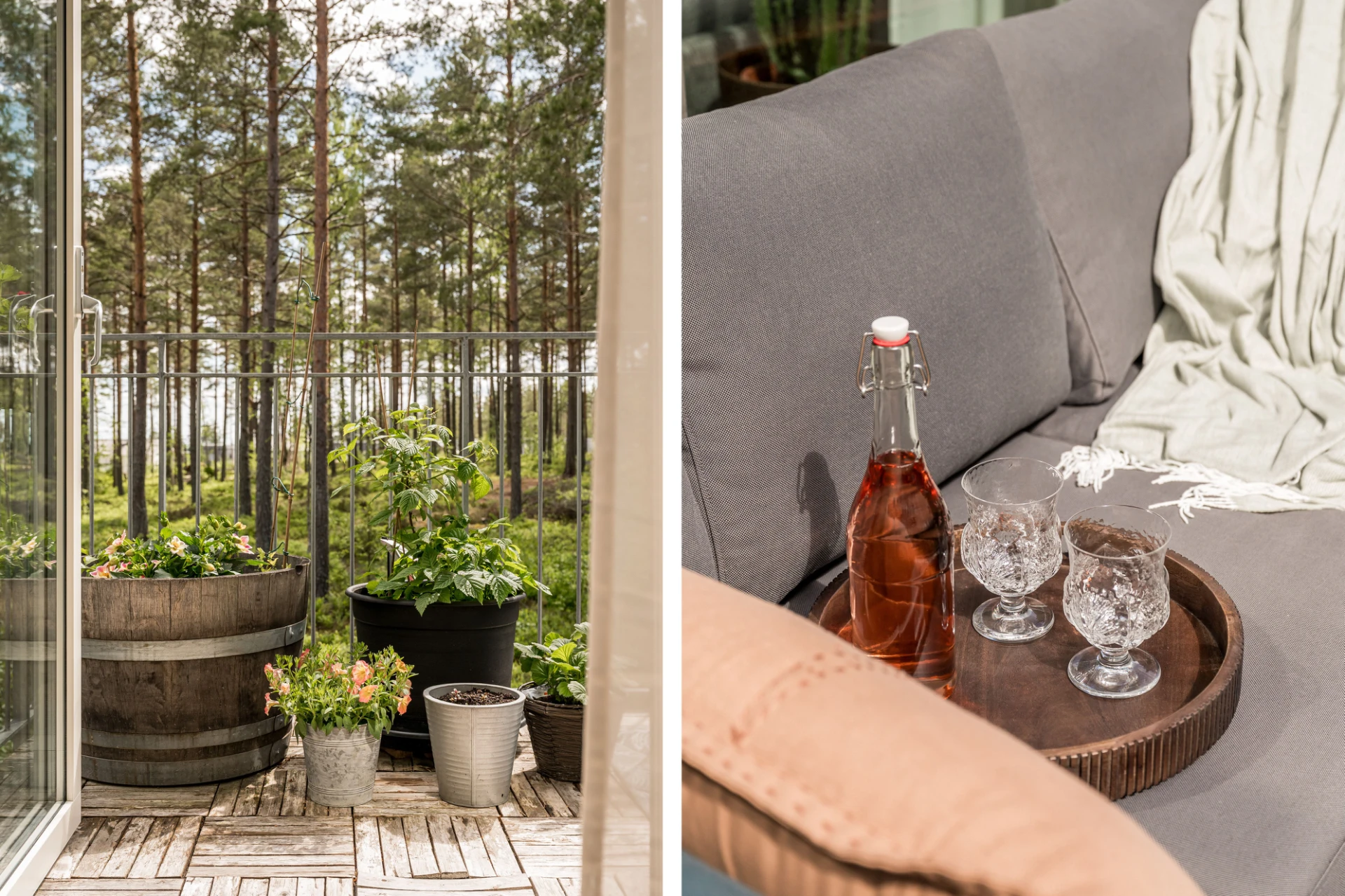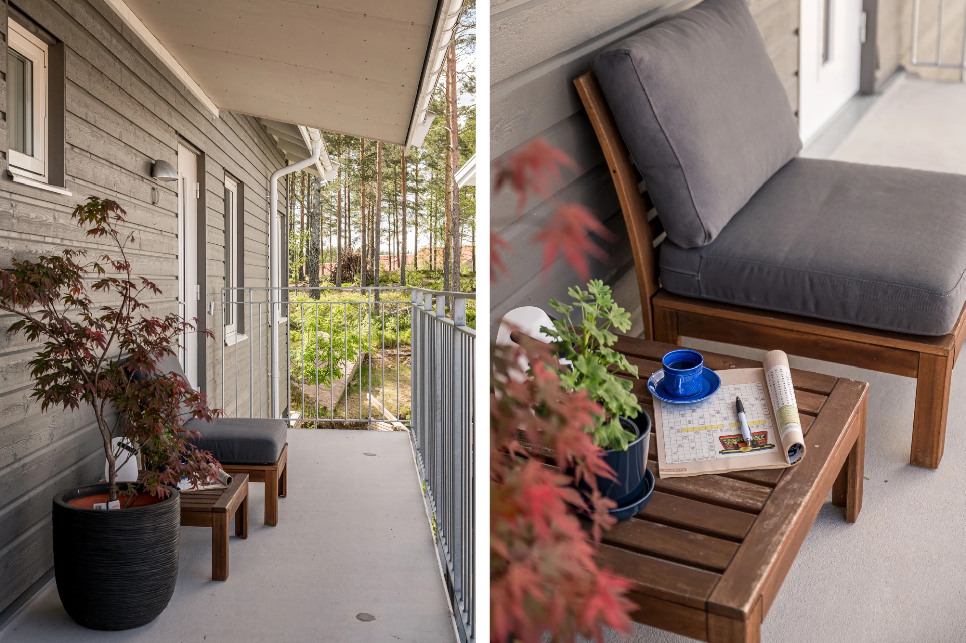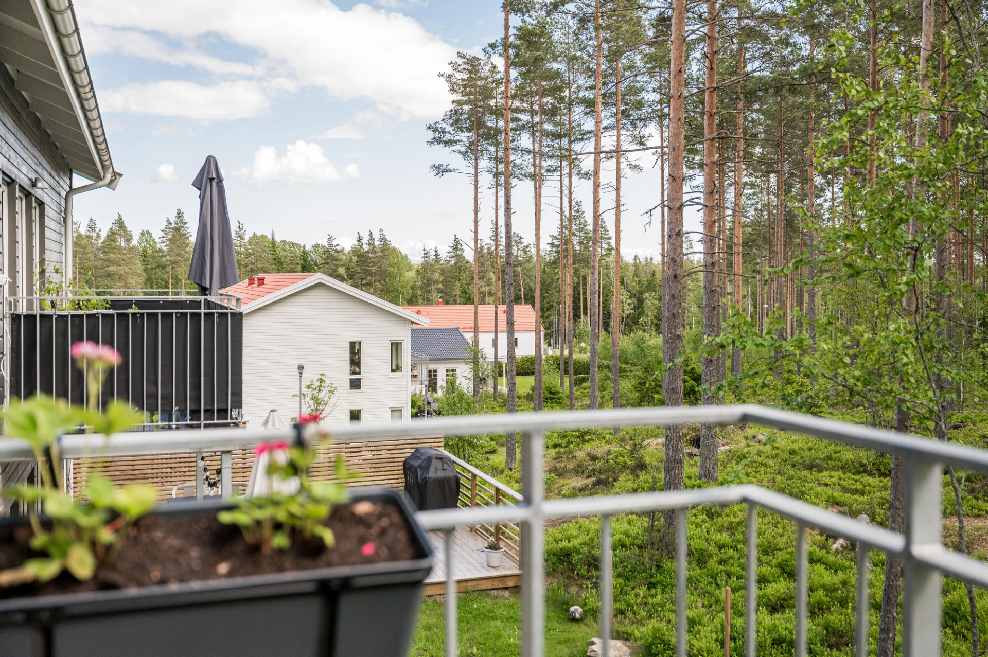 Bostadens 72 kvadratmeter fördelas på ett harmoniskt sätt med en öppen och social planlösning mellan kök och vardagsrum som med sina stora fönsterpartier bjuder på ett vackert ljusinsläpp. Det här blir den naturliga platsen när det är dags för härligt umgänge med vänner och familj, och under sommarmånaderna öppnar ni gärna ut till balkongen som ligger i ett lugnt söderläge med skogen som närmsta granne. Lägenheten har tre sovrum i bra storlek och ett helkaklat duschrum med egen tvättutrustning som förenklar vardagen. Goda förvaringsmöjligheter genom flera garderober och inte minst tack vare den rymliga klädkammaren i anslutning till hallen. Till lägenheten hör ett förråd i en fristående byggnad och på den breda loftgången får ni plats för en möbelgrupp vilket blir som en extra uteplats.