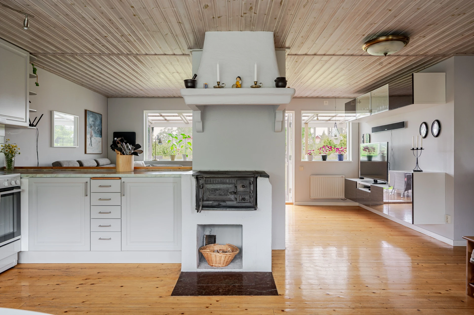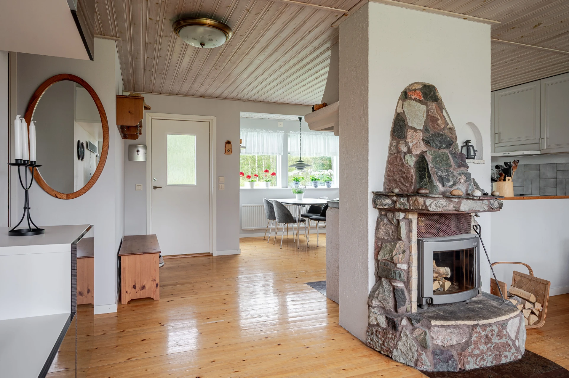 På fastigheten finner ni en charmig bostad om 82 kvm med genomgående fräscha ytskikt och ett vackert plankgolv i trä som ger bostaden en varm och inbjudande karaktär. Här erbjuds två sovrum, ett allrum samt en öppen planlösning mellan kök och vardagsrum – perfekt för både familjeliv och sociala stunder. I vardagsrummet sprider en kamin både värme och trivsel och i köket finner ni en karaktärsfull vedspis. Från bostaden ser ni en glimt av Vänerns glittrande vatten, och från den härliga altanen i nordvästläge njuter ni av magiska solnedgångar.