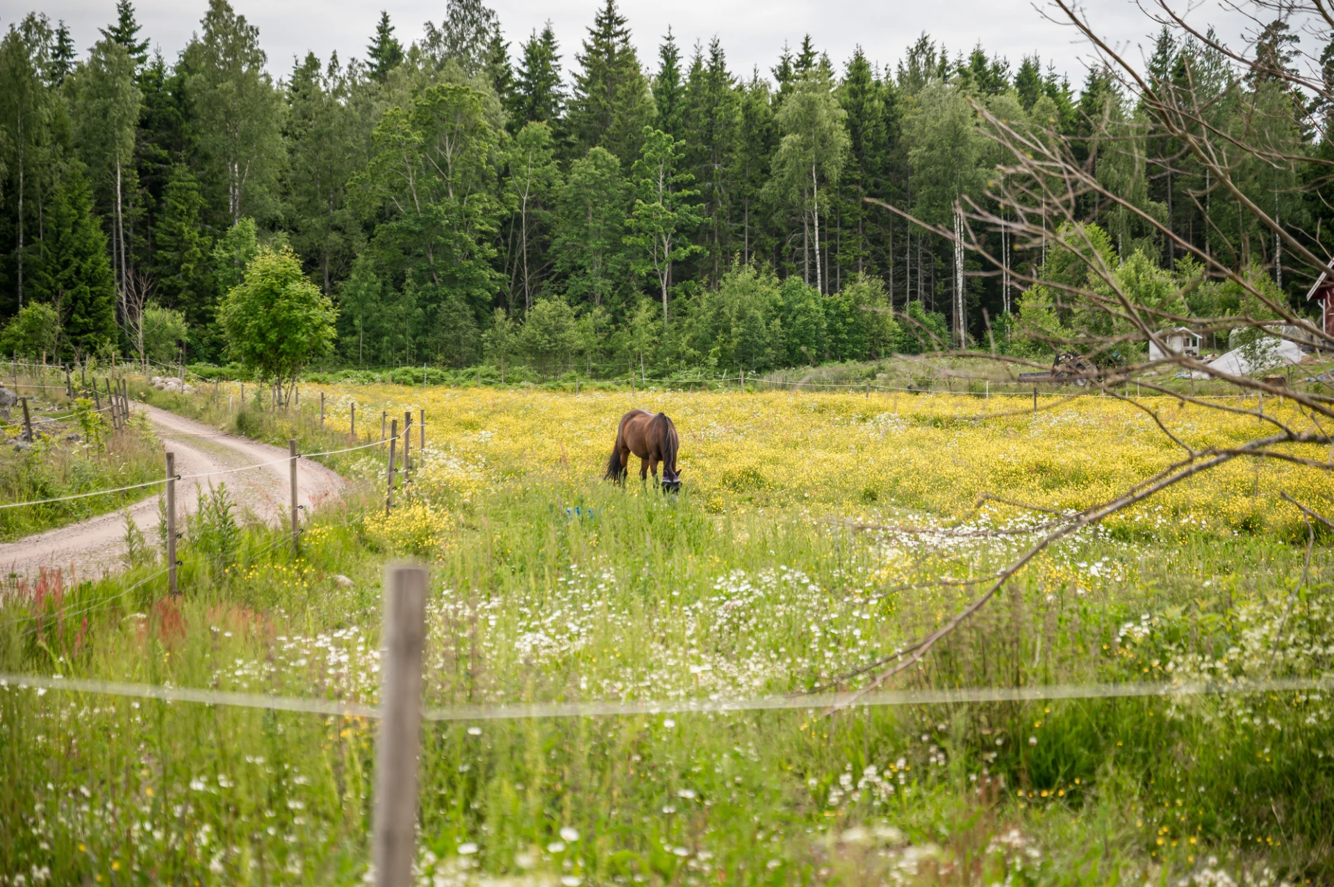 Bostaden är ett verkligt smultronställe – bokstavligt talat. På tomten växer smultron i överflöd och i den intilliggande skogen finns gott om blåbär, lingon och svamp. Här plockar ni själva ingredienserna till sommarens godaste pajer.