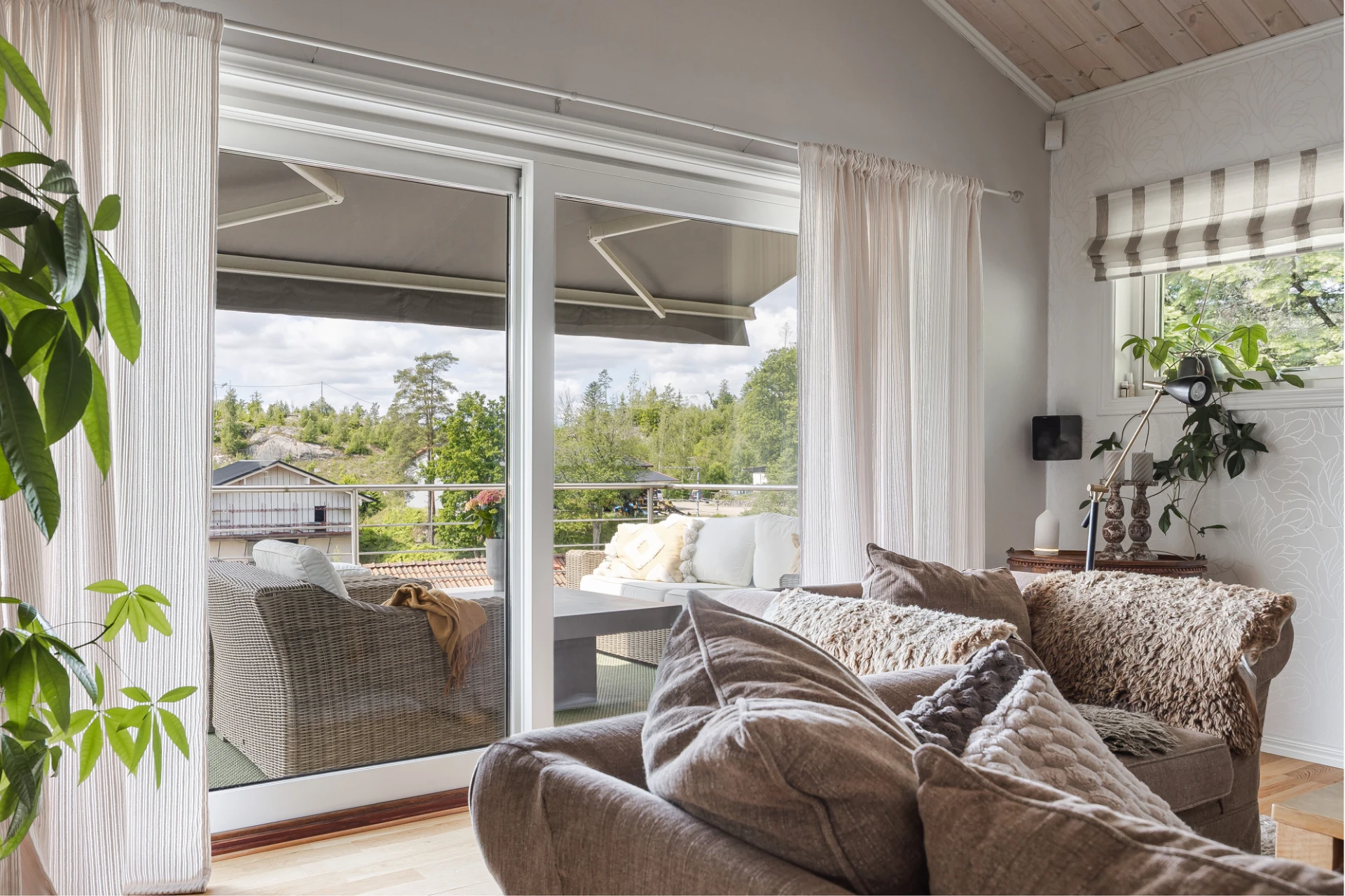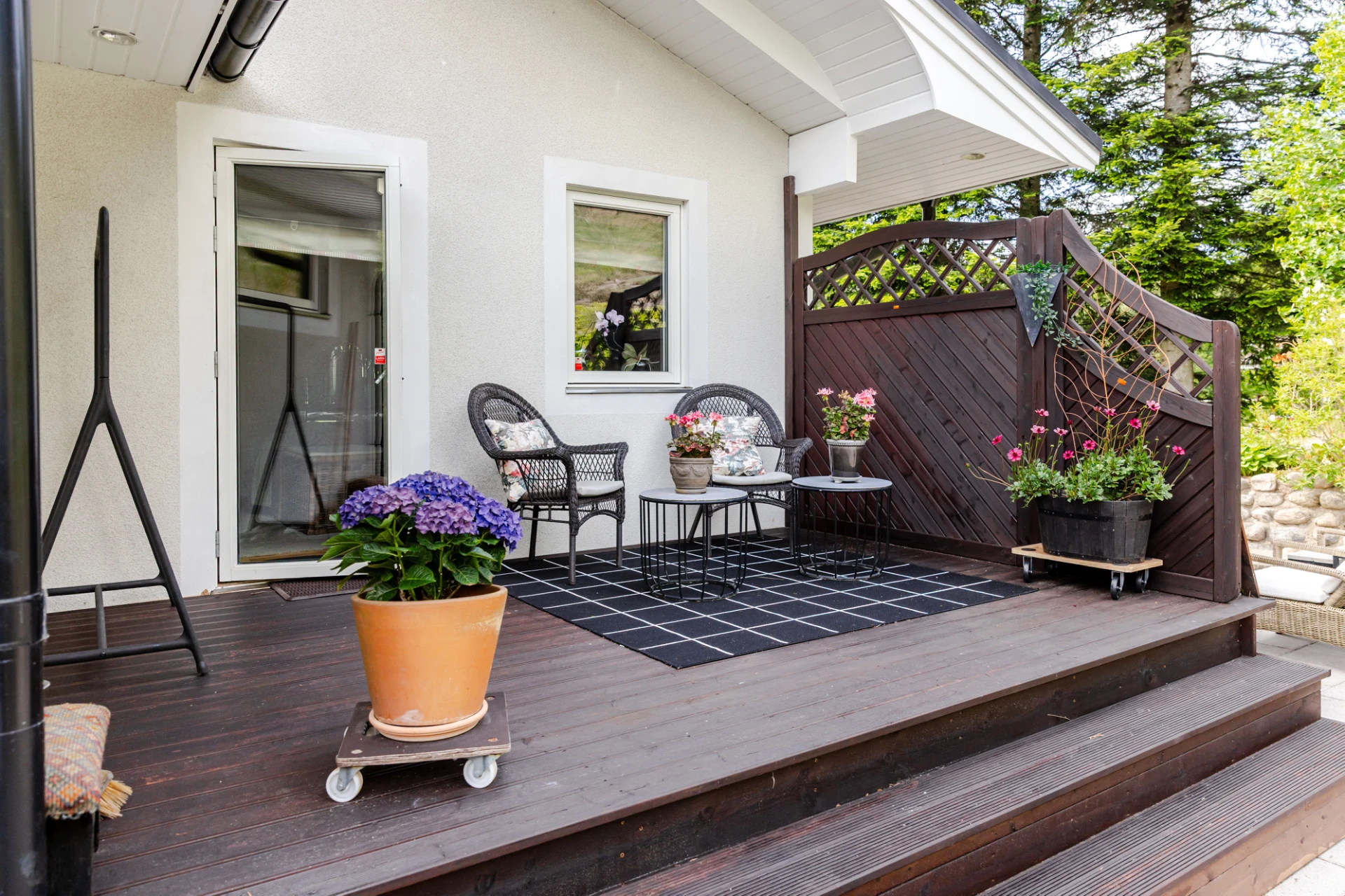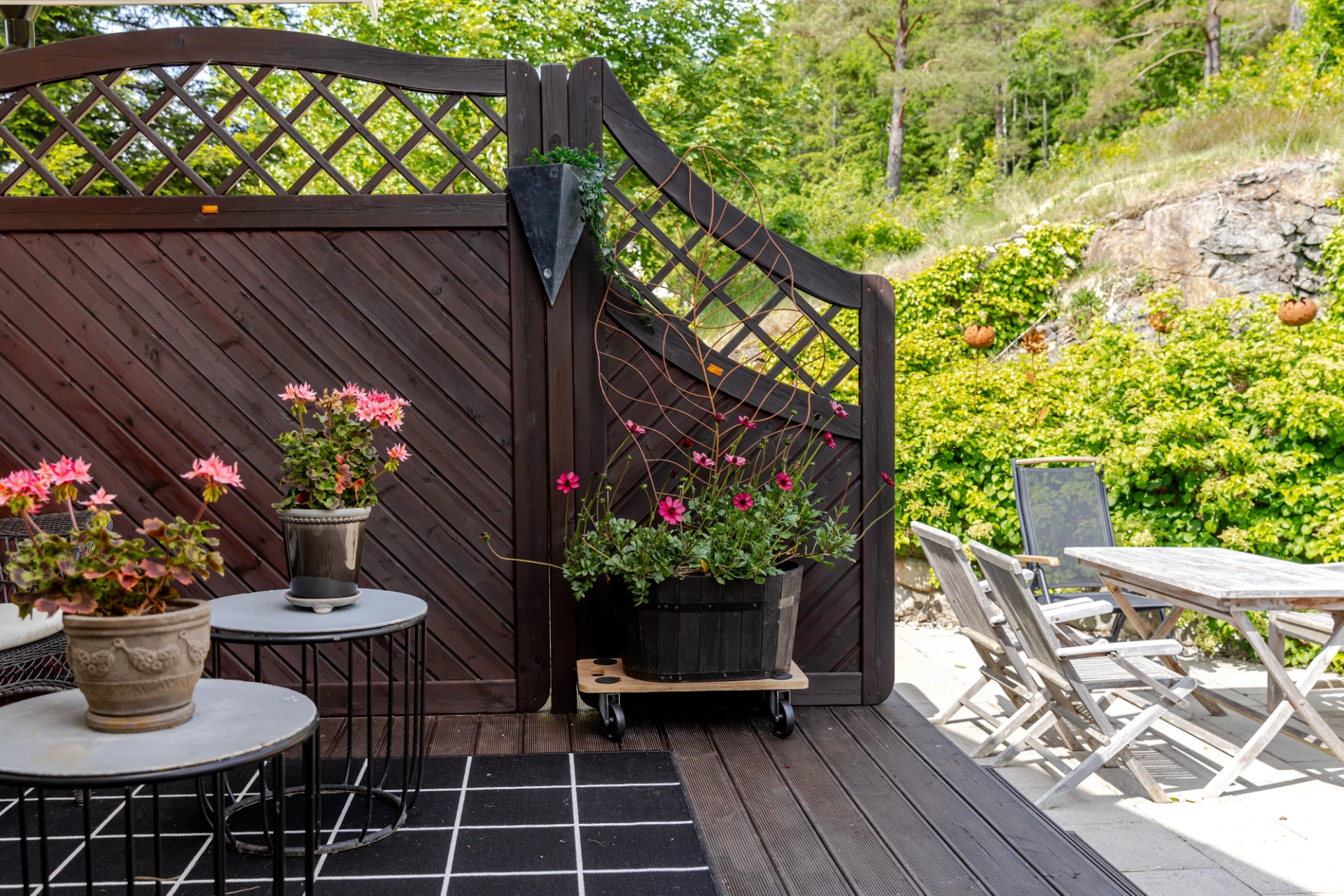 Villan omges av en trivsam naturskön tomt med uteplatser i olika väderstreck – perfekt för sommarens grillkvällar, lek och avkoppling.