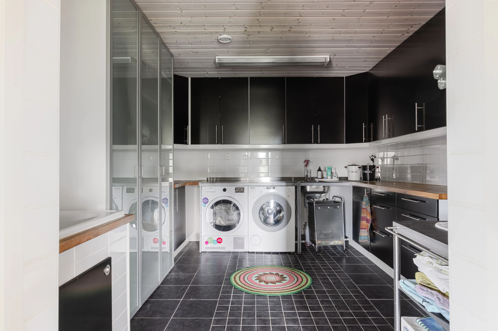 Källarplan erbjuder ett inbyggt garage med direktaccess till bostaden – praktiskt, säkert och bekvämt året om. Utöver garage finns här även gott om förvaringsmöjligheter och utrymme för att skapa antingen hobbyverksamhet, hemmagym eller verkstad.