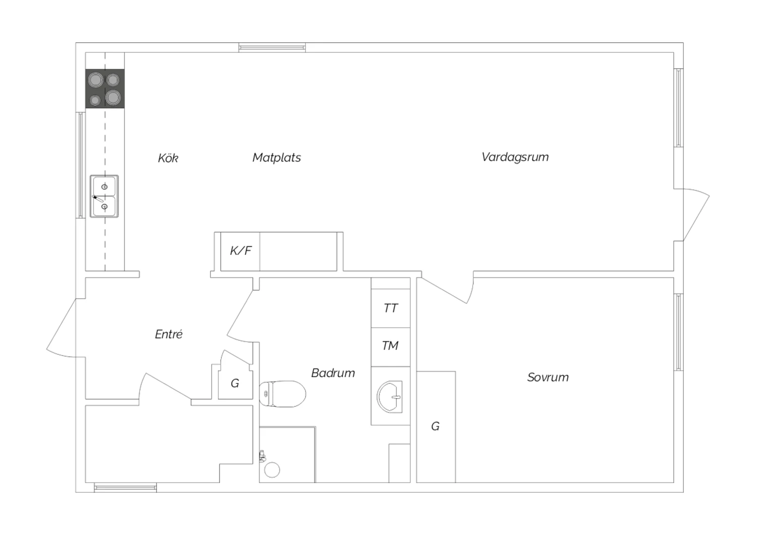 Entréplan – inga trappor, enkel tillgång med barnvagn, cykel eller rullator