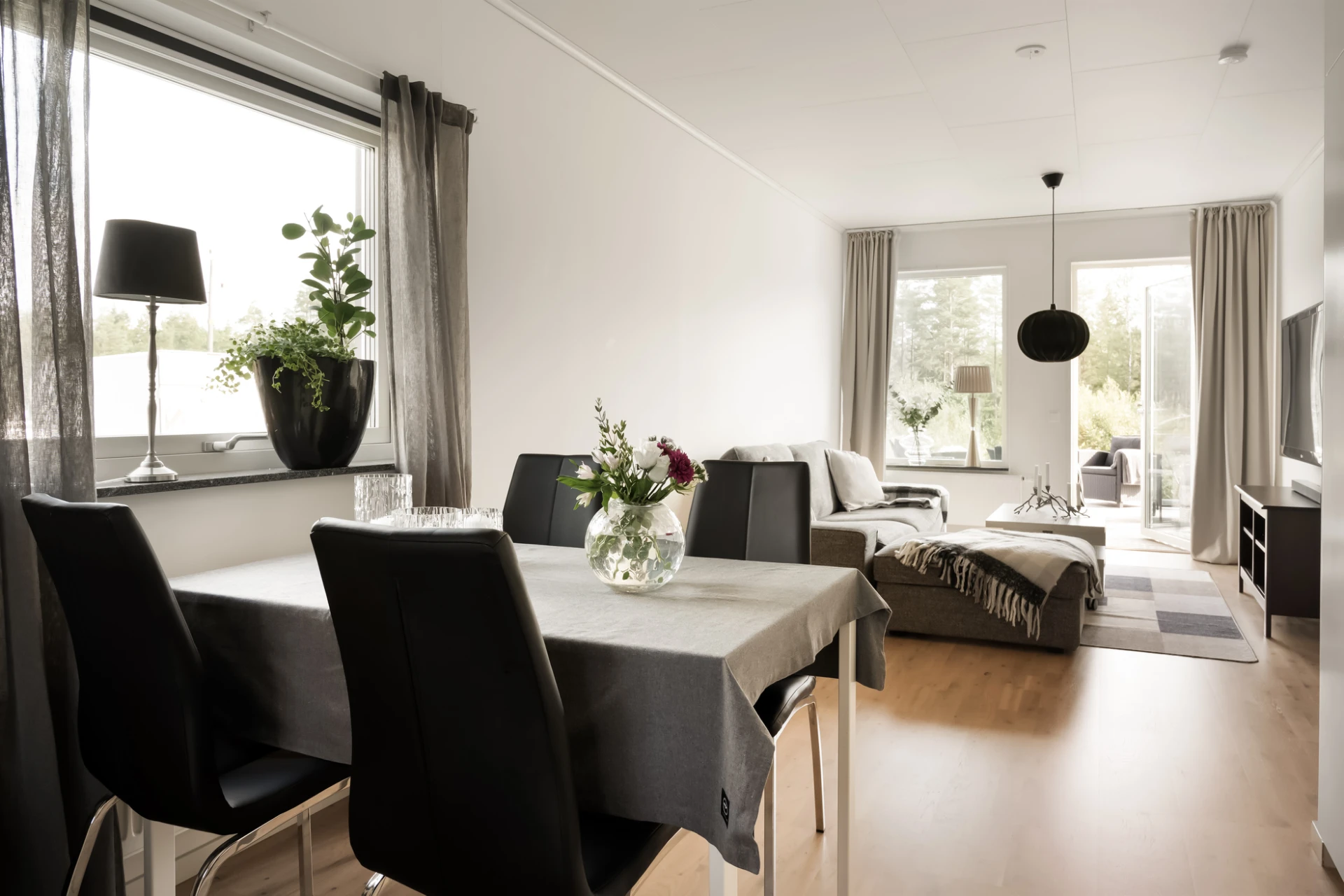 Byggd 2019 bjuder bostaden på genomgående moderna materialval, energieffektiva lösningar och en ljus, öppen planlösning. Här får du ett hem där du bara kan flytta in och trivas från dag ett!