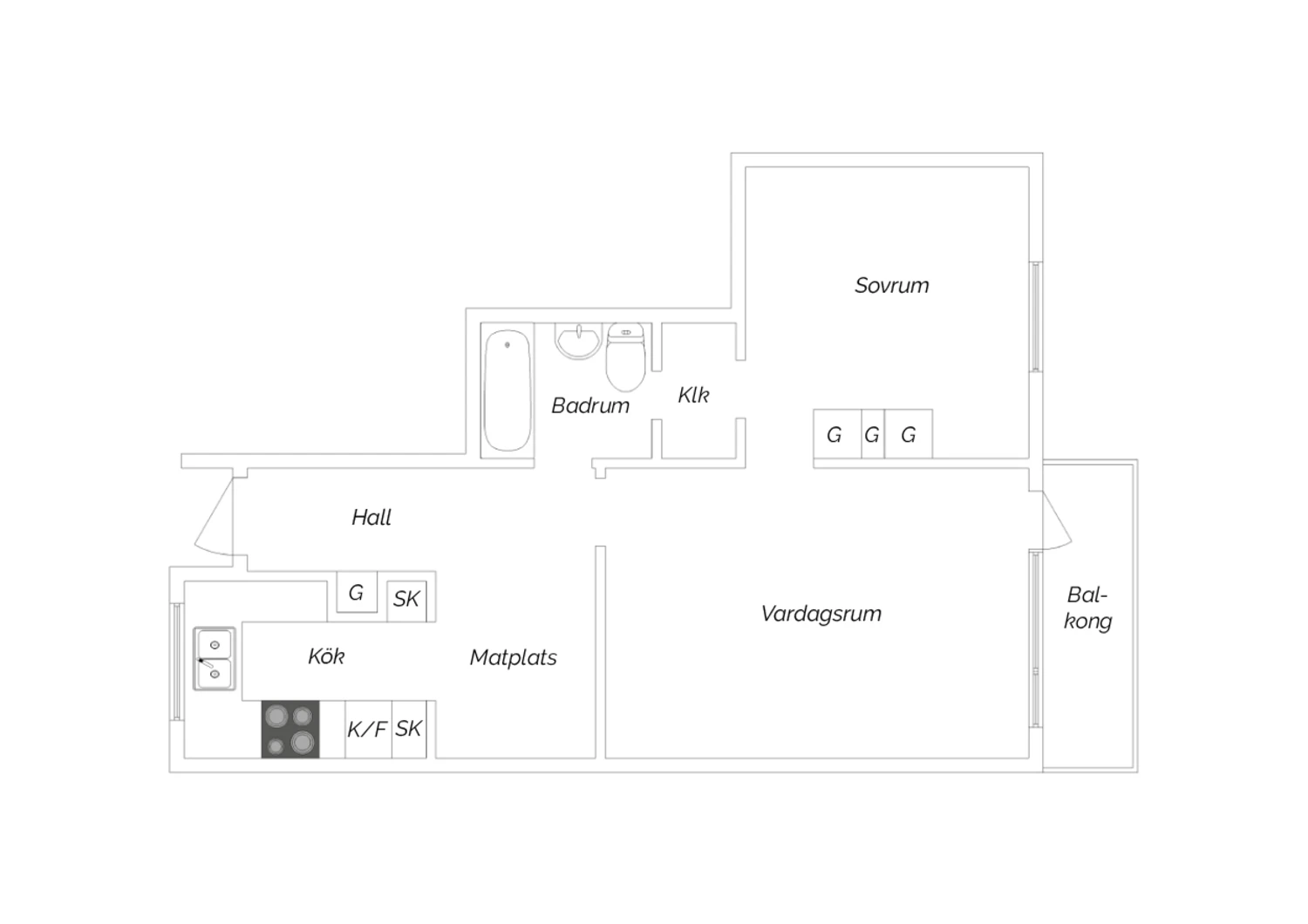 2 rum, 63 kvm boarea