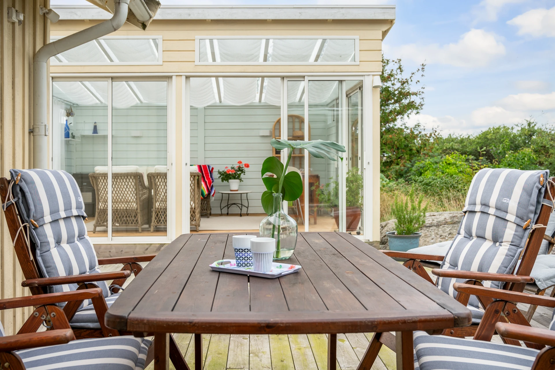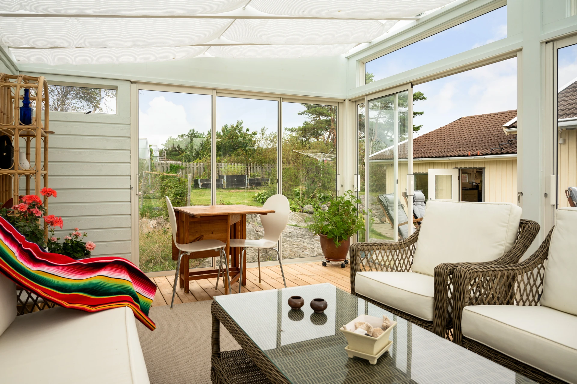 Villaidyll ett stenkast från havet med inglasat uterum och altan i soligt läge!