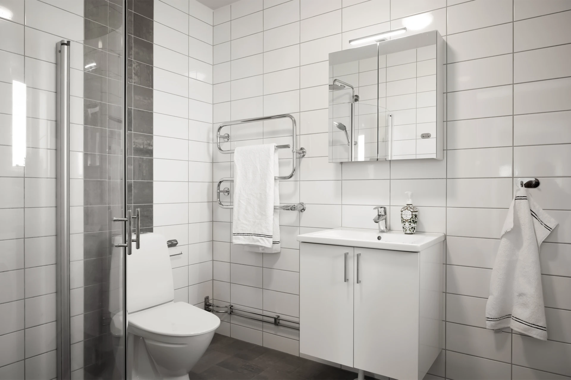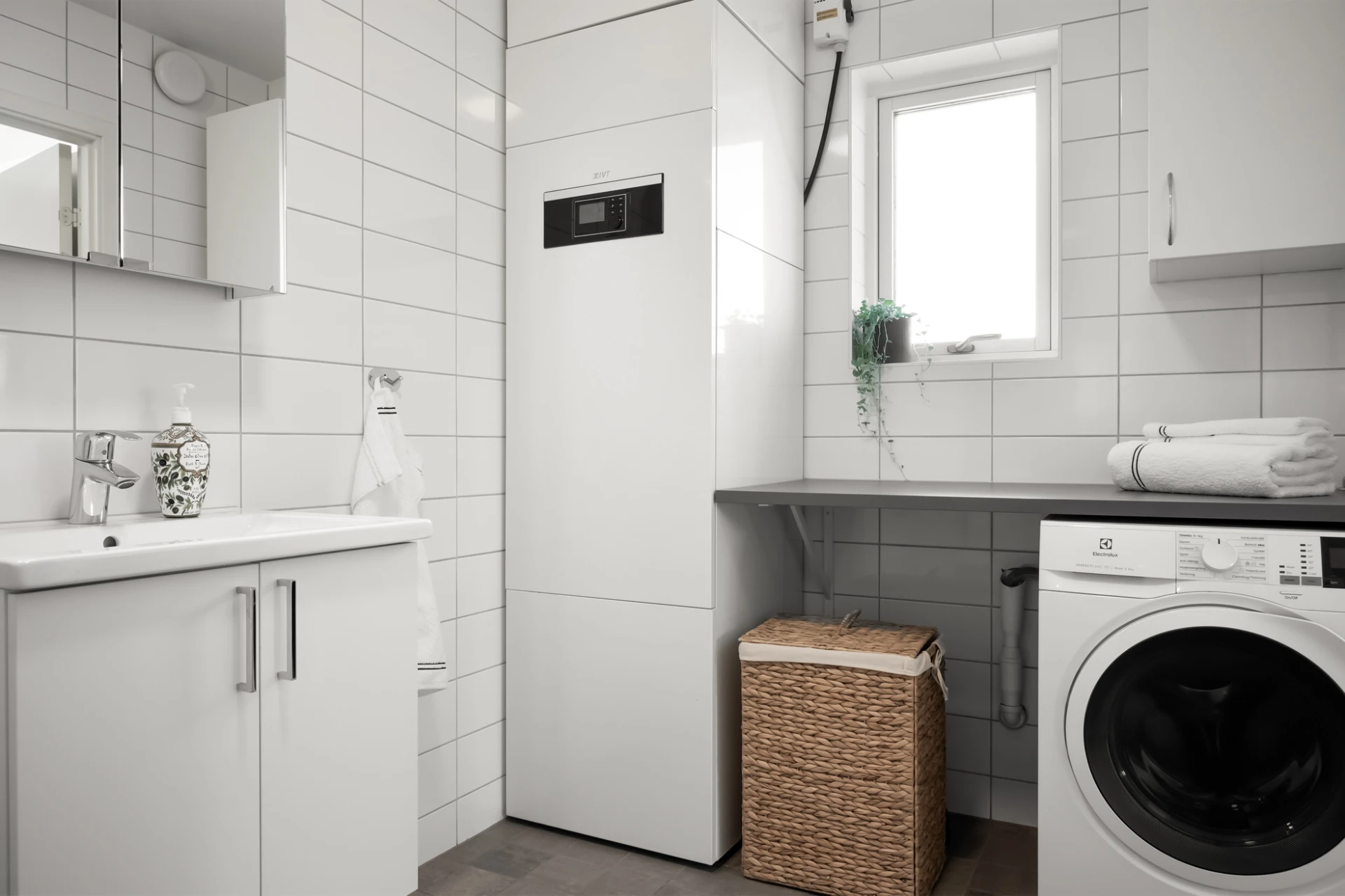 • Helkaklat badrum med tvättmaskin