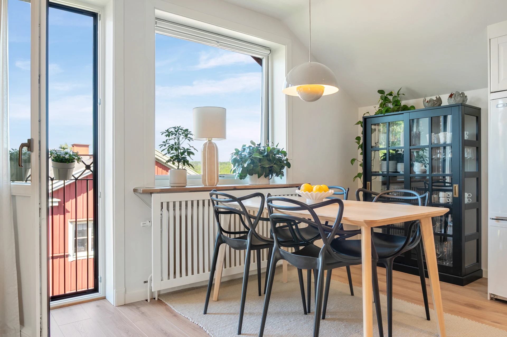 Tack vare den vackra och eleganta franska balkongen kommer även solens strålar in på ett naturligt sätt i lägenheten.