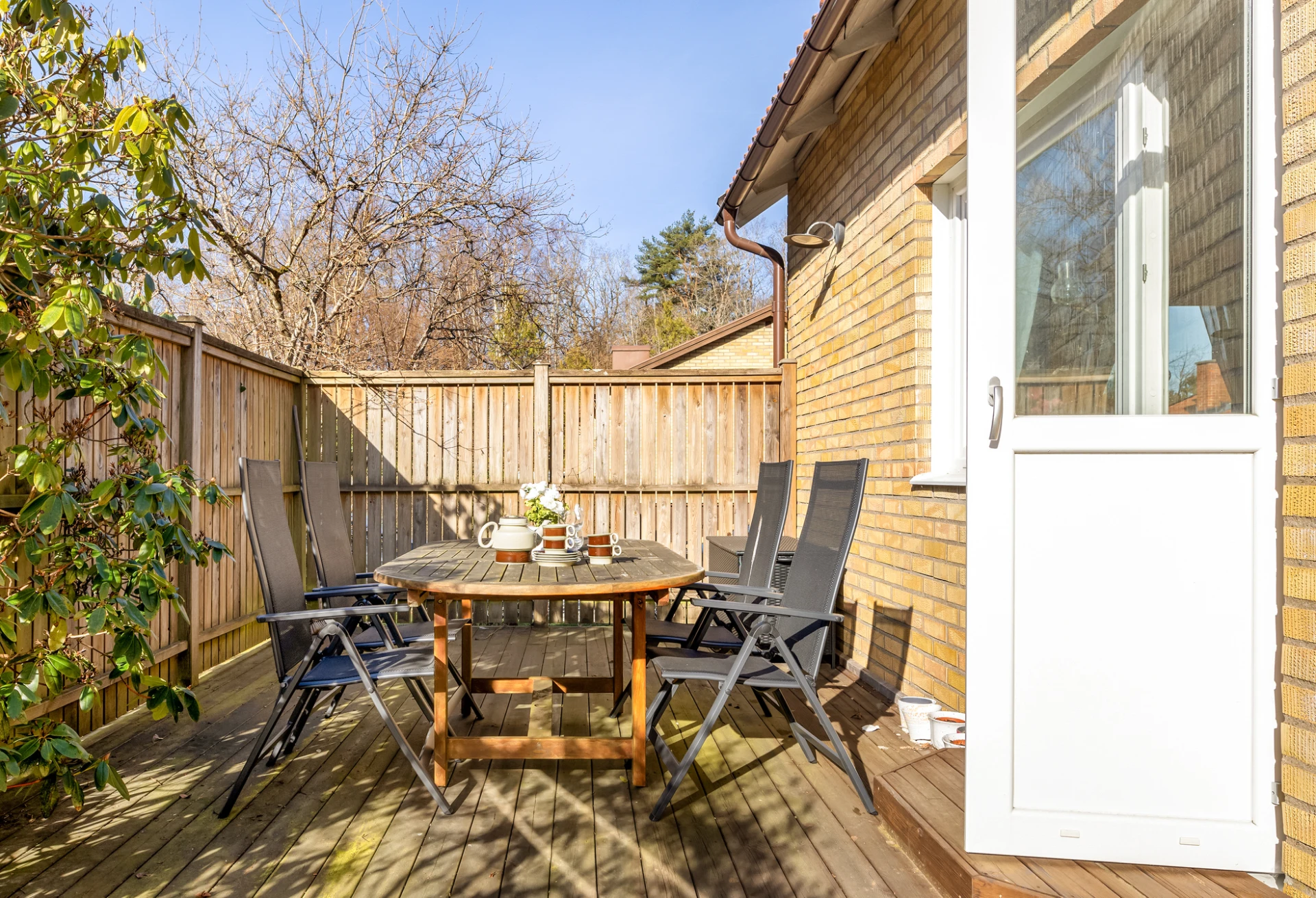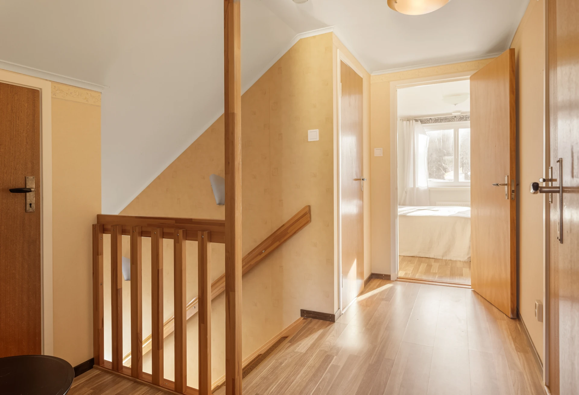 Här erbjuds ett stort och ljust vardagsrum med plats för både umgänge och avkoppling i anslutning till det välplanerade köket. Entréplanet erbjuder även 2 rymliga sovrum, ett gediget badrum och utgång till den insynsskyddade altanen i soligt läge. En trappa upp erbjuds ytterligare två sovrum varav den ena med en lyxig balkong! Gott om förvaringsmöjligheter i väl tilltagna garderober med plats allt den stora familjen kan tänkas behöva förvara!