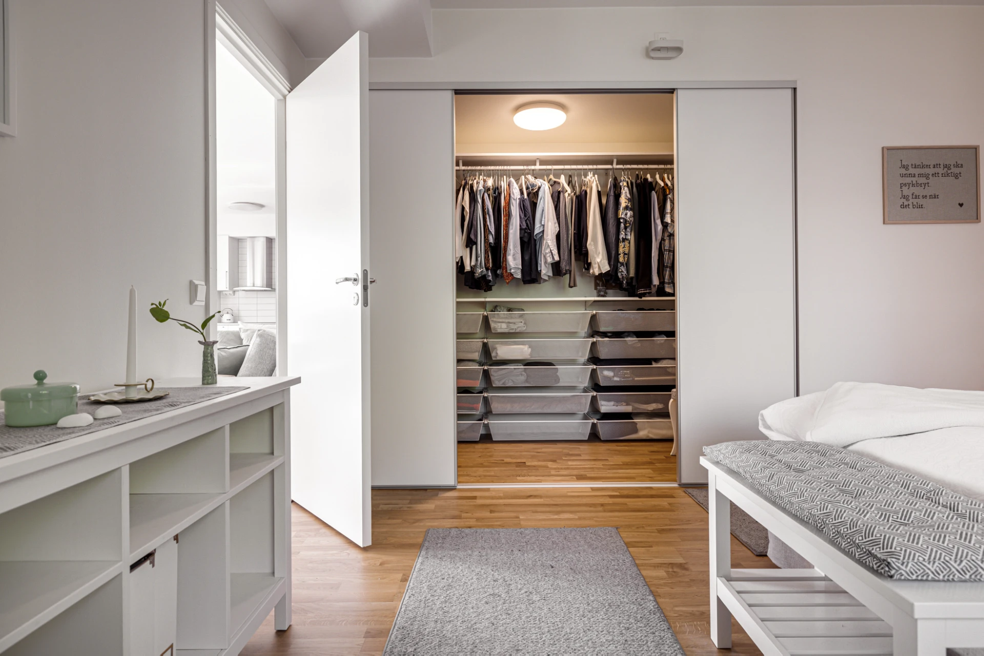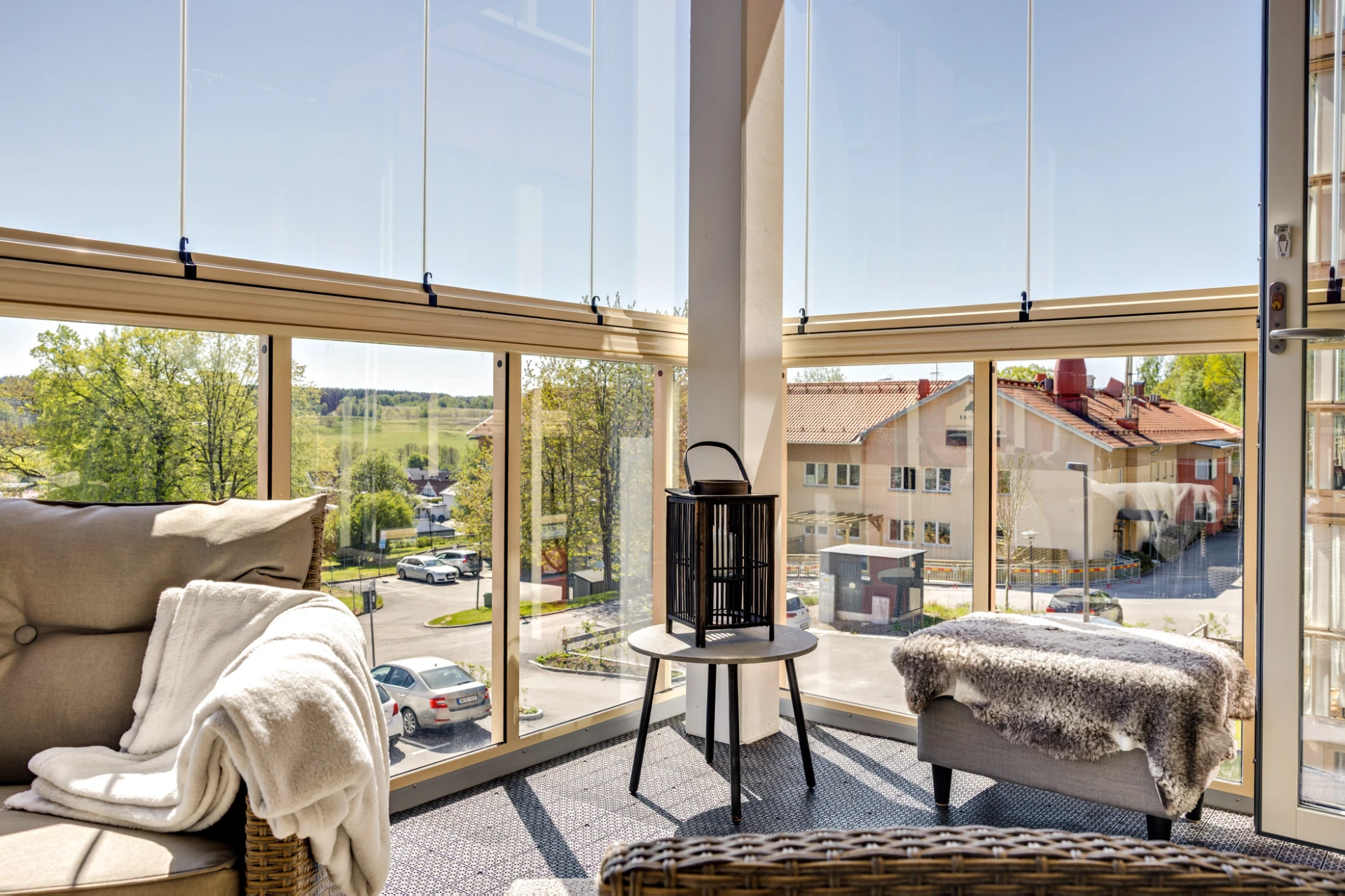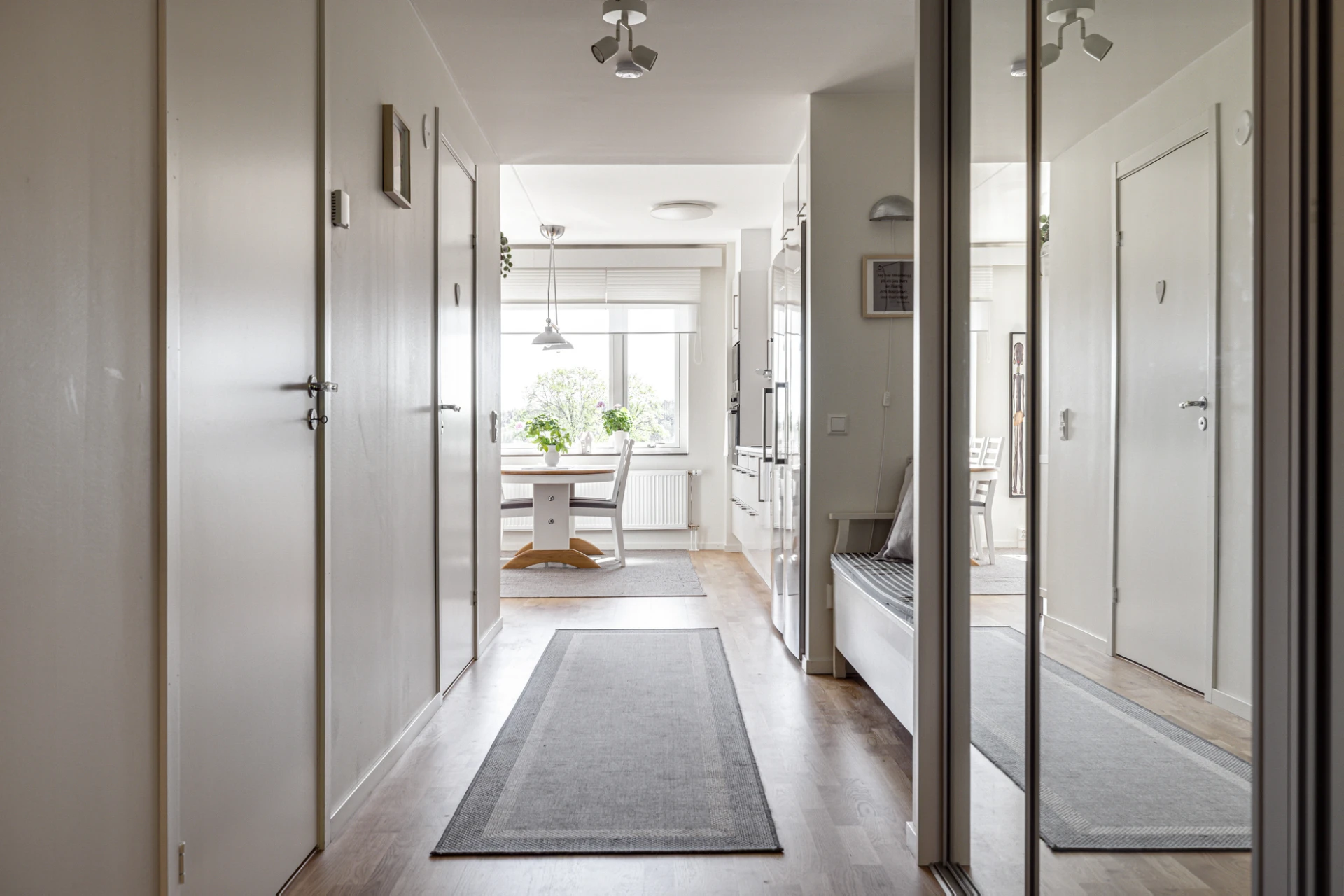 Nu är denna väl genomtänkta trea om hela 85 kvadratmeter till salu på Envägen 4. Med högt läge i huset och med en fantastisk inglasad balkong är detta ett riktigt kvalitetsboende. Här finns en stor hall med gott om förvaringsmöjligheter och tillhörande klädkammare. Kök och vardagsrum i öppen planlösning. Det stora sovrummet har en stor klädkammare. Båda sovrum når man från vardagsrumsdelen. Badrummet är mycket rymligt och kombinerat med tvättstuga.