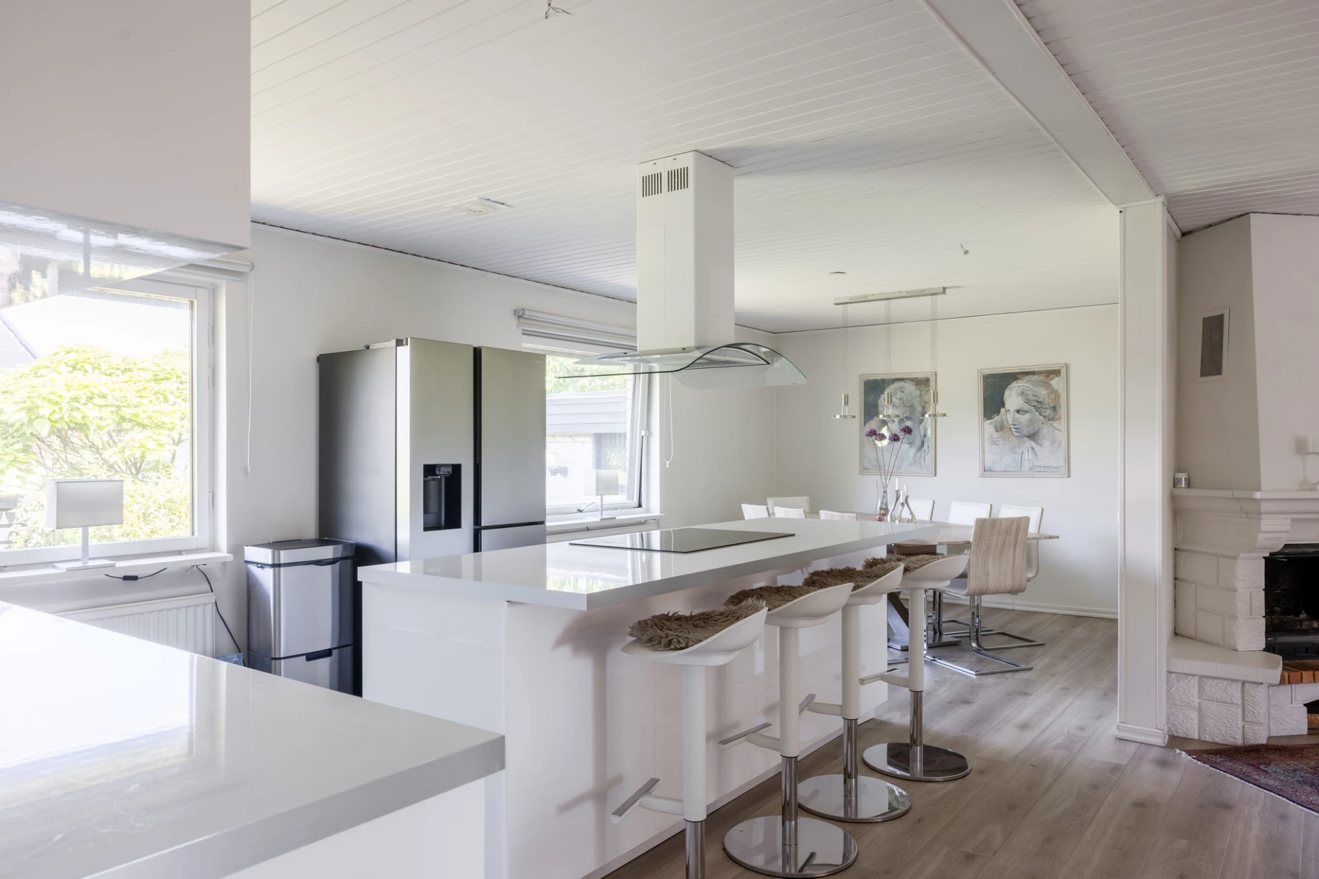Varmt välkomna ska ni vara till detta välplanerade 1-plansvilla med inredd källarvåning om totalt 302 kvm varav 126 kvm boyta och 176 kvm biyta. Huset ligger i populärt och attraktivt område med en hörntomt och garage. I Husets entréplan finns renoverat och stort kök med köksö och med öppen planlösning mot allrum och matsalsdel. Från allrummet ser man den välplacerade öppna spisen som höjer mysfaktorn. Stora fönsterpartier som bjuder på härligt ljusinsläpp. Köket har gott om utrymme för förvaring och här finns bra arbetsmöjligheter. Inre hall som binder samman samtliga sovrum. All sovrum i bra storlek med plats för dubbelsäng samt garderober. I anslutning till hallen finns badrum. Lättmöblerat vardagsrum med stora fönsterpartier och ljusinsläpp på från två väderstreck. Härifrån har ni utgång till den fantastiska och inbjudande inglasade uterummet.