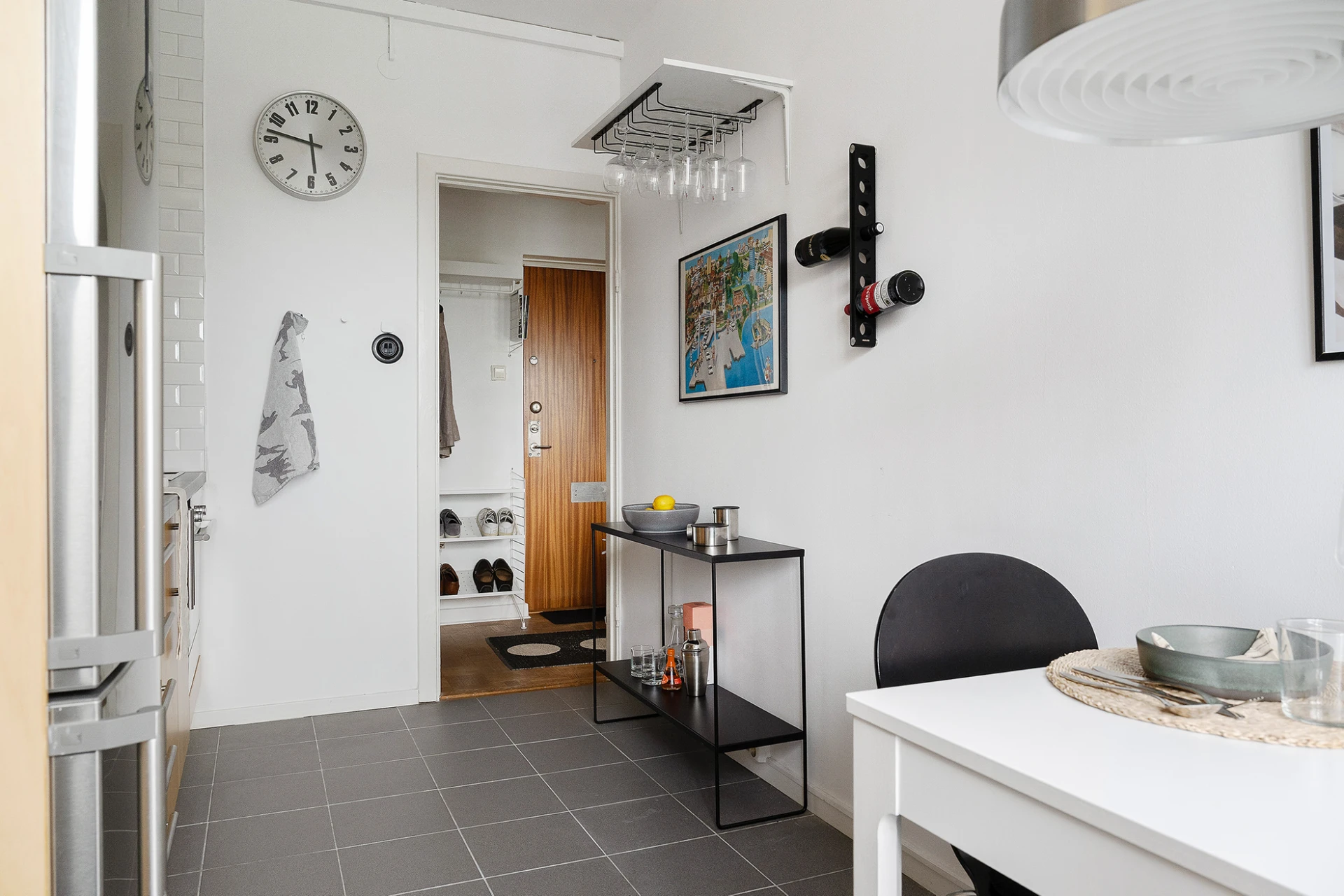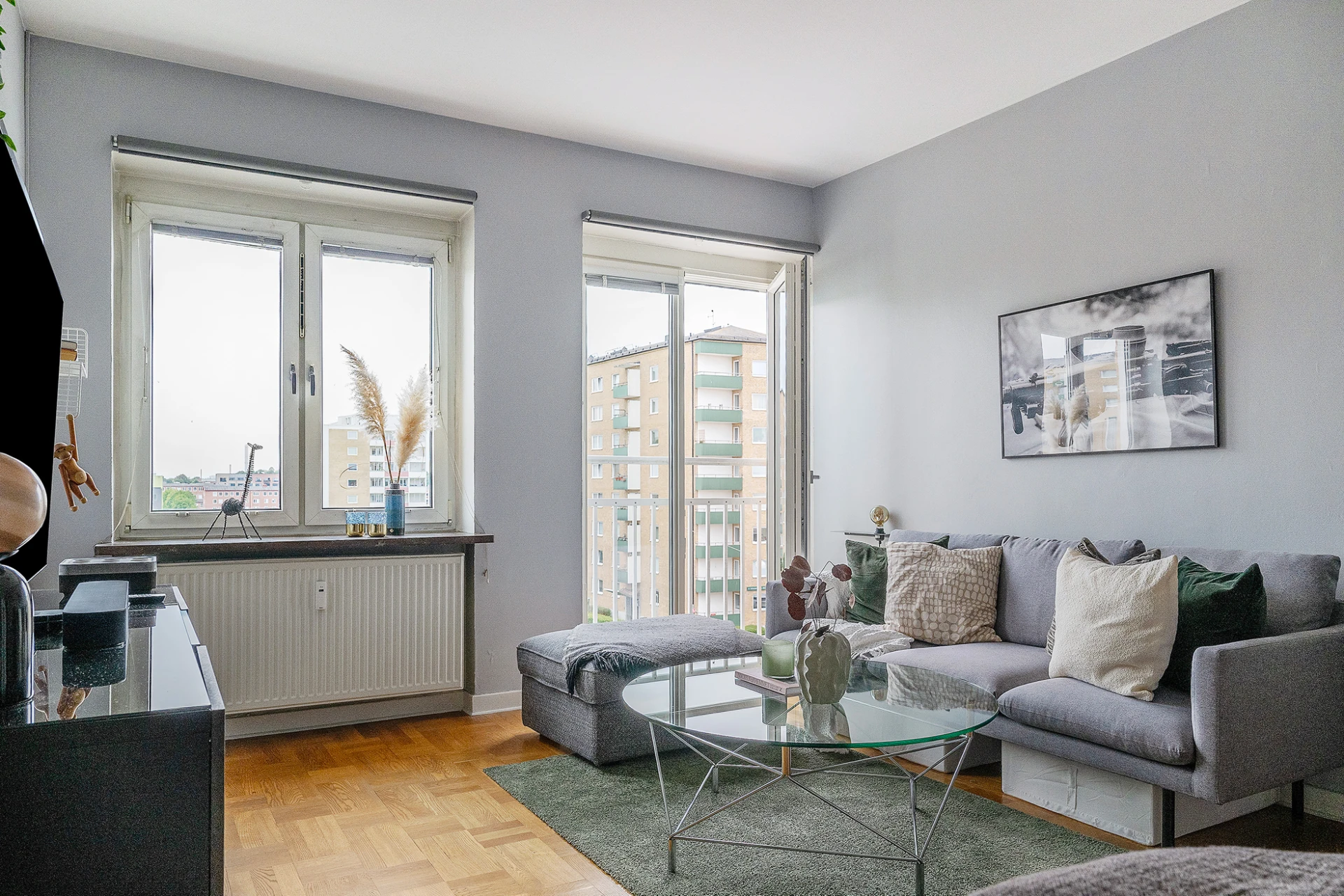 Lägenheten ligger i ett lugnt område med grönskande stråk precis runt hörnet. Här bor du med gångavstånd till goda tåg- och bussförbindelser som snabbt tar dig in till stadens puls. Dessutom finns matbutiker, service och annat du behöver för en smidig vardag bara ett stenkast bort.