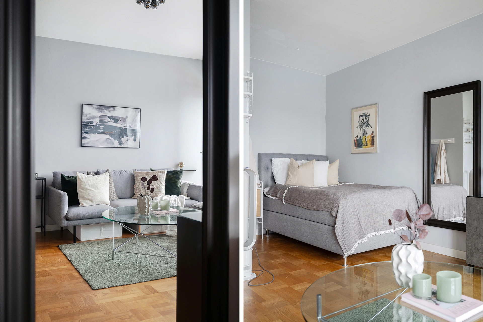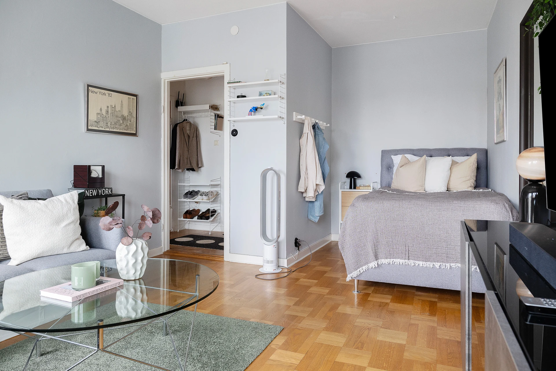 Här har du chansen att förvärva en yteffektiv bostad med en genomtänkt planlösning, perfekt för dig som söker ett första boende eller en smidig övernattningslägenhet. Det rymliga rummet är lätt att möblera med både säng och soffgrupp – den avskilda sovdelen ger dig möjlighet till en lugn och privat sovplats, utan att kompromissa med vardagsrummet.