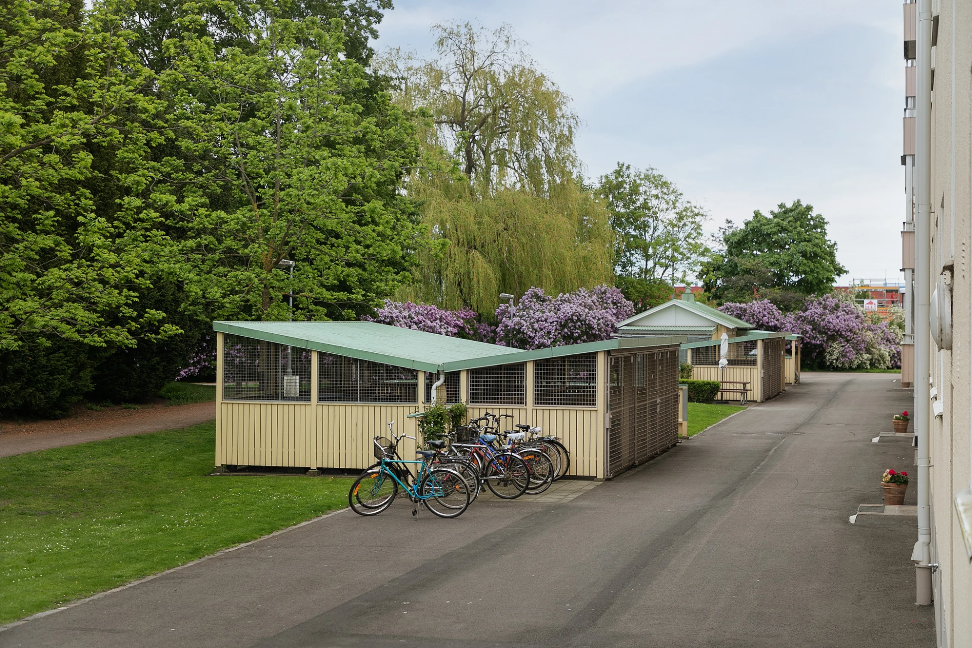 Det finns låsbara cykelhus och parkeringsplatser till MC att hyra av föreningen för 10 kr/mån samt 25 kr/mån.