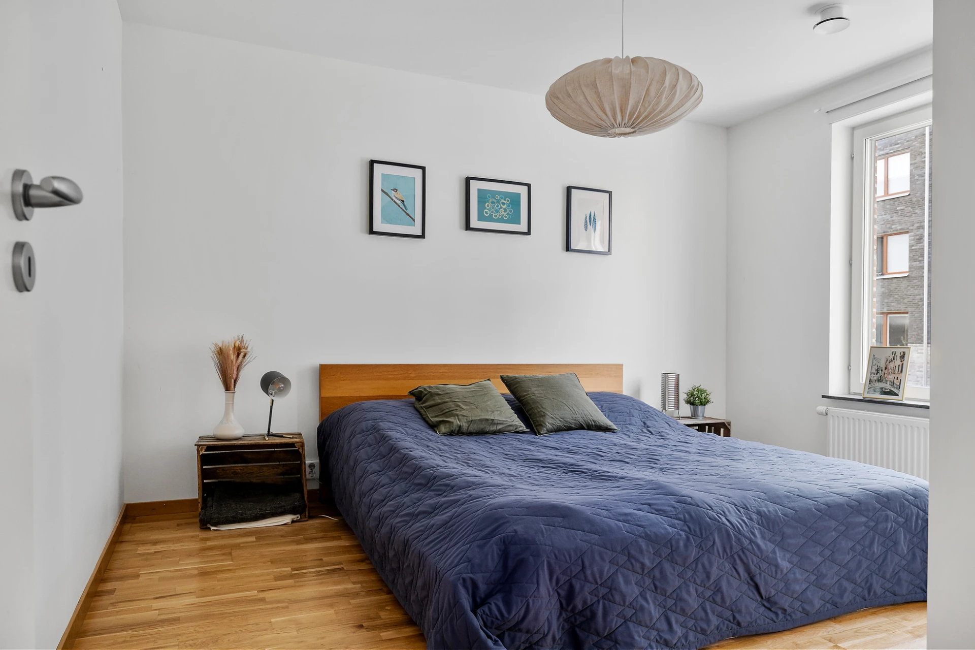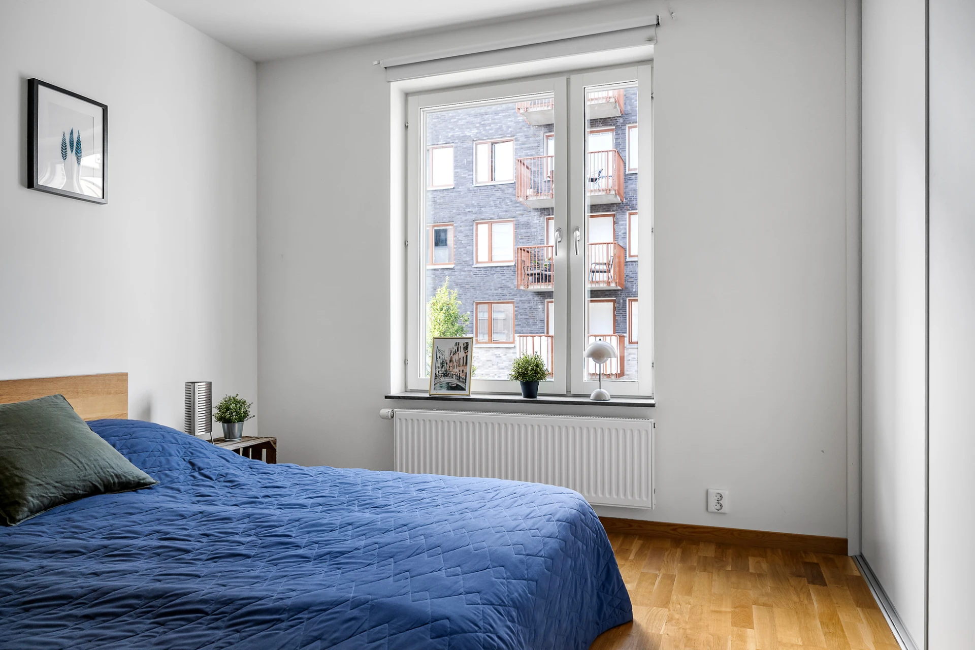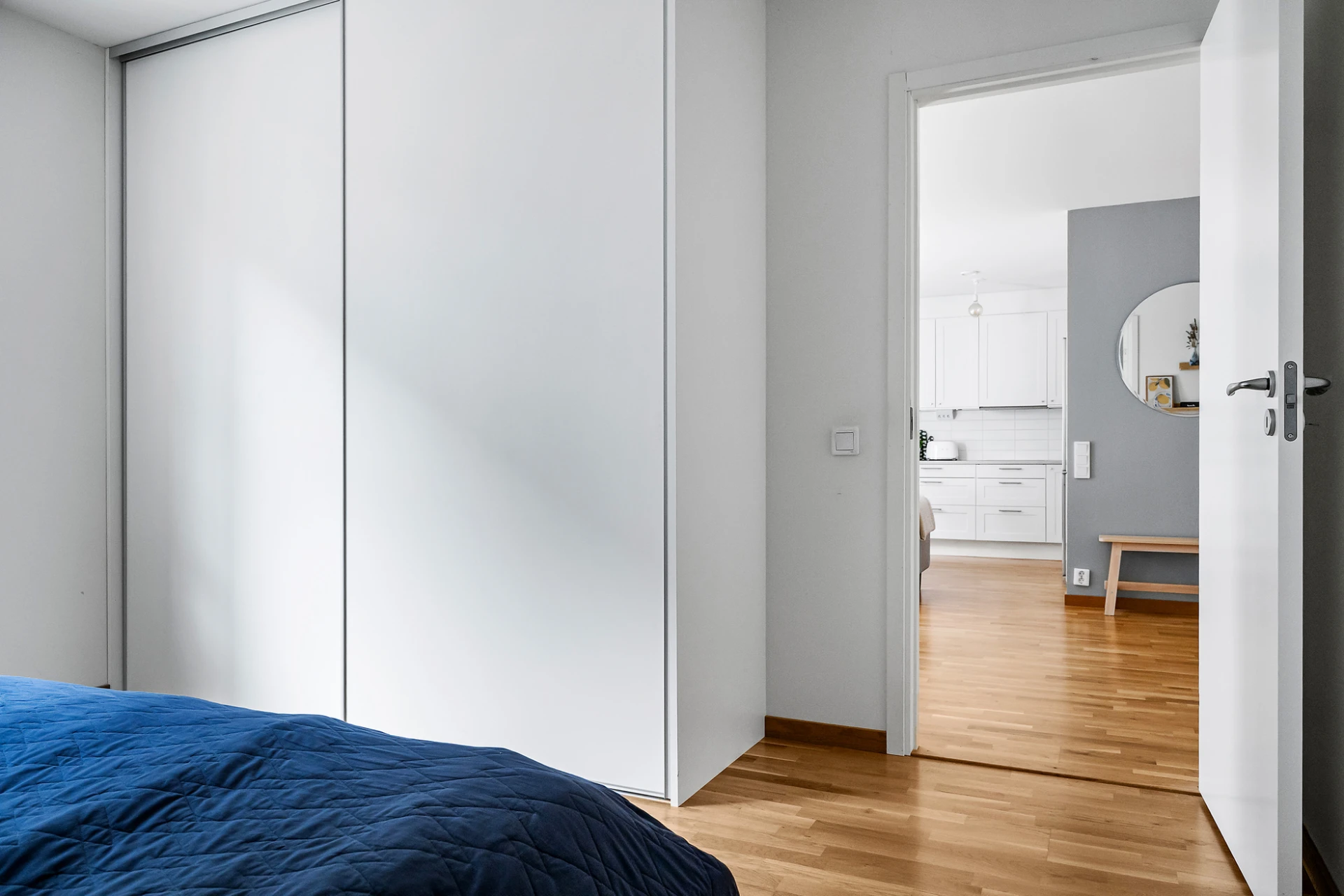 Sovrummet är rogivande och rymligt med plats för dubbelsäng, stor garderob med skjutdörrar erbjuder gott om förvaring.