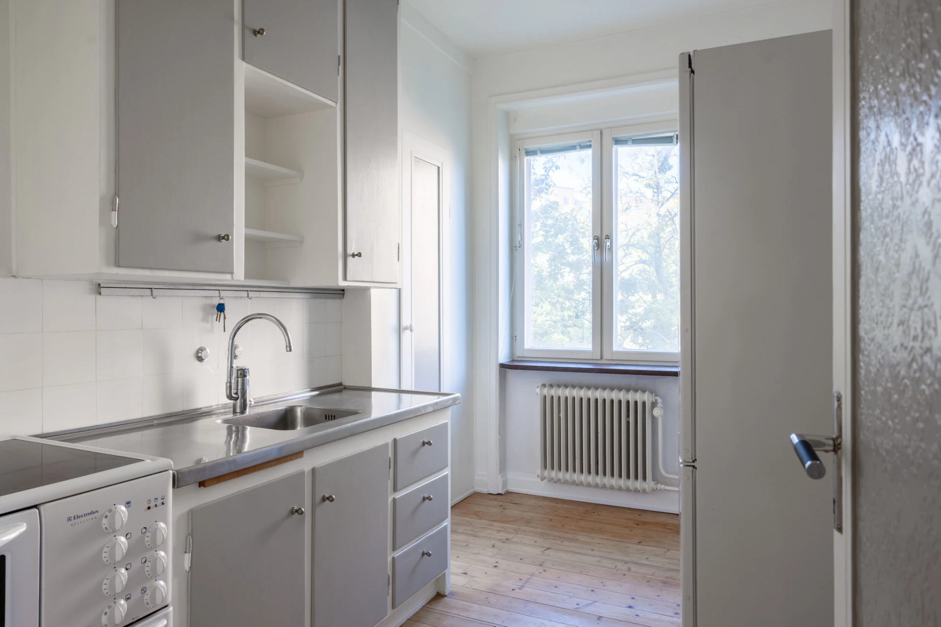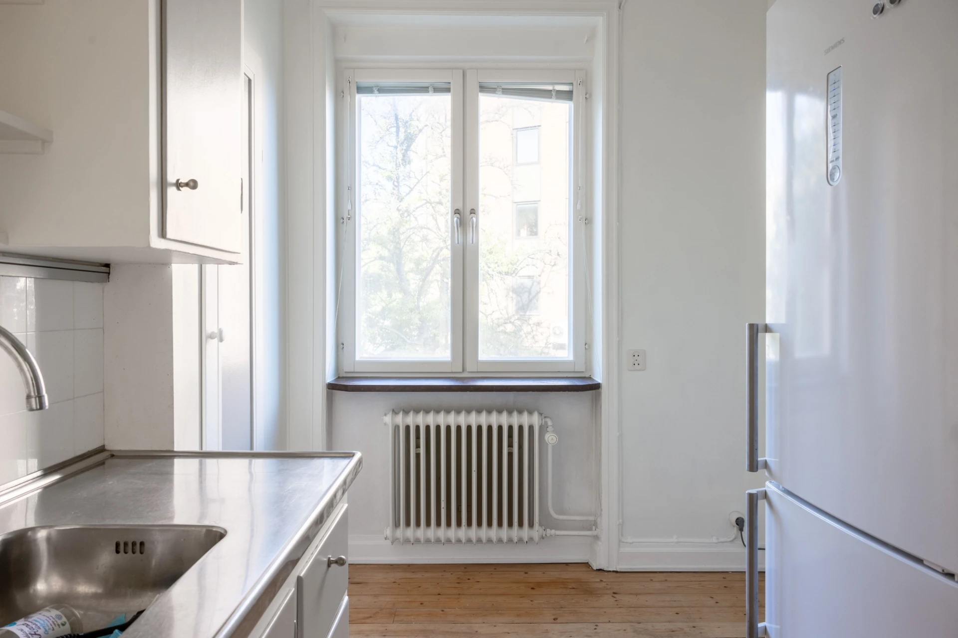 På attraktivt läge kan vi nu stolt presentera denna eleganta 1930-talsbostad med fina tidstypiska attribut som smakfullt fräschats upp genom åren. Stilrena interiörval samspelar vackert med brädgolv, takrosetter och generös takhöjd. Vidare erbjuds en kvadratsmart planlösning med rymlig köksmiljö, vardagsrum med plats för soffgrupp och matbord samt praktisk halva som fungerar perfekt som sovalkov. Lägg därtill sober WC och helkaklat med dusch samt goda förvaringsmöjligheter i platsbyggd garderob. I föreningen finns tillgång till en lummig innergård med uteplats och grill där soliga dagar gärna avnjuts med vänner. Här bor vi nära Värnhemstorgets härliga myller, flertalet trevliga caféer, restauranger, matbutiker, bussknutpunkt och grönskande parker. Missa inte chansen att förvärva denna söta drömbostad!