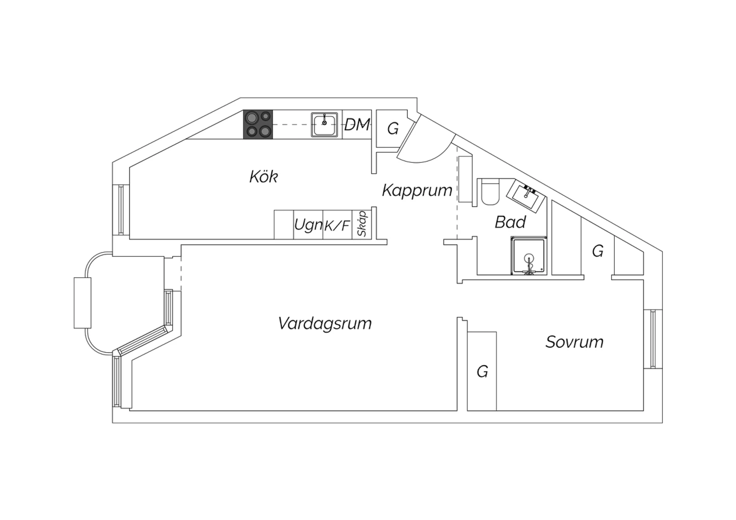 Storlek: 2 rum, 58 kvm boarea