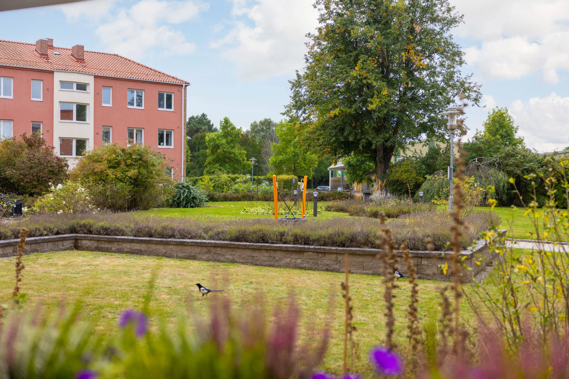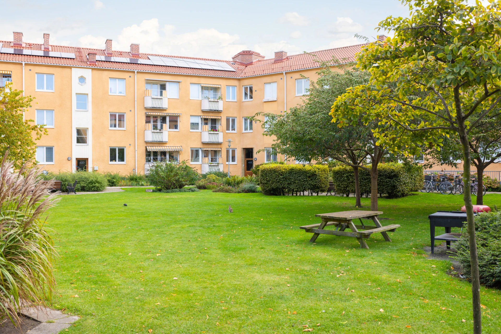 I föreningen finns trevliga och välskötta gårdar med gräsytor, växtlighet, lekplatser, sandlådor, utemöbler och grillar.