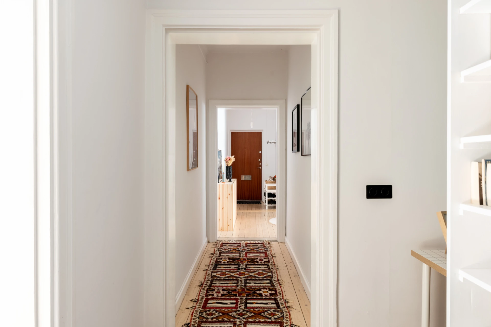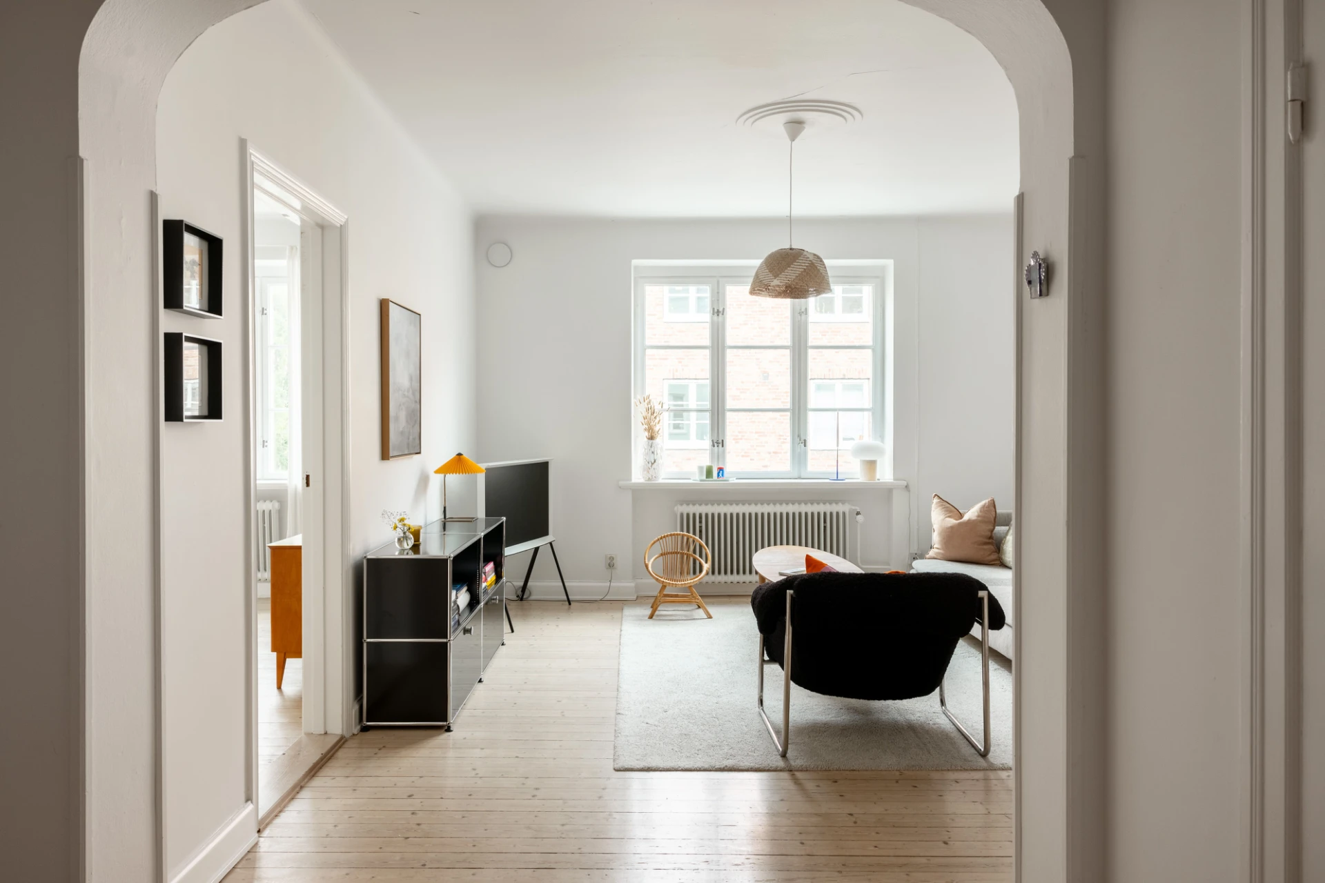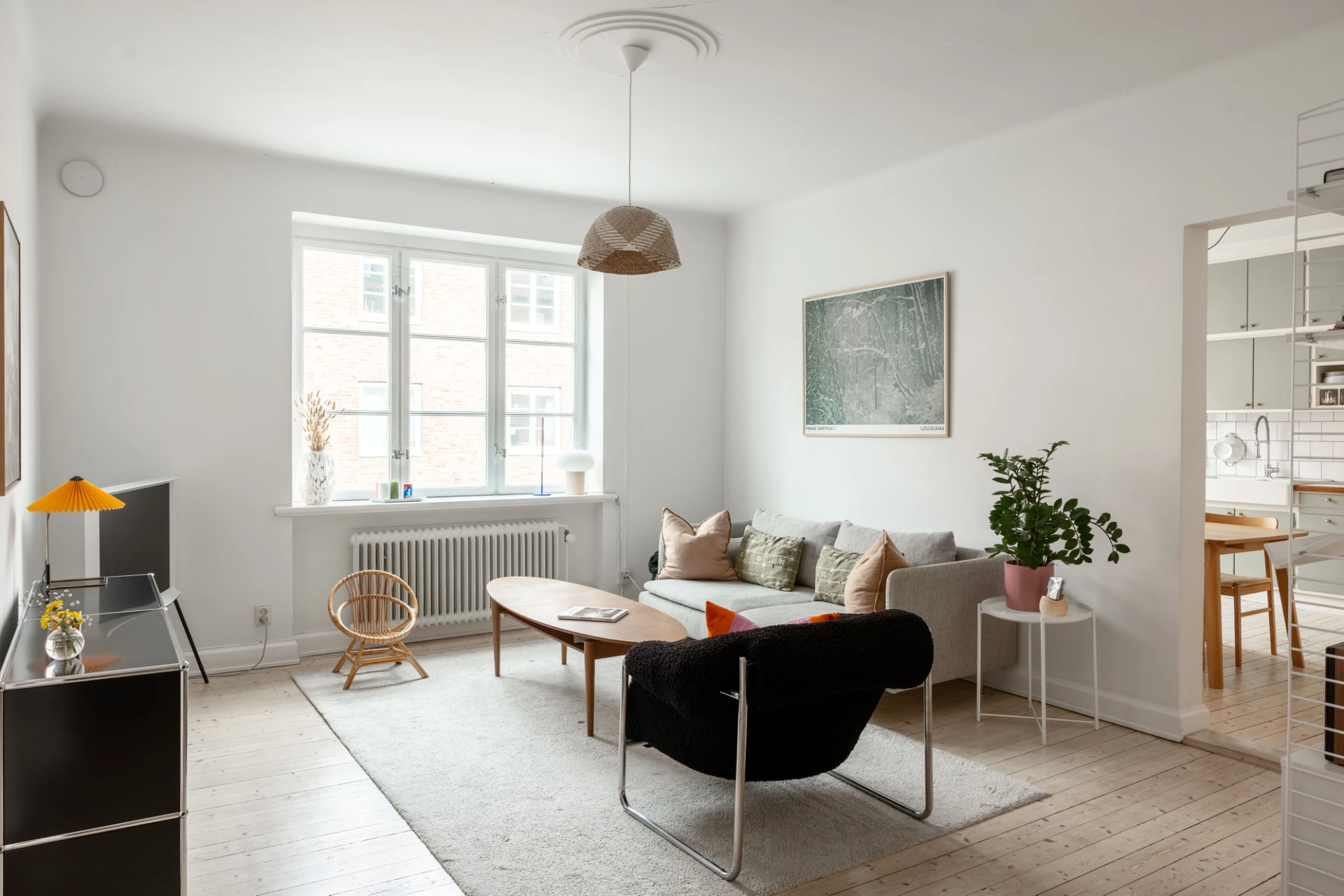 Den genomgående planlösningen är ytterst välplanerad med ett socialt vardagsrum, charmigt kök och två rofyllda sovrum. Lägg därtill goda förvaringsmöjligheter, praktisk halva som blir ett perfekt hemmakontor - och inte att förglömma - ett helkaklat badrum i stilren design som kompletterar bostadens helhet.