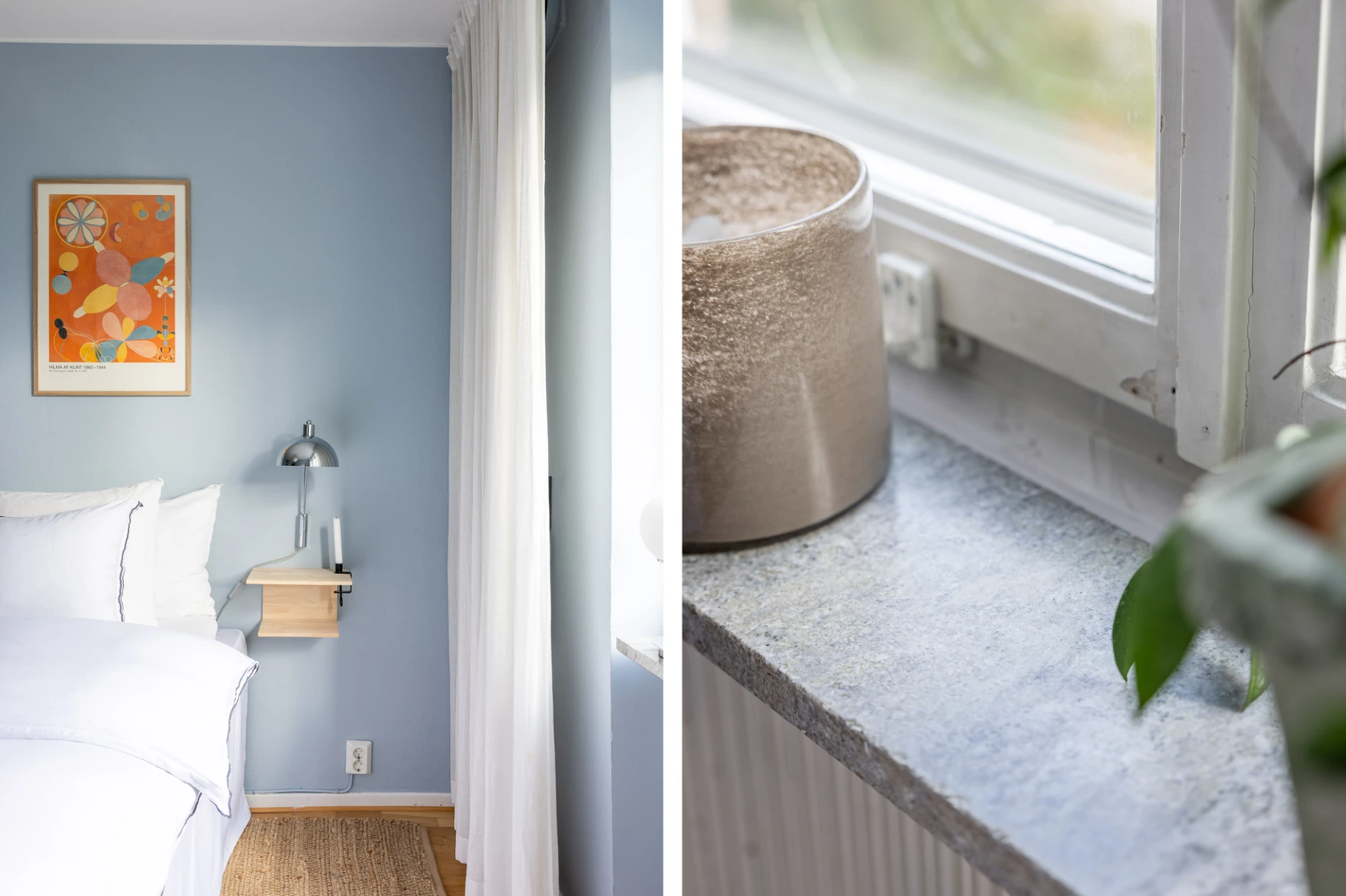 2024 Målades sovrummet om. 2025 Installerades nya badrumsmöbler.