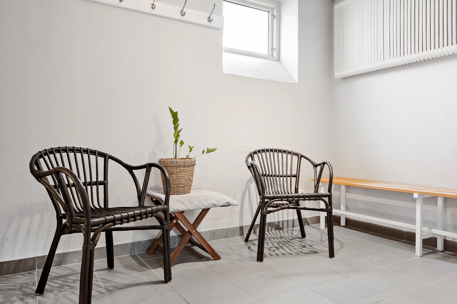 Föreningens gemensamma tvättstugor är belägna i källaren och utrustade med vardera 2 tvättmaskiner, 1 torktumlare, 2 torkskåp och torkrum.