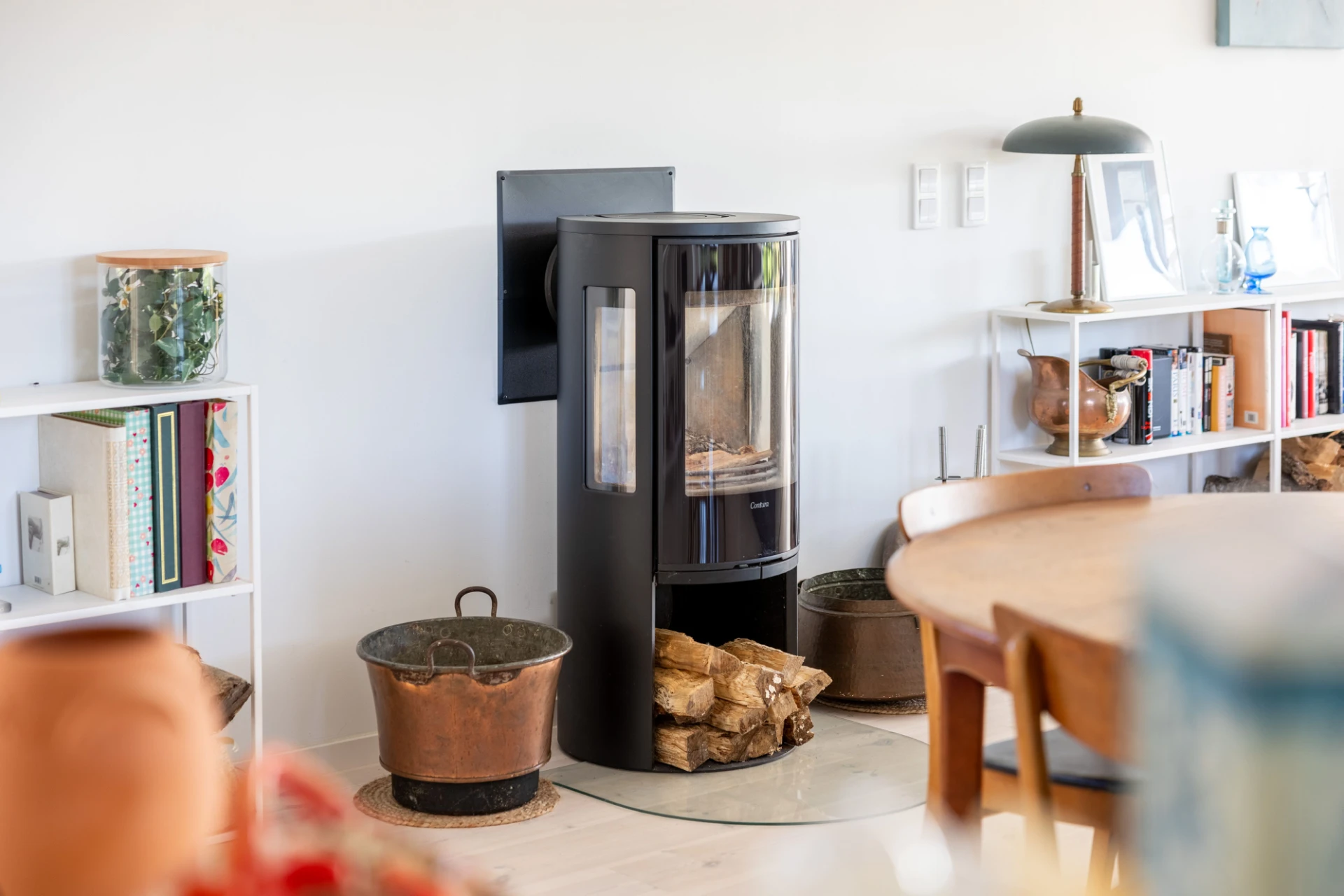 Uppvärmning: Kamin, luft/luftvärmepump och el