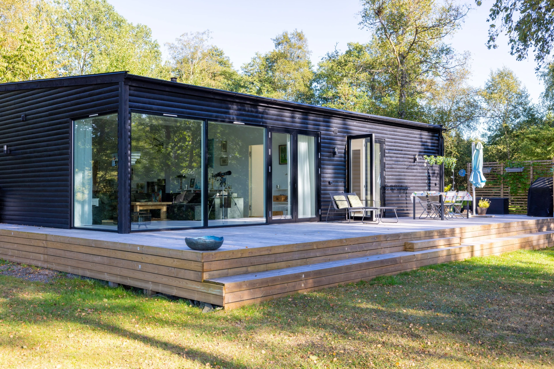 Här möter vi en arkitektritad dröm där de raka linjerna, väl avvägda materialvalen och den planerade fönstersättningen ger huset en harmonisk känsla där naturen alltid är närvarande. Här kan vi öppna upp och låta den friska luften strömma in, medan trädgården och ett generöst trädäck blir en naturlig förlängning av hemmet – perfekt för middagar, avkoppling eller festliga tillställningar. Vidare finner vi sociala sällskapsytor i vardagsrummet som snabbt blir en favoritplats, värmande braskamin, öppen atmosfär mot köket och sovrum med plats för hela familjen. Dessutom praktiska förvaringslösningar, gäst-WC och stilrent badrum med tvättutrustning för bästa komfort.