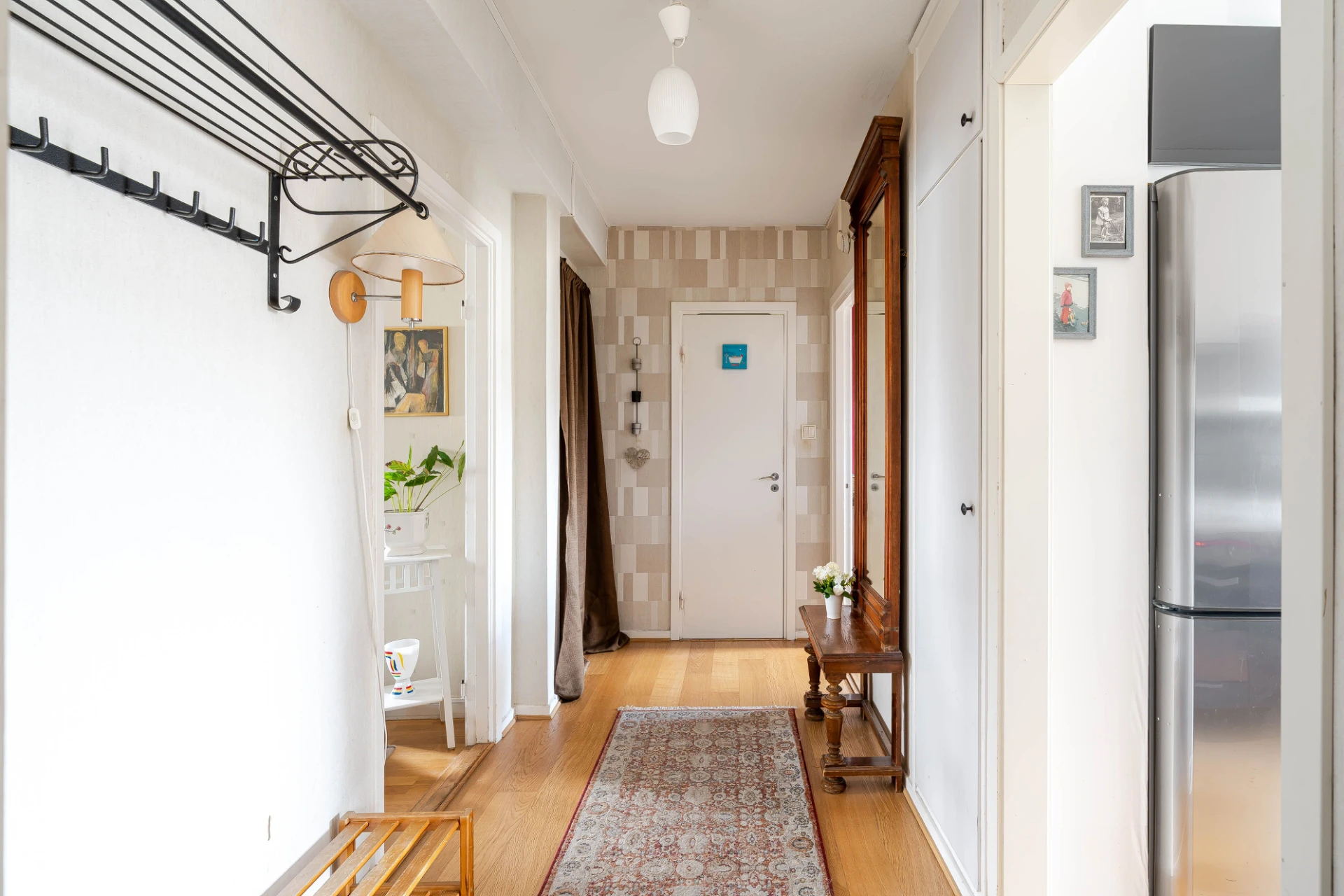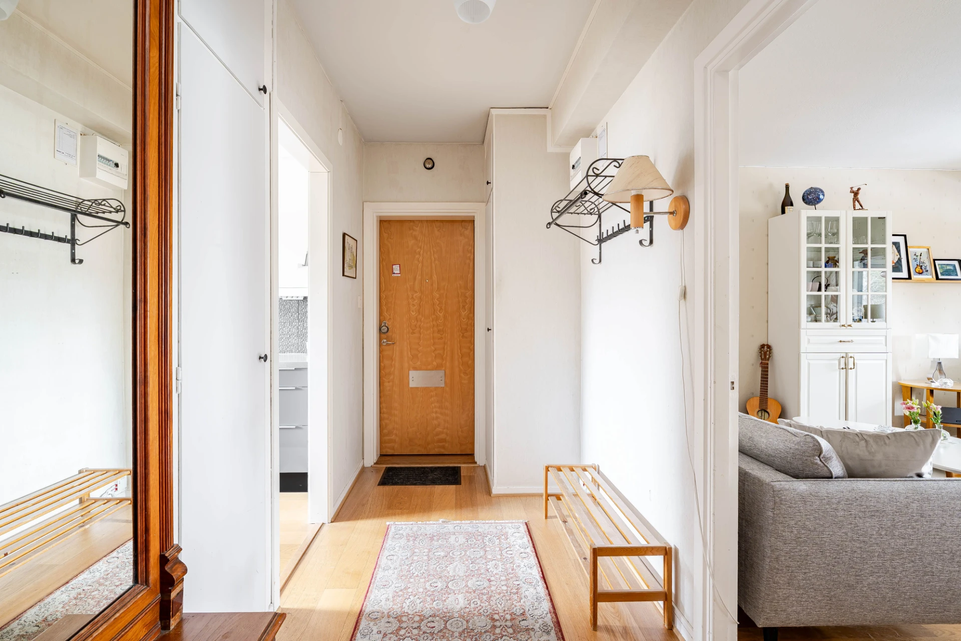 Rymlig hall med en inbyggd garderob samt ett linneskåp för optimal förvaring. Dessutom finns gott om plats både för avhängning och möbler för extra förvaring om så skulle önskas.