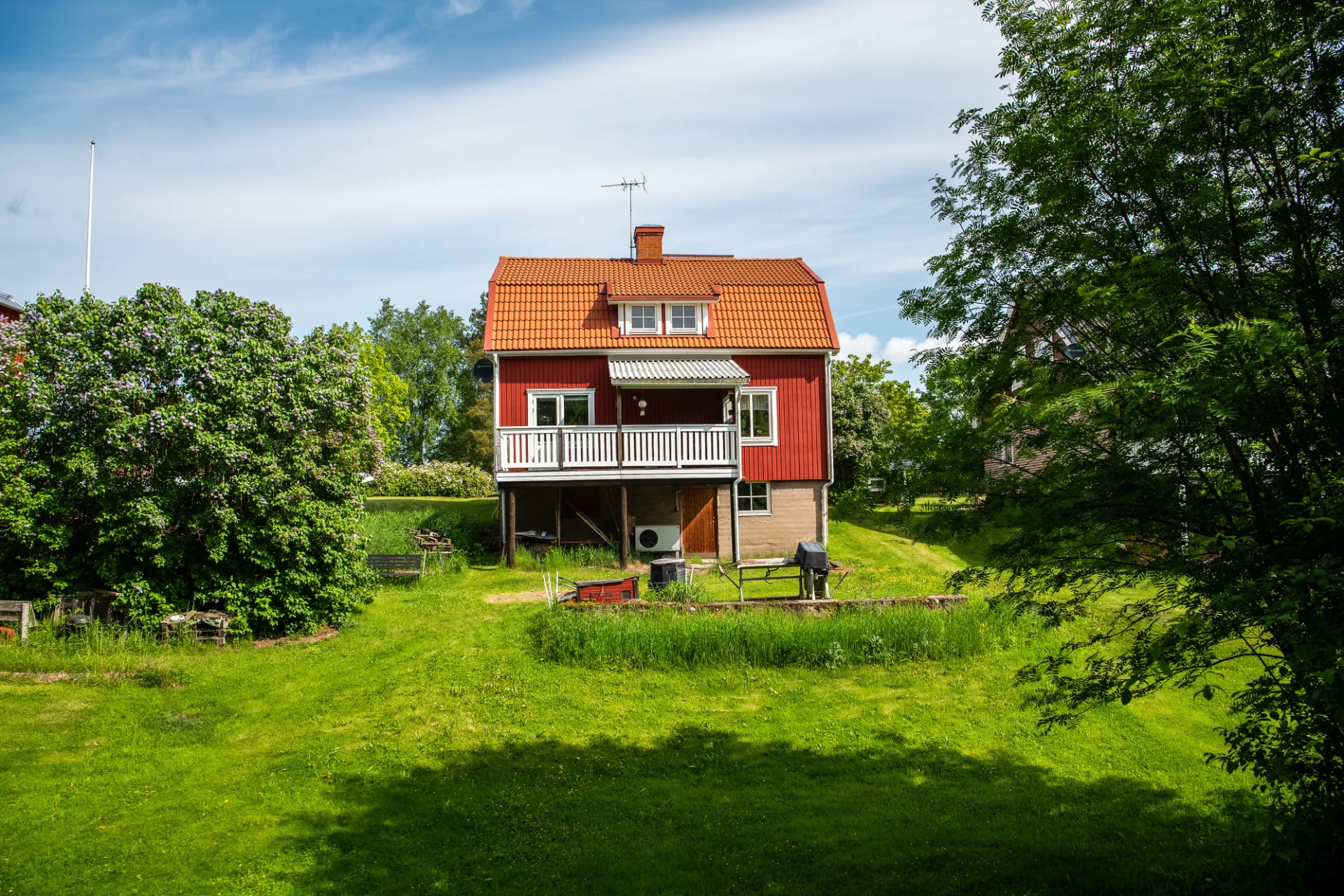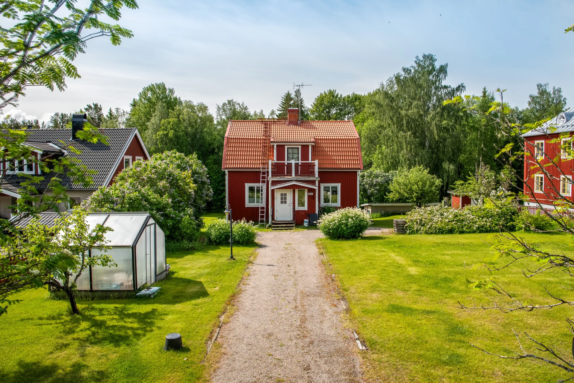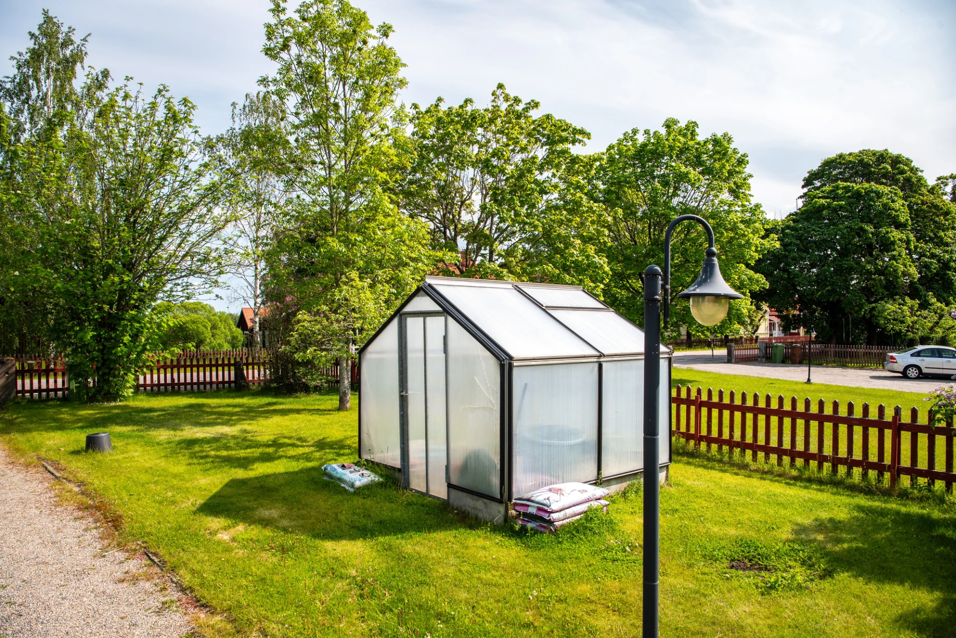Utomhus väntar en stor trädgård om över 2 000 kvm, perfekt för barnfamiljer. Här finns gott om utrymme för lek, trädgårdsprojekt och avkoppling. På framsidan har du en uppfart, gräsmatta och ett mysigt växthus. Den insynsskyddade baksidan gränsar mot skogen och här finns ett praktiskt garage/förråd.
