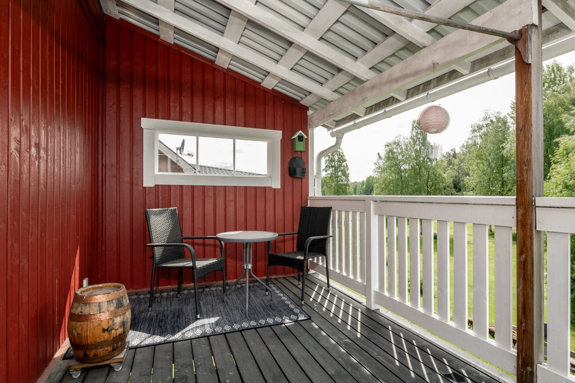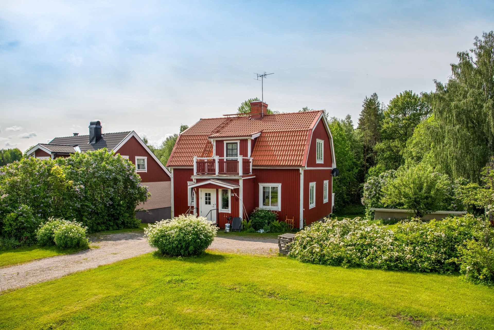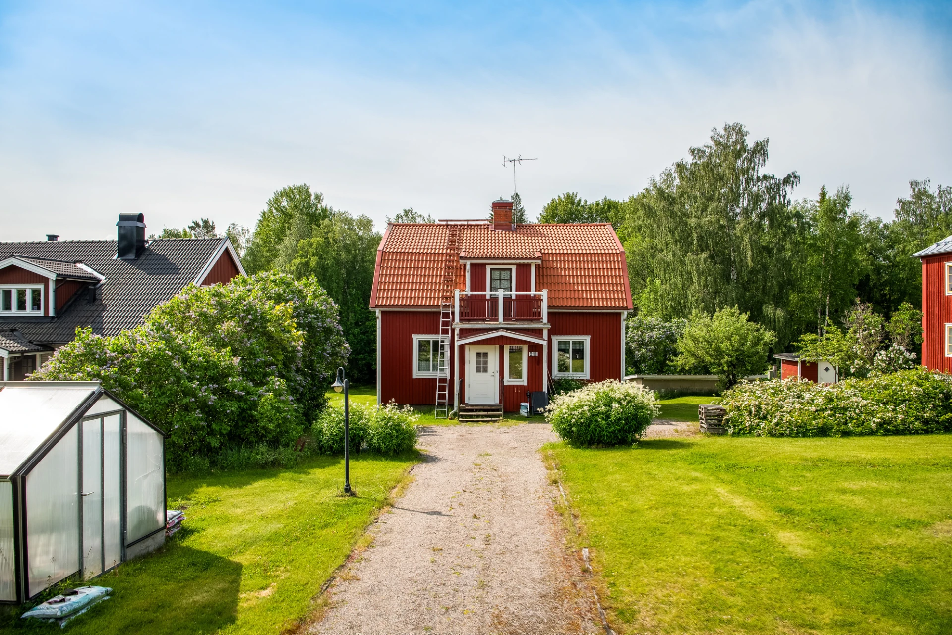 Utomhus väntar en stor trädgård om över 2 000 kvm, perfekt för barnfamiljer. Här finns gott om utrymme för lek, trädgårdsprojekt och avkoppling. På framsidan har du en uppfart, gräsmatta och ett mysigt växthus. Den insynsskyddade baksidan gränsar mot skogen och här finns ett praktiskt garage/förråd.