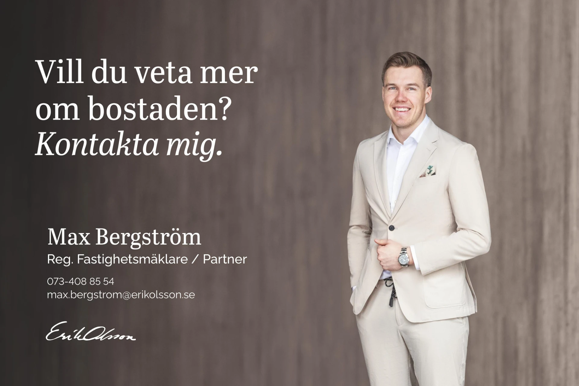 Varmt välkommen att kontakta ansvarig mäklare Max Bergström vid intresse!