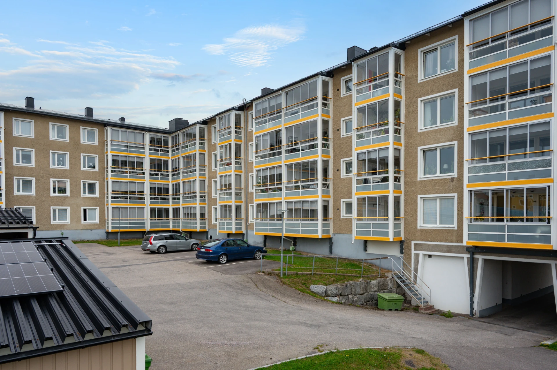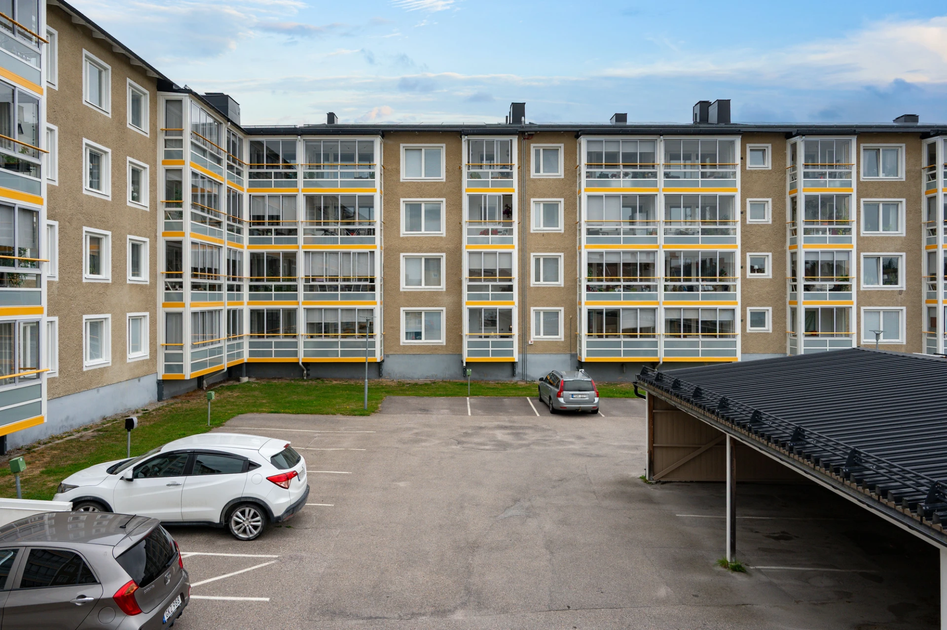 Parkering: På innergården finns carport, parkeringsplatser med motorvärmaruttag och elbilsladdare.