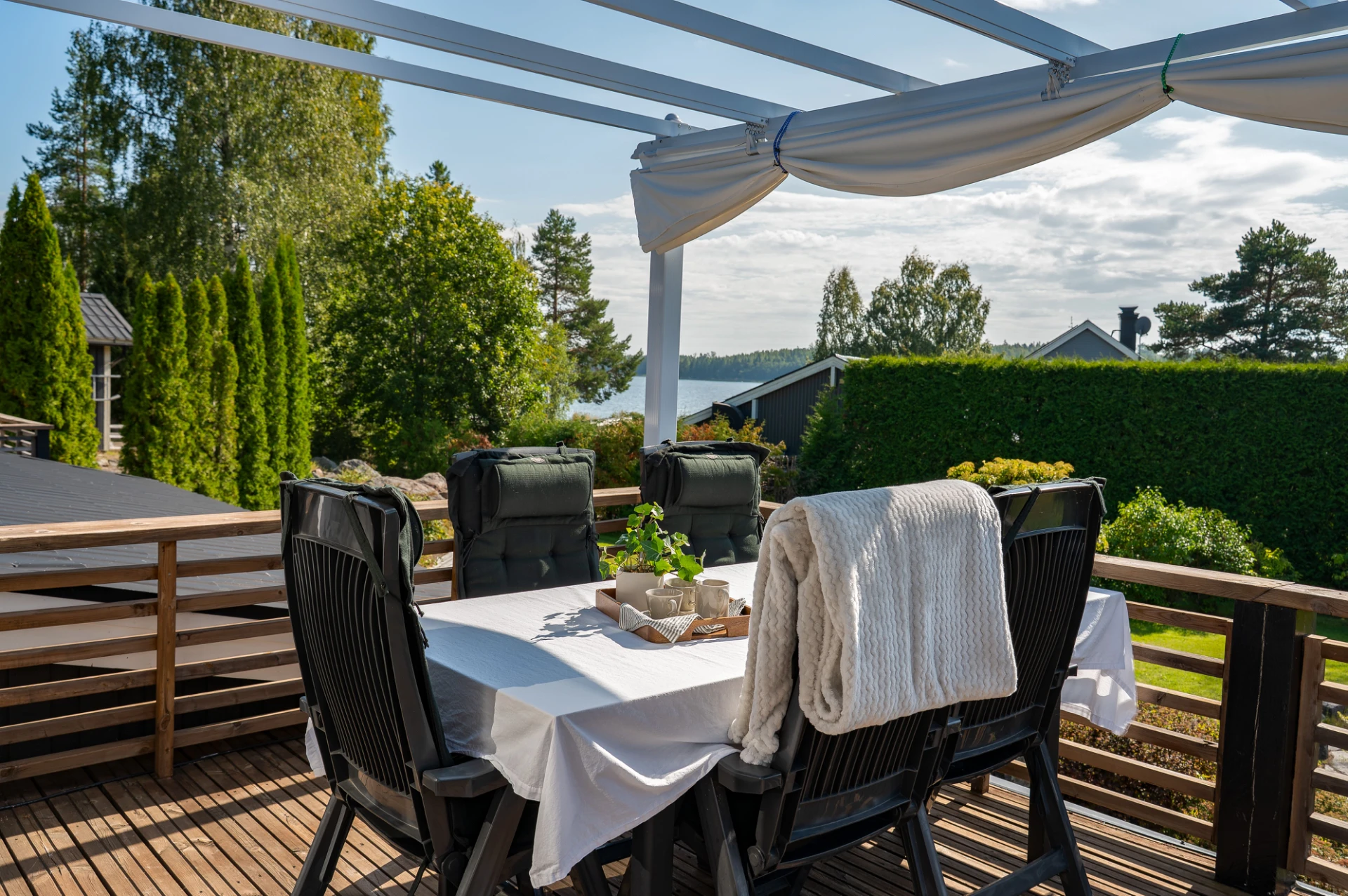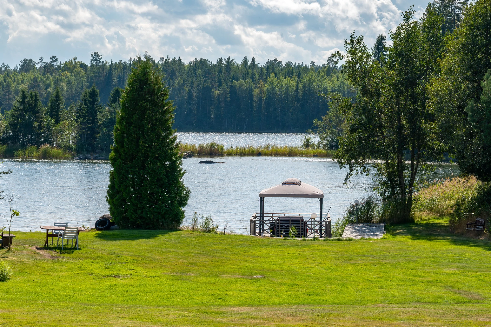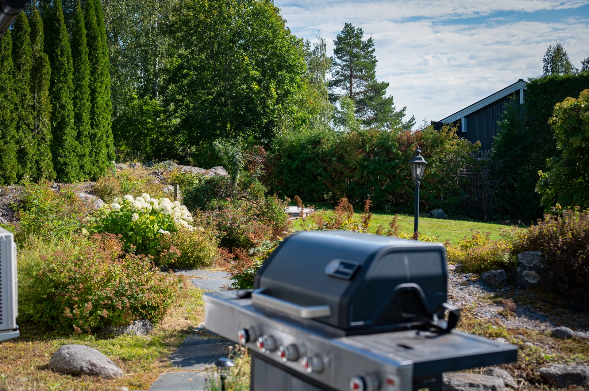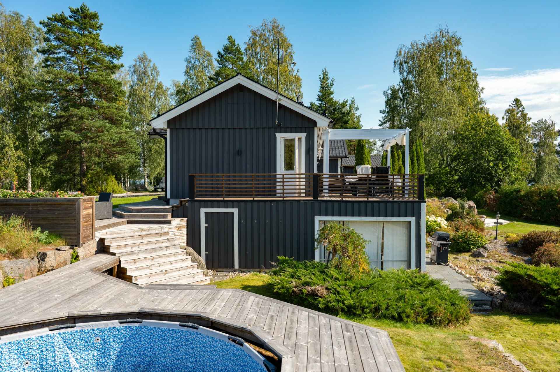 På tomten finns dessutom flera praktiska komplementbyggnader så som garage och förråd.