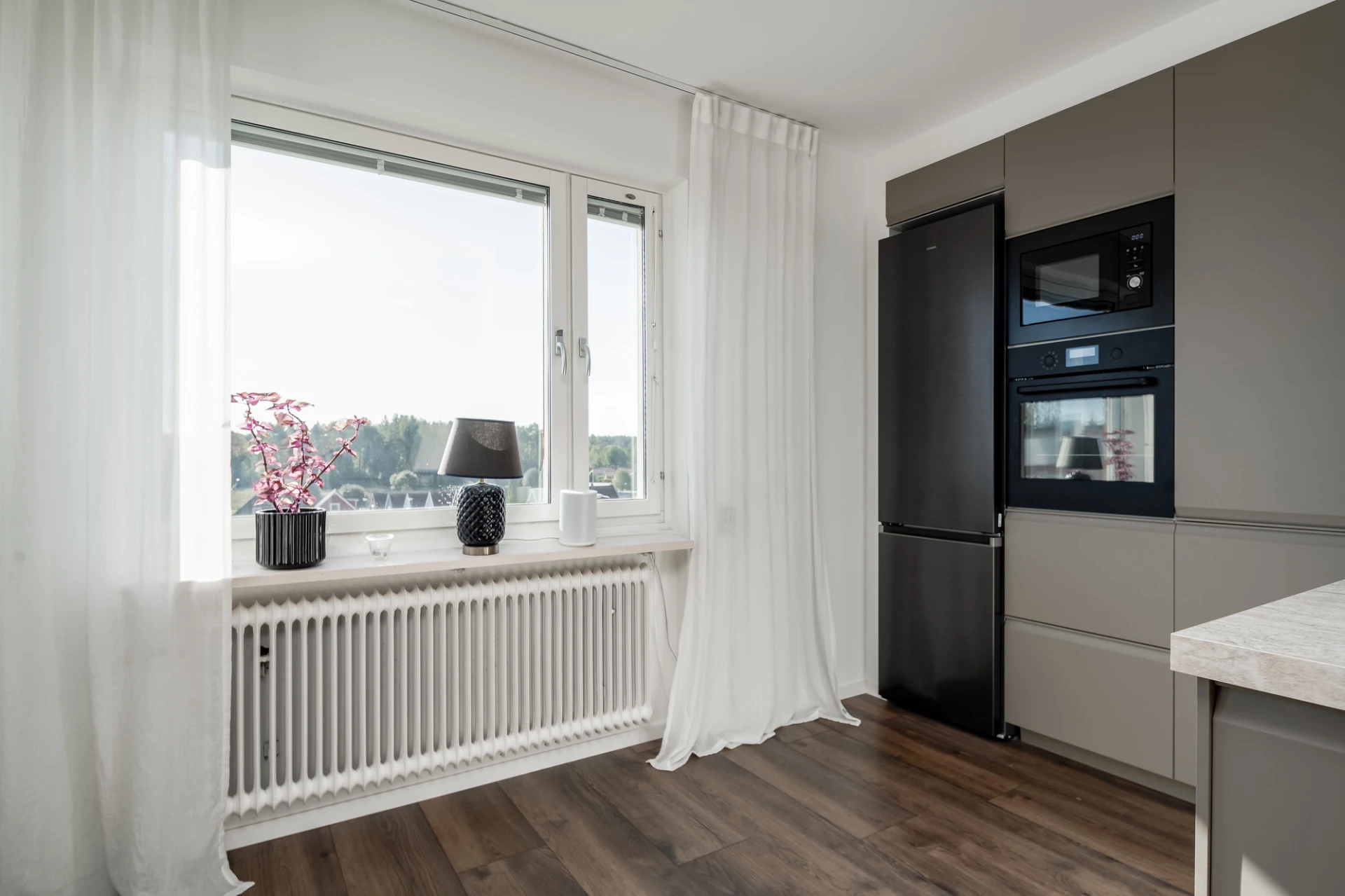 Nu har du möjlighet att förvärva en snyggt renoverad trea på Ringvägen. Här möts du av ett hem med genomtänkta detaljer, enhetligt golv som löper genom hela bostaden och smakfull färgsättning.
