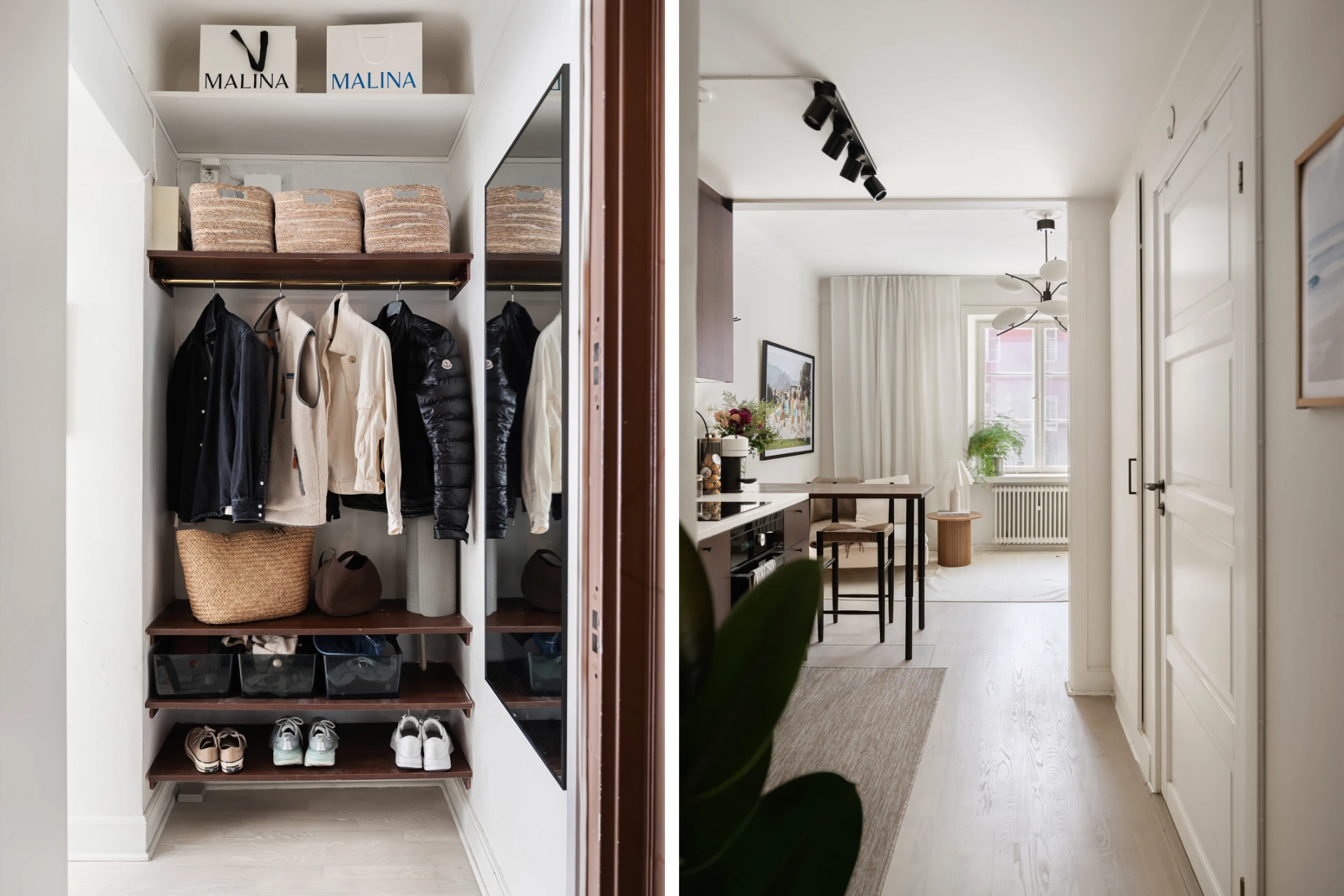 Trevlig hall med goda avhängningsmöjligheter för ytterkläder och skor.