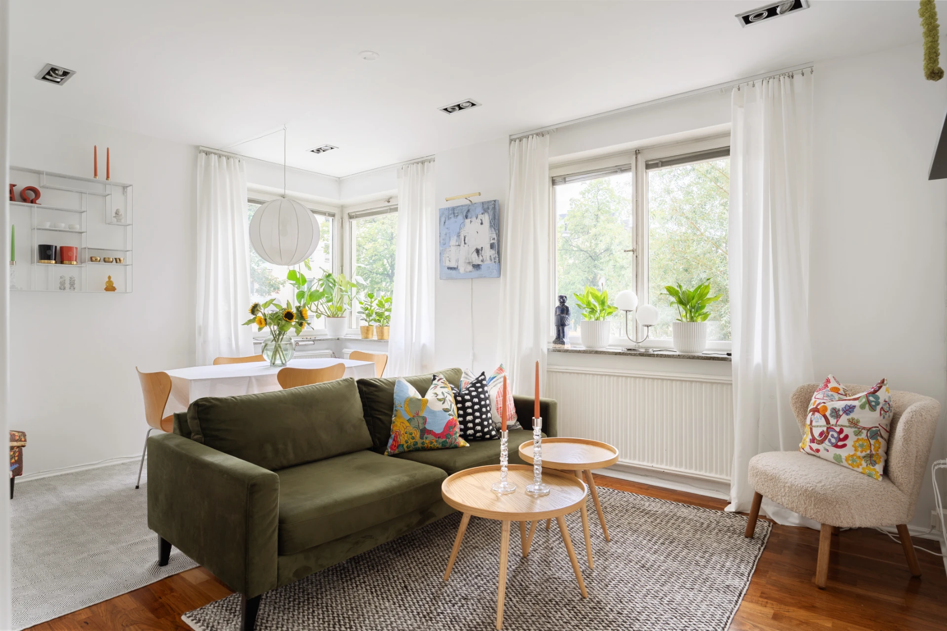 Välkommen till en ljus och välplanerad hörnlägenhet där varje kvadratmeter används på bästa sätt! Här bor du i en klassisk funkispärla med generösa fönster i två väderstreck som ger ett fantastiskt ljusinsläpp. Den smarta planlösningen rymmer allt från separat kök och rymligt sovrum till en luftig sällskapsdel och praktisk klädkammare. Lägg därtill charmiga originaldetaljer och en lyxig vinkyl!