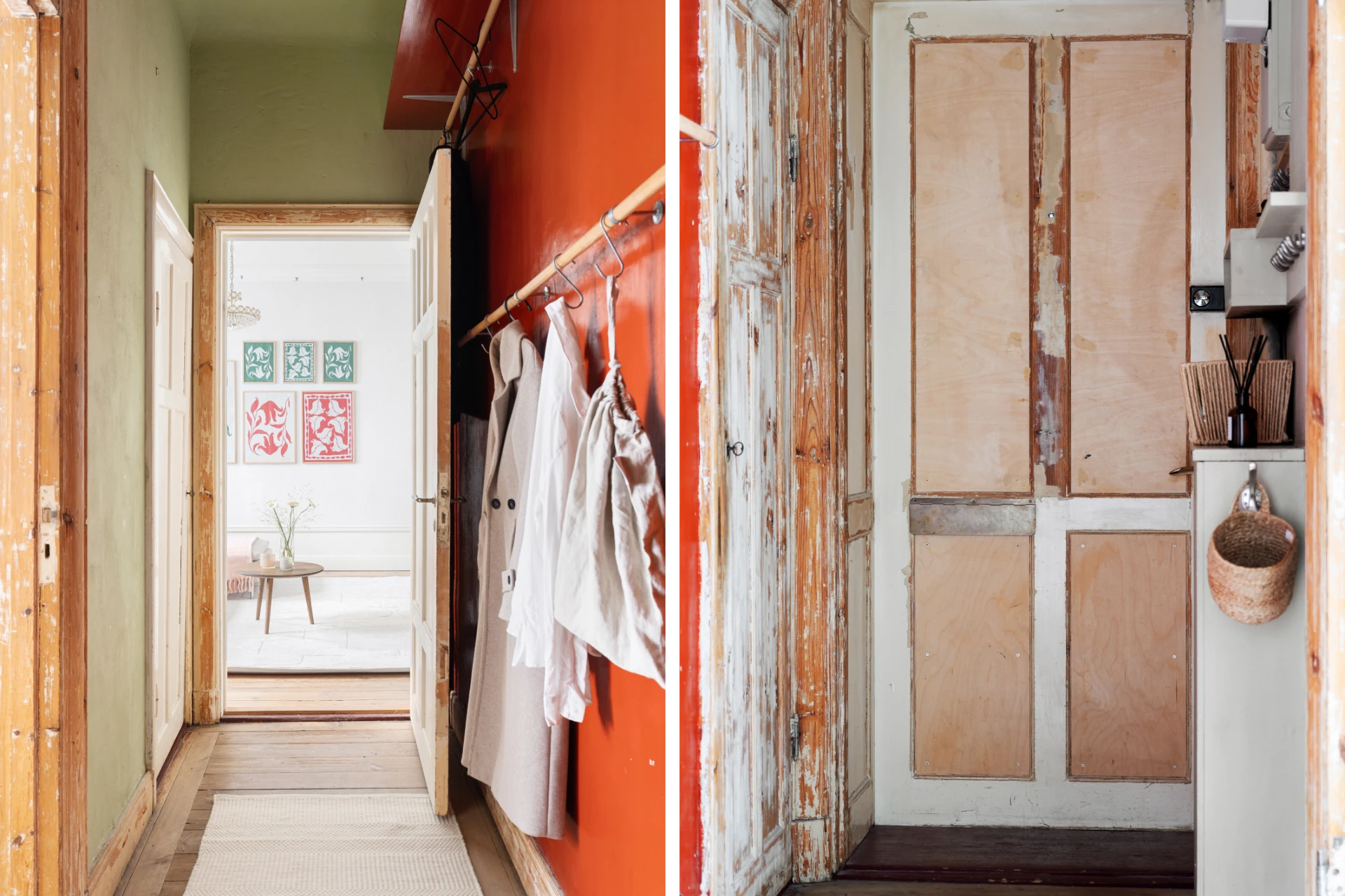 Trevlig och inbjudande hall med goda avhängningsmöjligheter för ytterkläder och skor.