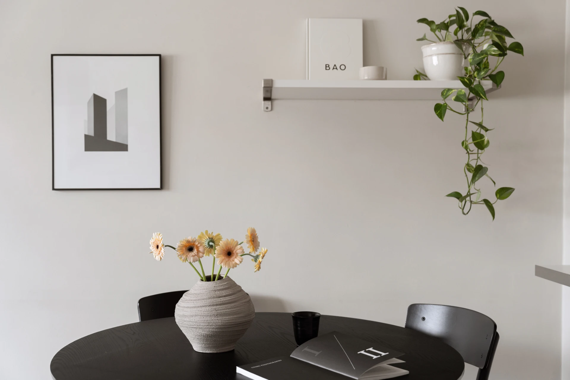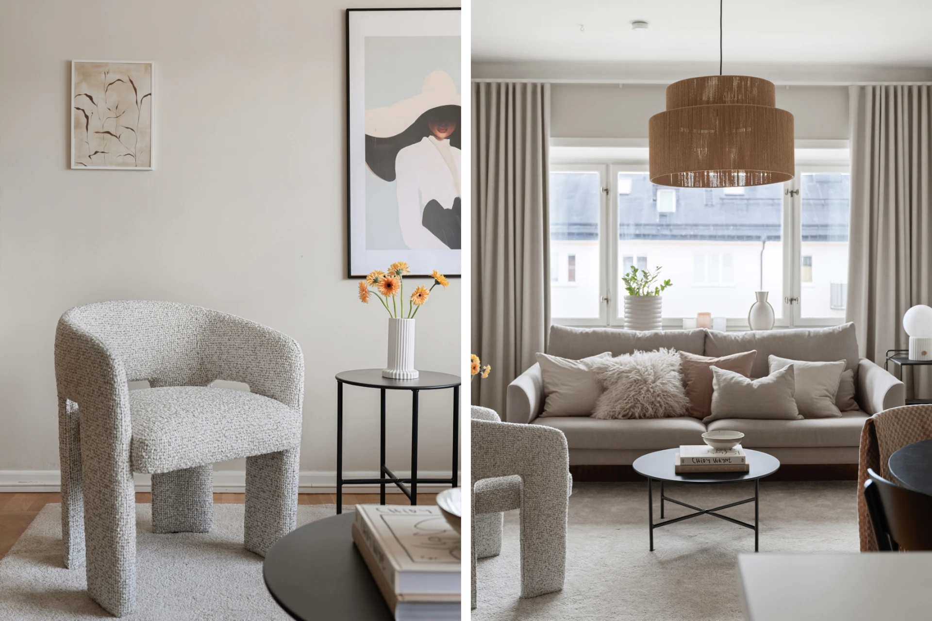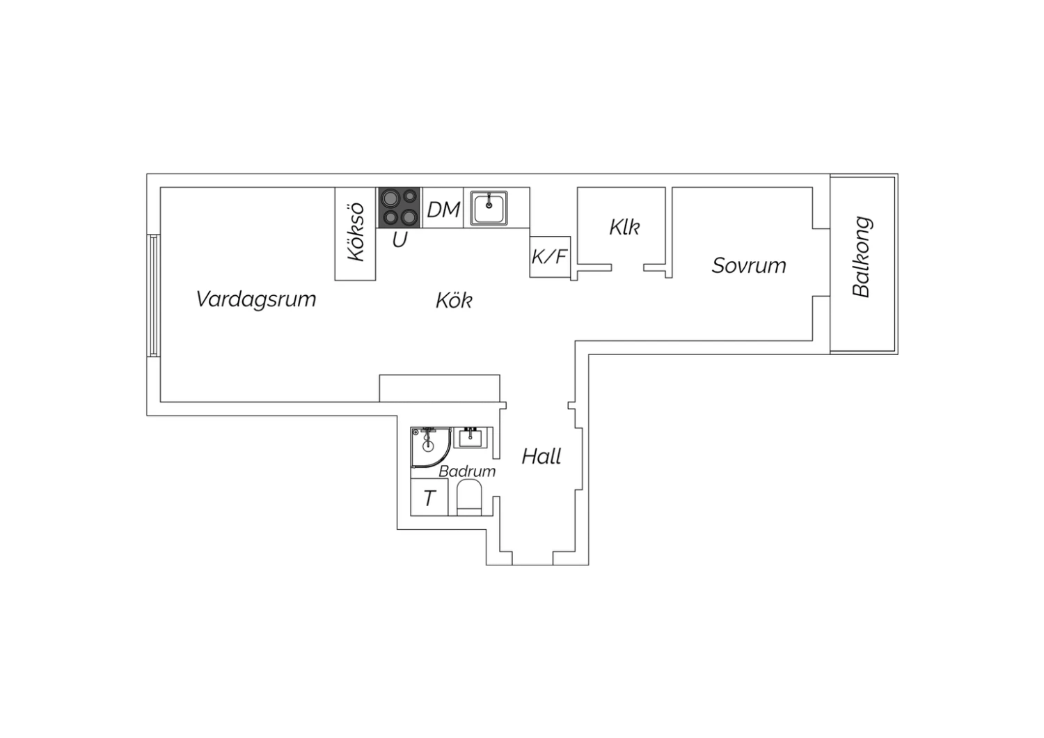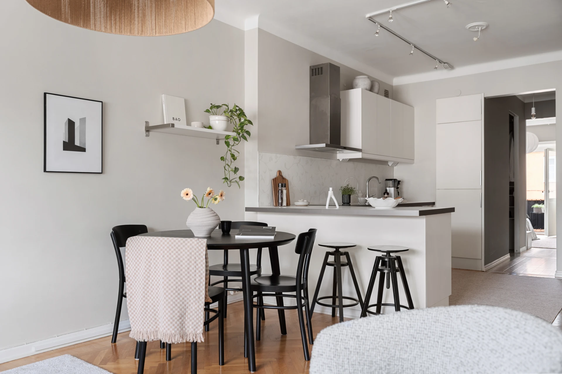 Redan i hallen möts du av ett inbjudande ljus och en harmonisk atmosfär. De genomgående trägolven och de ljusa väggarna sätter tonen för bostadens stilrena helhet, samtidigt som de generösa avhängningsmöjligheterna skapar både ordning och trivsel. Vidare in öppnar det eleganta köket upp sig – en plats där funktion och estetik möts. De vita fronterna och den ljusa bänkskivan ger en tidlös känsla, medan glaspanelen som stänkskydd adderar en modern touch. Här finns gott om förvaring och utrustning i form av spis, ugn, fläkt, integrerad diskmaskin samt kyl och frys. Köksön blir en naturlig samlingspunkt för både vardag och umgänge, med plats för två sittande. Köket övergår sömlöst i vardagsrummet – ett rum som verkligen bjuder in till samvaro. Det stora fönstret släpper in rikligt med ljus och skapar en varm, inbjudande känsla. Här finns gott om utrymme för både soffa, matsalsbord och TV-möbel, vilket gör rummet perfekt för både avslappnade kvällar och middagar med vänner. Sovrummet är rofyllt och vilsamt med ljusgrå väggar som skapar en behaglig kontrast till trägolven. Här finns plats för säng och personlig inredning, och genom den glasade dörren nås bostadens underbara balkong mot den lugna gården. Intill sovrummet finns dessutom en rymlig klädkammare som ger utmärkta förvaringsmöjligheter. Badrummet är stilrent och genomtänkt med vitt kakel, grått klinkergolv och moderna detaljer. Här finns allt du behöver för vardagens bekvämlighet: WC, handfat med svart kommod, spegelskåp, handdukstork, Kombinerad tvätt och torkmaskin , väggskåp för extra förvaring samt en dusch med infällbara glasväggar.