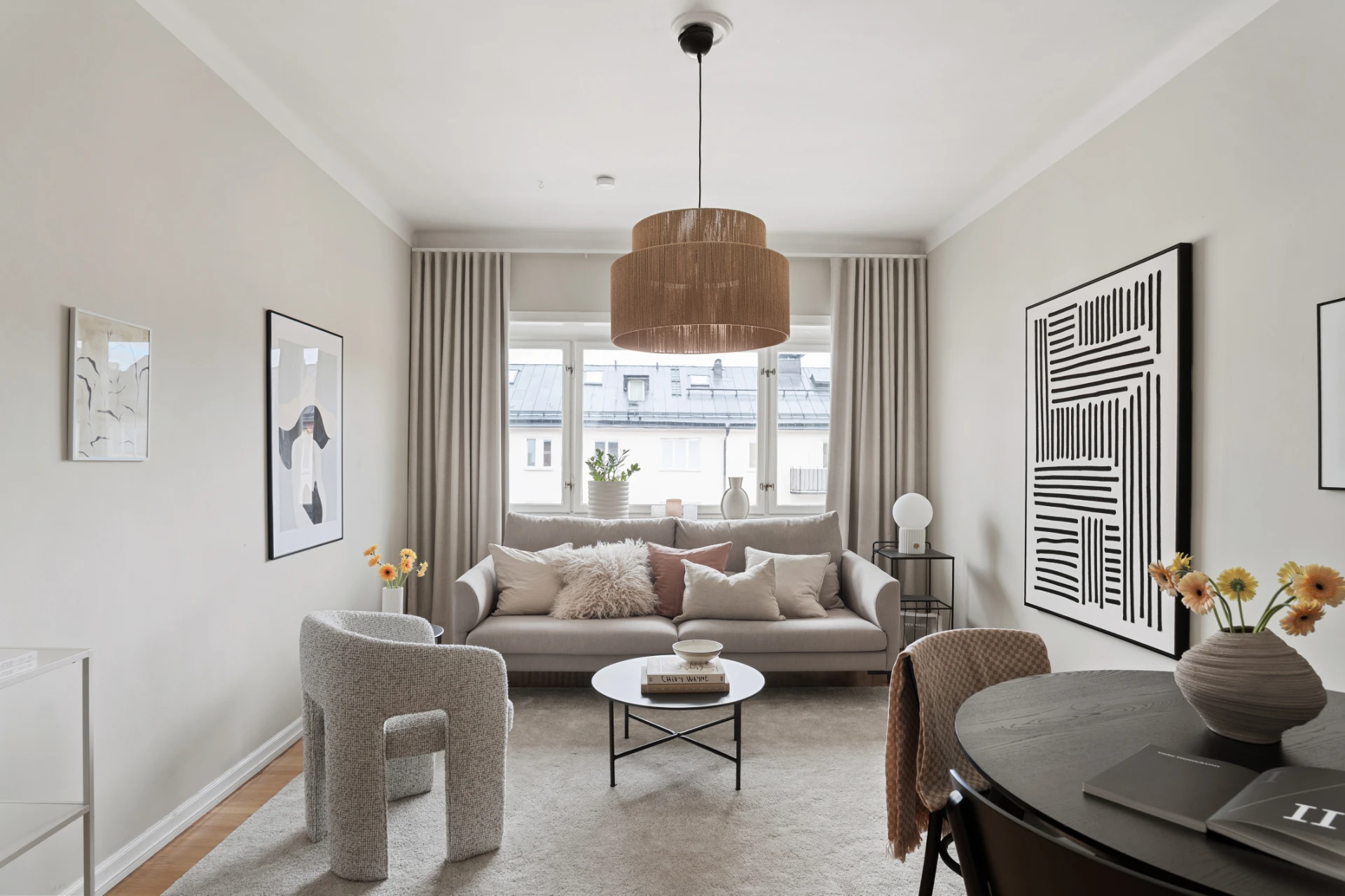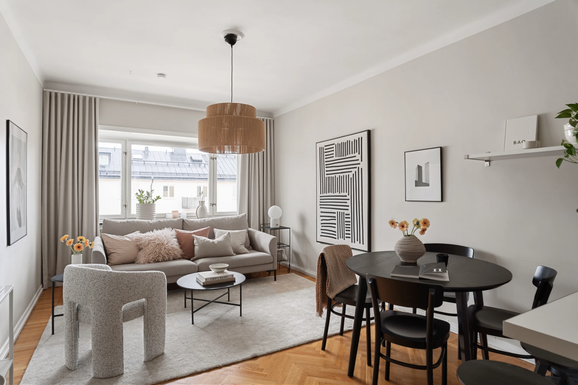 Här bor du i en charmig och genomgående tvåa med fönster åt två väderstreck om 46 kvadratmeter med högt och ljust läge mellan Odenplan och Hagaparken. Bostaden präglas av vackra originaldetaljer från byggåret 1930 såsom fiskbensparkett, generös takhöjd och stora fönster som släpper in ett underbart ljus. Köket är smakfullt och funktionellt, med stilrena materialval och goda arbetsytor. Den öppna och sociala planlösningen bjuder in till umgänge, med en köksö som naturlig samlingspunkt. Från sovrummet når ni även bostadens fantastiska balkong med sydvästläge.