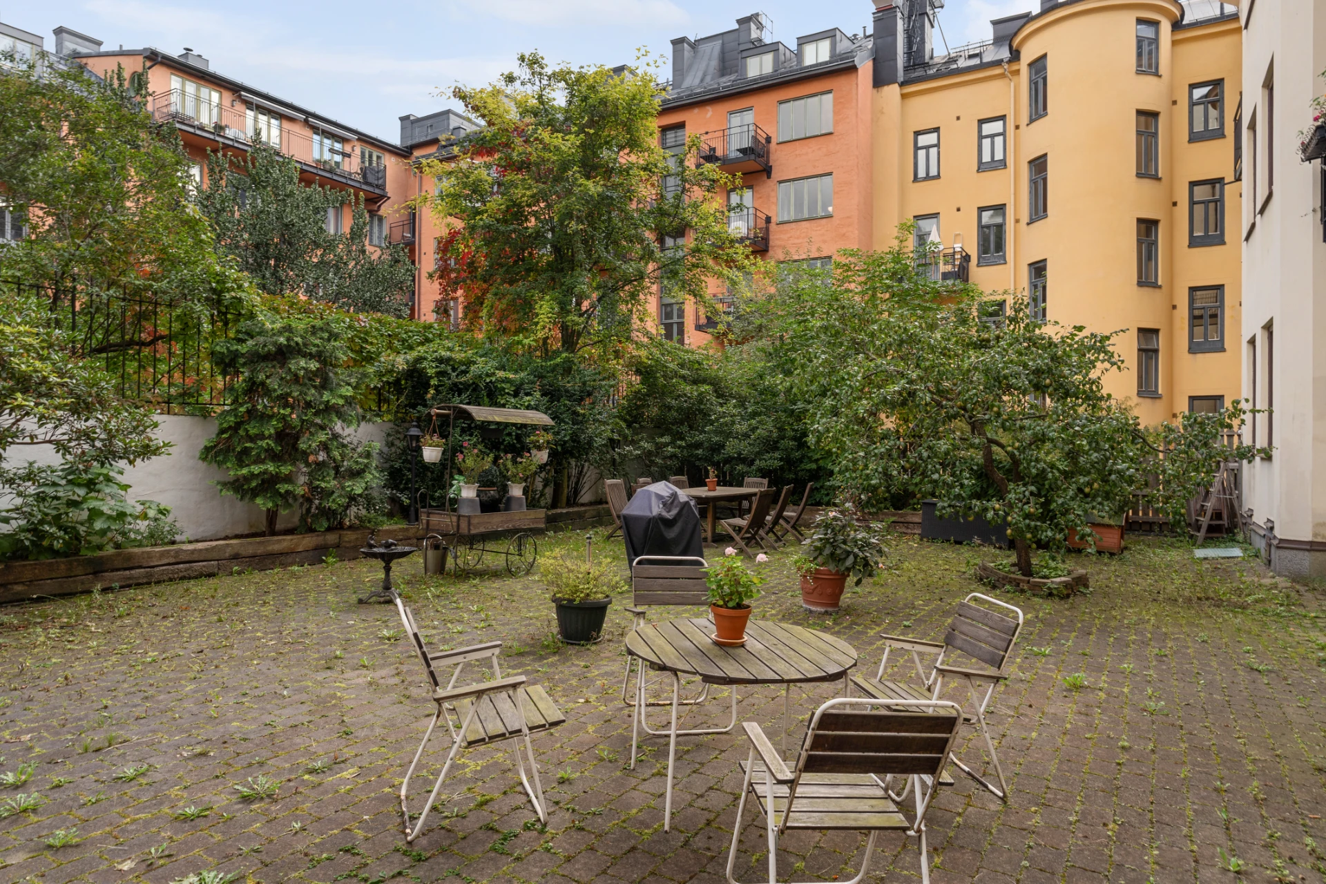 I attraktivt och tyst gårdsläge högt upp i denna stiliga fastighet återfinns denna ljusa sekelskiftespärla med social planlösning och balkong mot den grönskande innergården. Bostaden har väl tilltaget och rofyllt sovrum bakom industriglas samt smakfullt ljust kök som rymmer sittdel och sällskap i social anda. Fina tidstypiska detaljer som välbevarad furuparkett, takrosetter, speglade dörrar, djupa fönsternischer och högt i tak. Inom 5 min promenad finns Balzac, Svartengrens, Meno Male, Mahalo och Pom & Flora. Dessutom erbjuds ett bra utbud av livsmedelsbutiker såsom Icas matmarknad på Birger Jarlsgatan, Ica Baronen och Coop på Odengatan. Om du gillar promenader och natur har du en kort promenad till kungliga Hagaparken. Sammantaget ett ljust och genomgående drömhem i Vasastan/Sibirien!