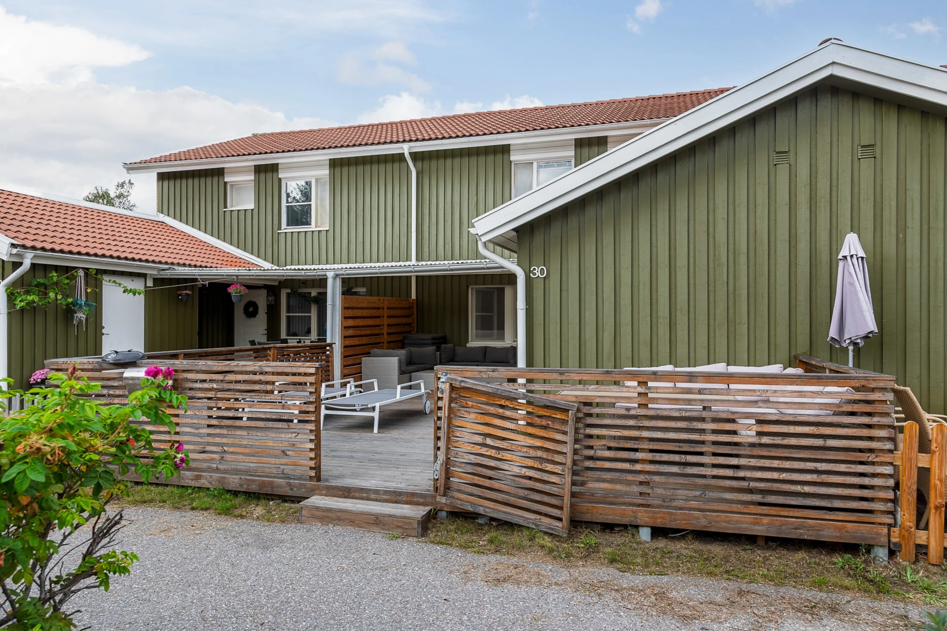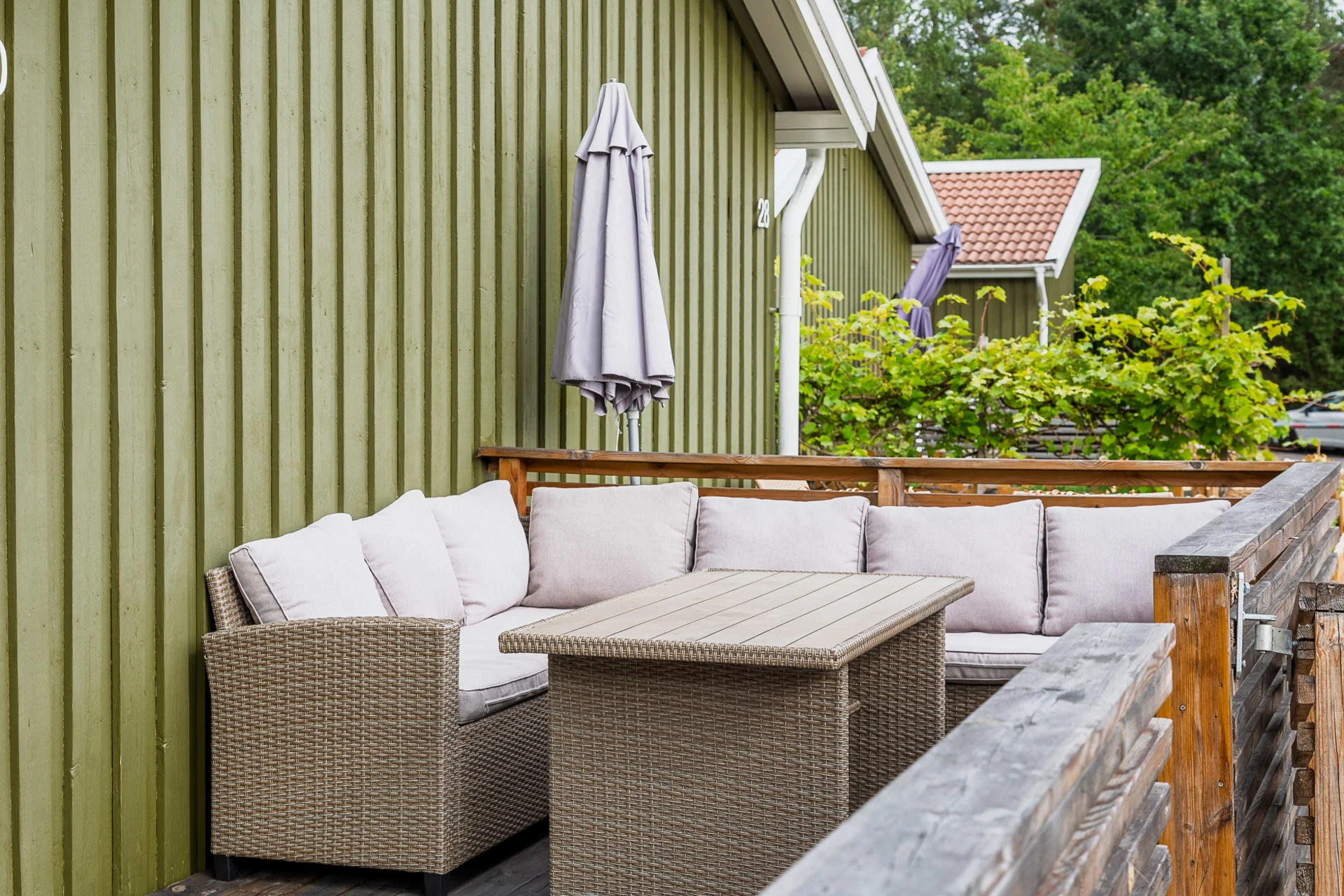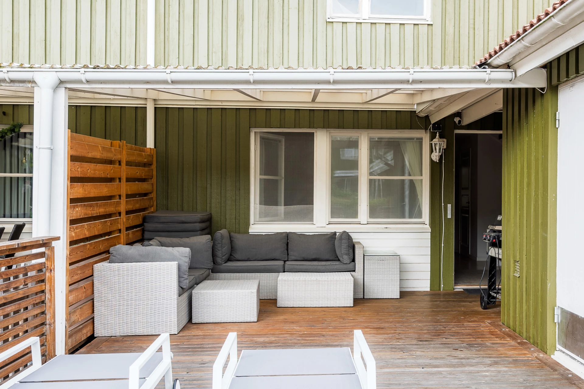 På framsidan finns ett stort och praktiskt förråd som ger gott om plats för cyklar, barnvagn, verktyg eller säsongssaker – perfekt för extra förvaring i vardagen.