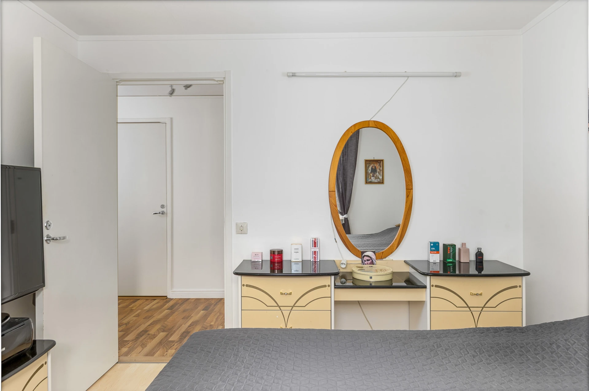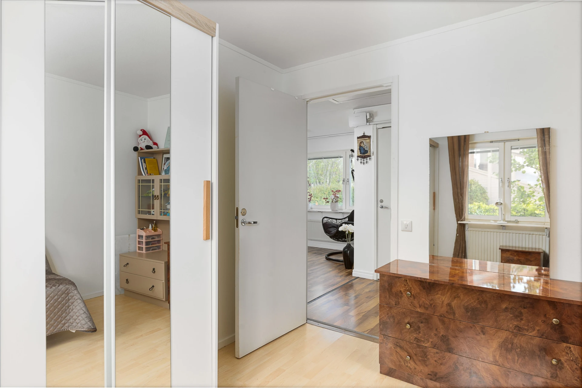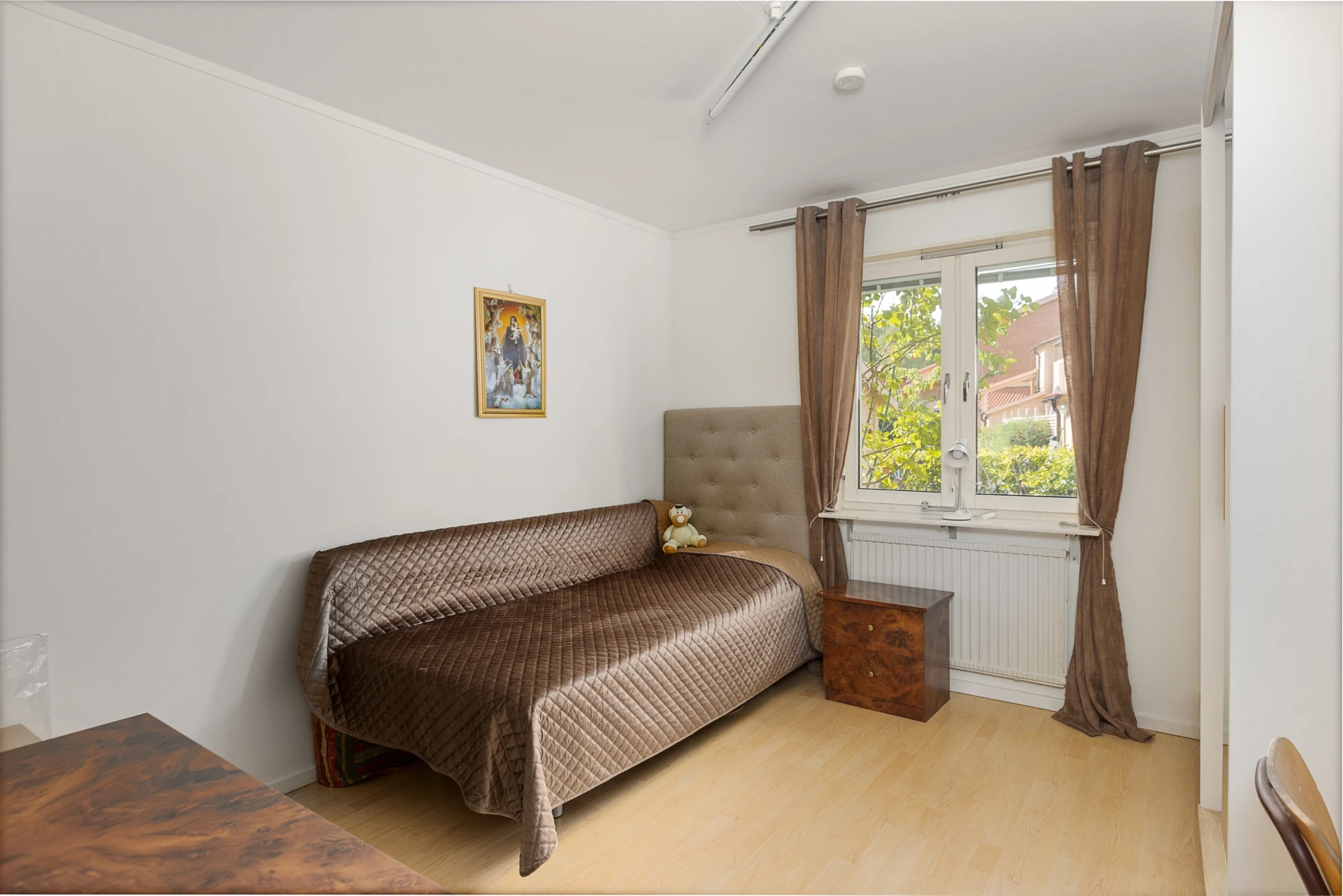 Ljust och luftigt, perfekt som barnrum, gästrum eller kontor. Stilren inredning med fina ytskikt.