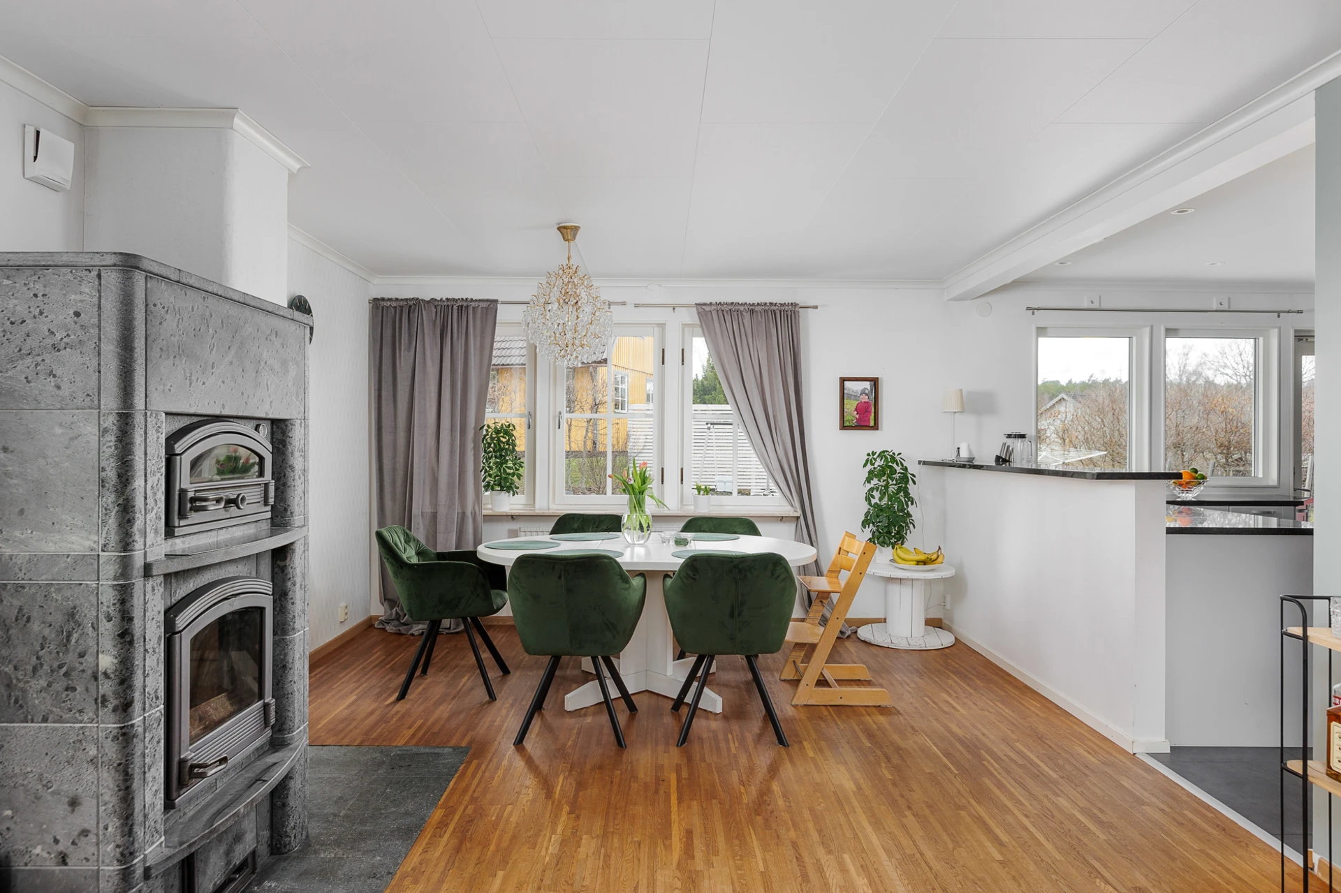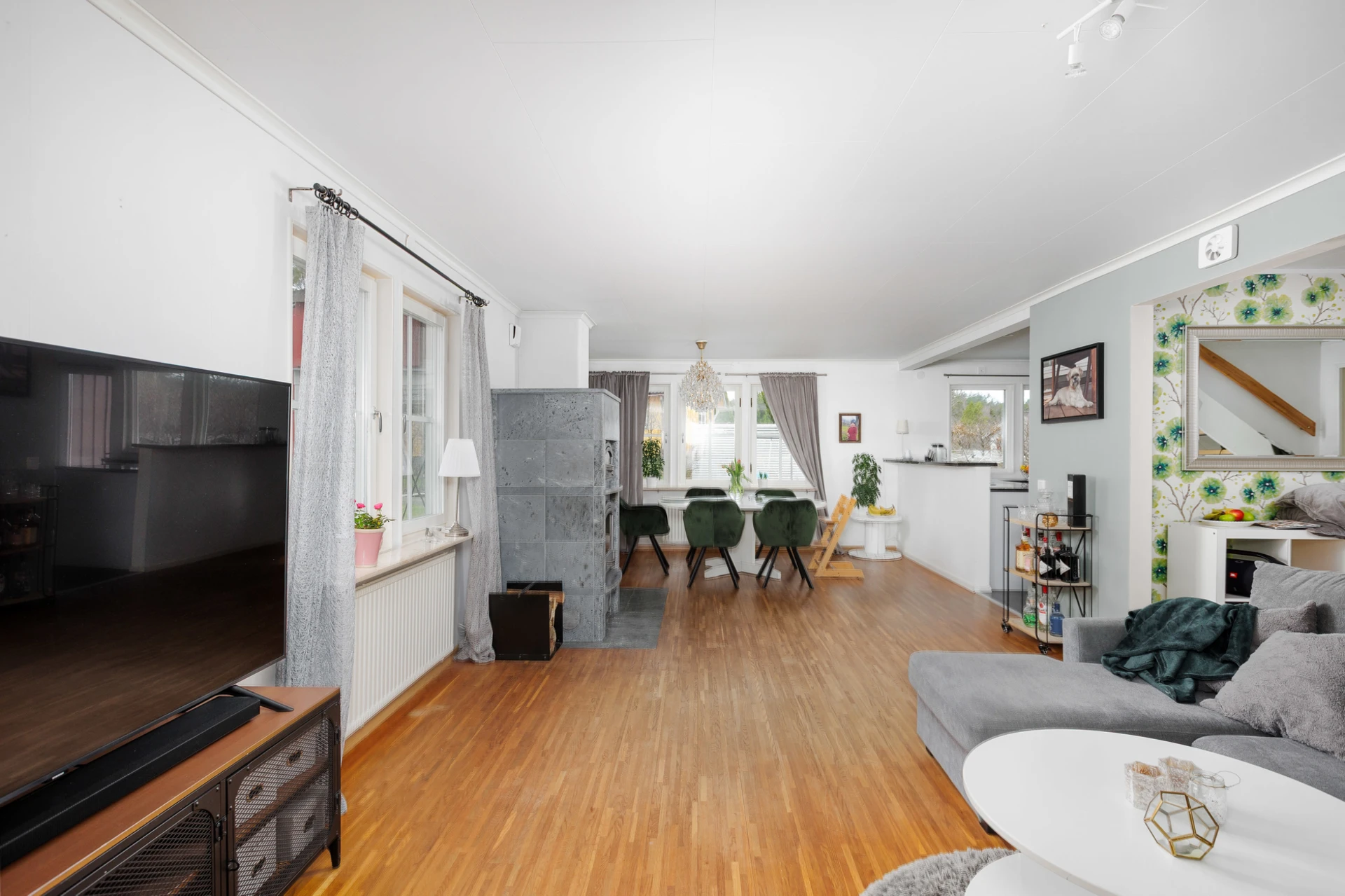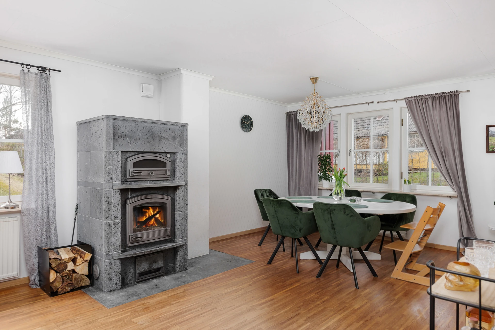 Drömmer du om ett stilrent och rymligt hem med närhet till natur, trygghet och livskvalitet? Då har du hittat rätt! På attraktiva Lövhagsvägen 7 väntar ett välplanerat 1½ planshus om 155 kvm – perfekt för barnfamiljen. Huset erbjuder hela sex rum med smarta sociala ytor där kök, matplats och vardagsrum samspelar i en öppen och ljus planlösning. Det moderna köket har generösa arbetsytor och i vardagsrummet en imponerande täljstenskamin av märket Tulikivi med både vedeldning och inbyggd pizzaugn – en självklar mittpunkt för mysiga kvällar och sociala stunder. Badrummet på nedervåningen är stort och fräscht med dusch, kommod och gott om utrymme för att sätta din personliga prägel. På övervåningen finns ett till badrum med badkar och WC. Utomhus väntar en välskött tomt med gräsmatta och en unik bergshöjd – en fridfull plats med stor potential för den med kreativ vision.