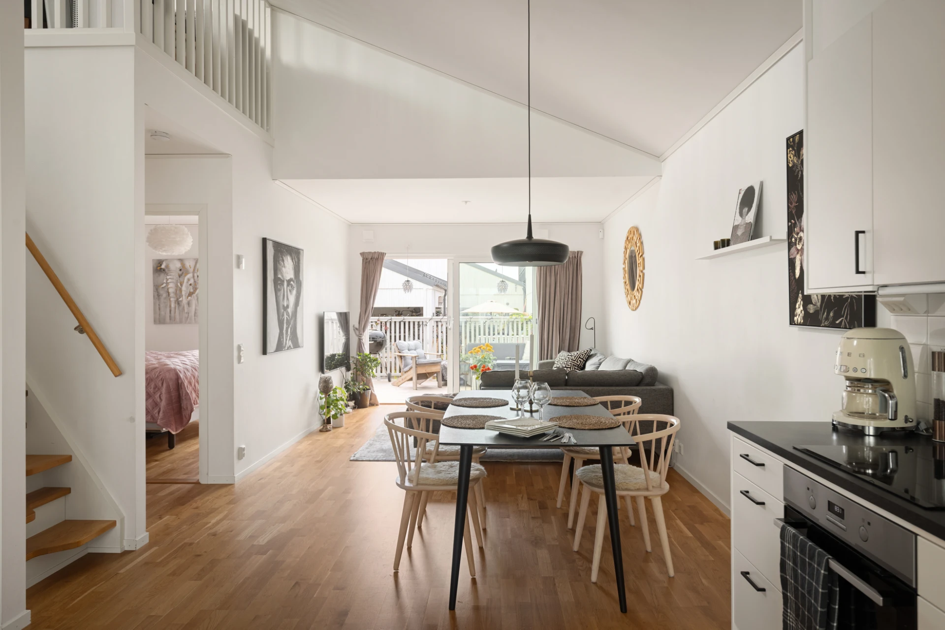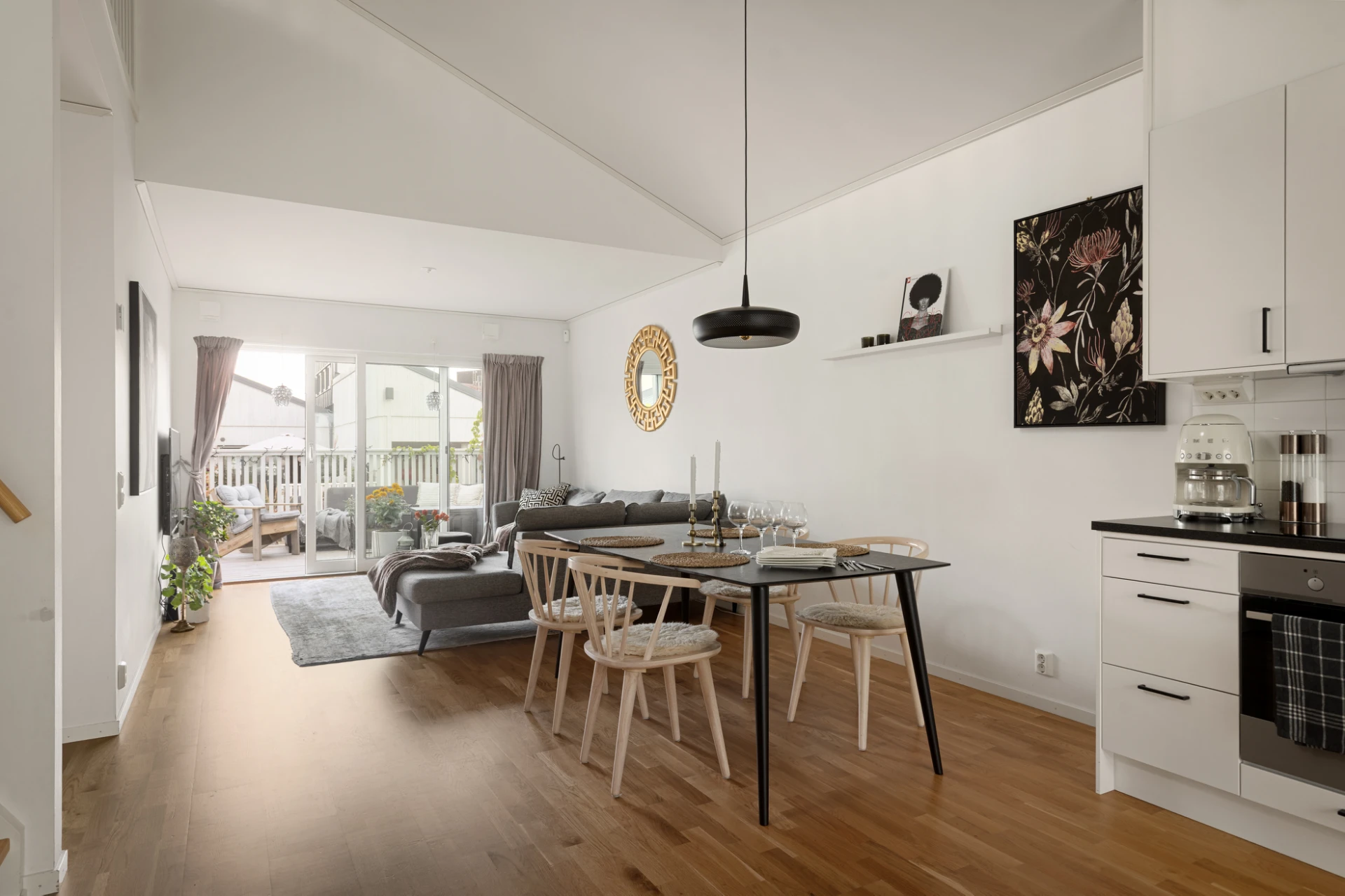 • Öppen social planlösning mellan kök och vardagsrum