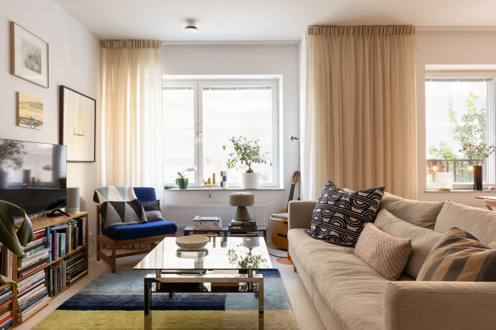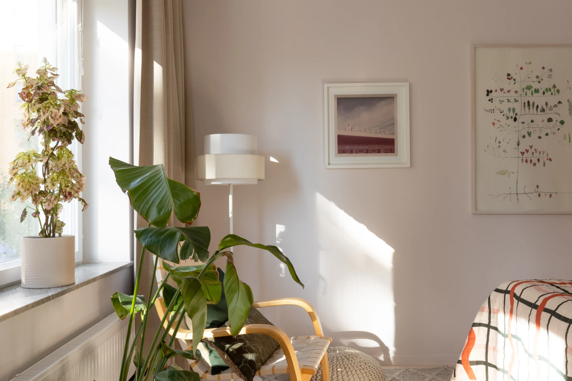 Vardagsrum med ljusa väggar och härligt ljusinsläpp via fönsterparti. Plats för soffa, soffbord, fåtölj, mediemöbel samt annat valfritt möblemang.