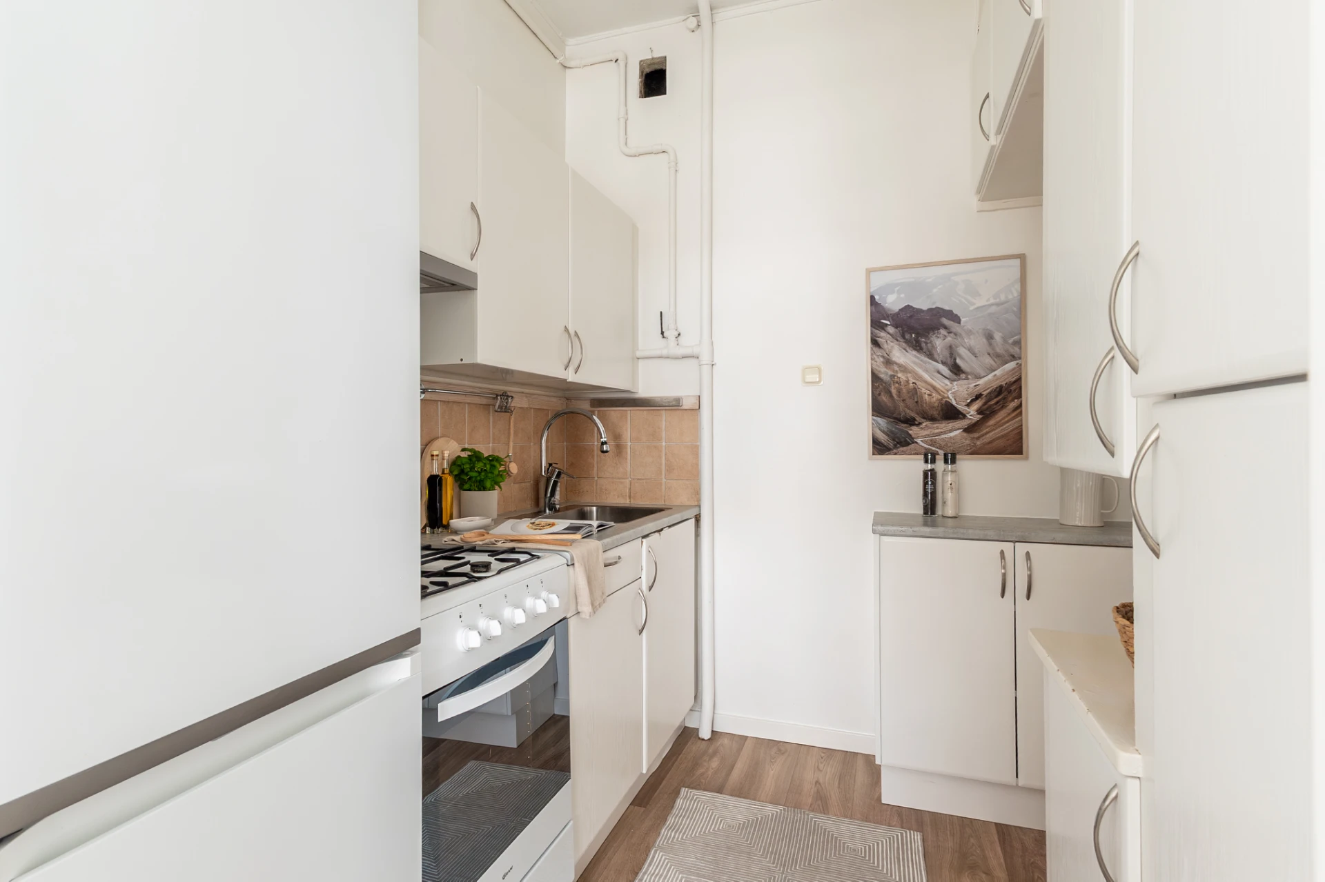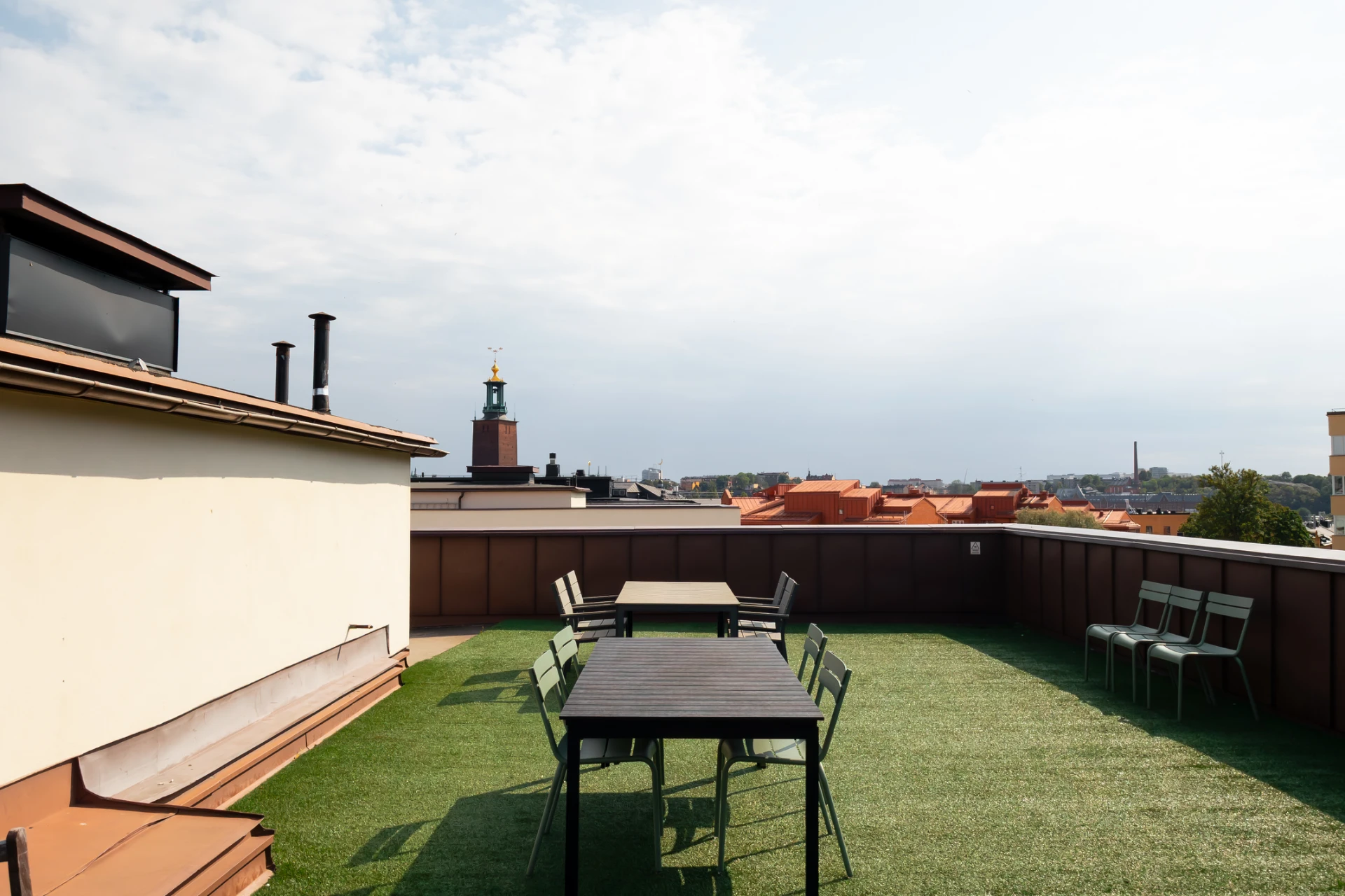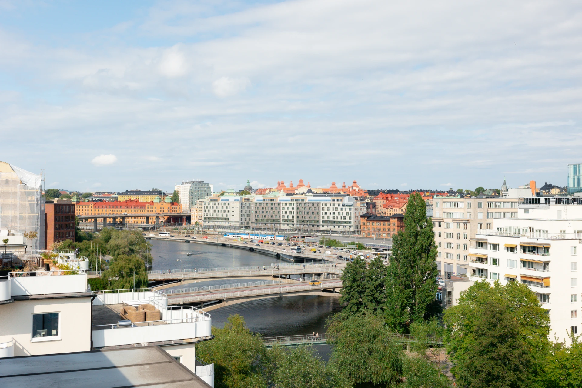 Accepterat pris! Ljus 2a högt upp med balkong och utsikt mot Klara kanal! Stort fönster i vardagsrummet i bästa solläge ger bra ljus i lägenheten så bl a de fina detaljerna som fiskbensparkett och speglade dörrar syns, här är det dessutom ca 2.9 m i takhöjd. Den inbjudande hallen är välplanerad med utrymme för garderob samt hatthylla och skoställ. Här finns stora ytor avsedda för soffgrupp, mediamöbel samt matsalsdel. Sovrummet erbjuder plats för en större säng, sängbord samt annan önskvärd möblemang. Härifrån når ni den generösa balkongen i bra solläge med plats för bord, stolar och planteringar. Köket går i klassisk stil och erbjuder bra arbetsytor samt förvaring via flertalet vitlackerade skåp och hyllplan, samt en modern rejält stor kyl och frys. Badrummet går i neutrala toner, här finns utrymme för ett mindre badkar eller tvättmaskin, dock ej förberett. En av Sveriges bästa internettjänster används (Ownit 1000/1000). Till bostaden hör ett stort källarförråd. Högst upp i huset finns en stor magisk takterrass med milsvid utsikt – en perfekt plats för avkoppling, solande, grillning eller sociala stunder under bar himmel.